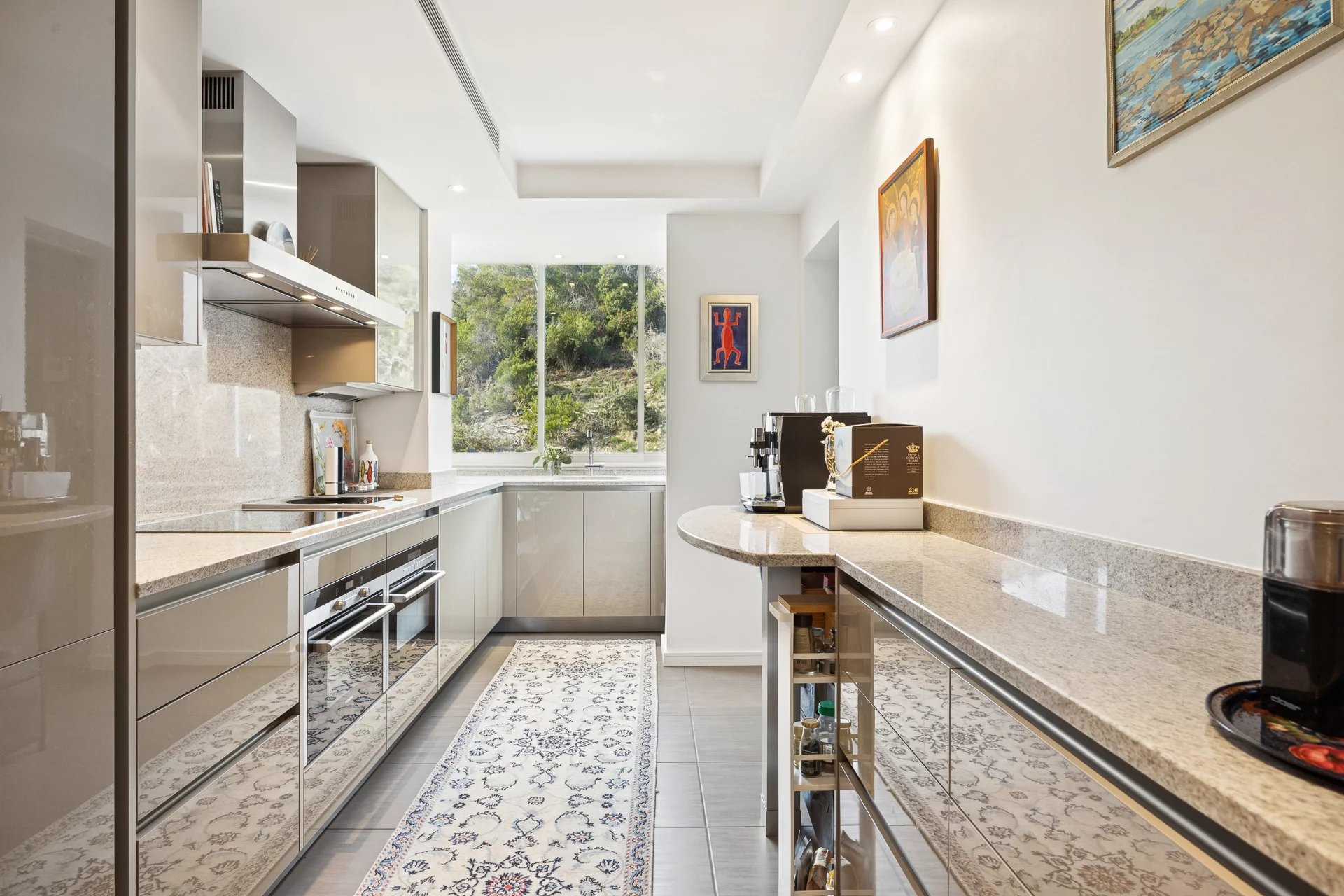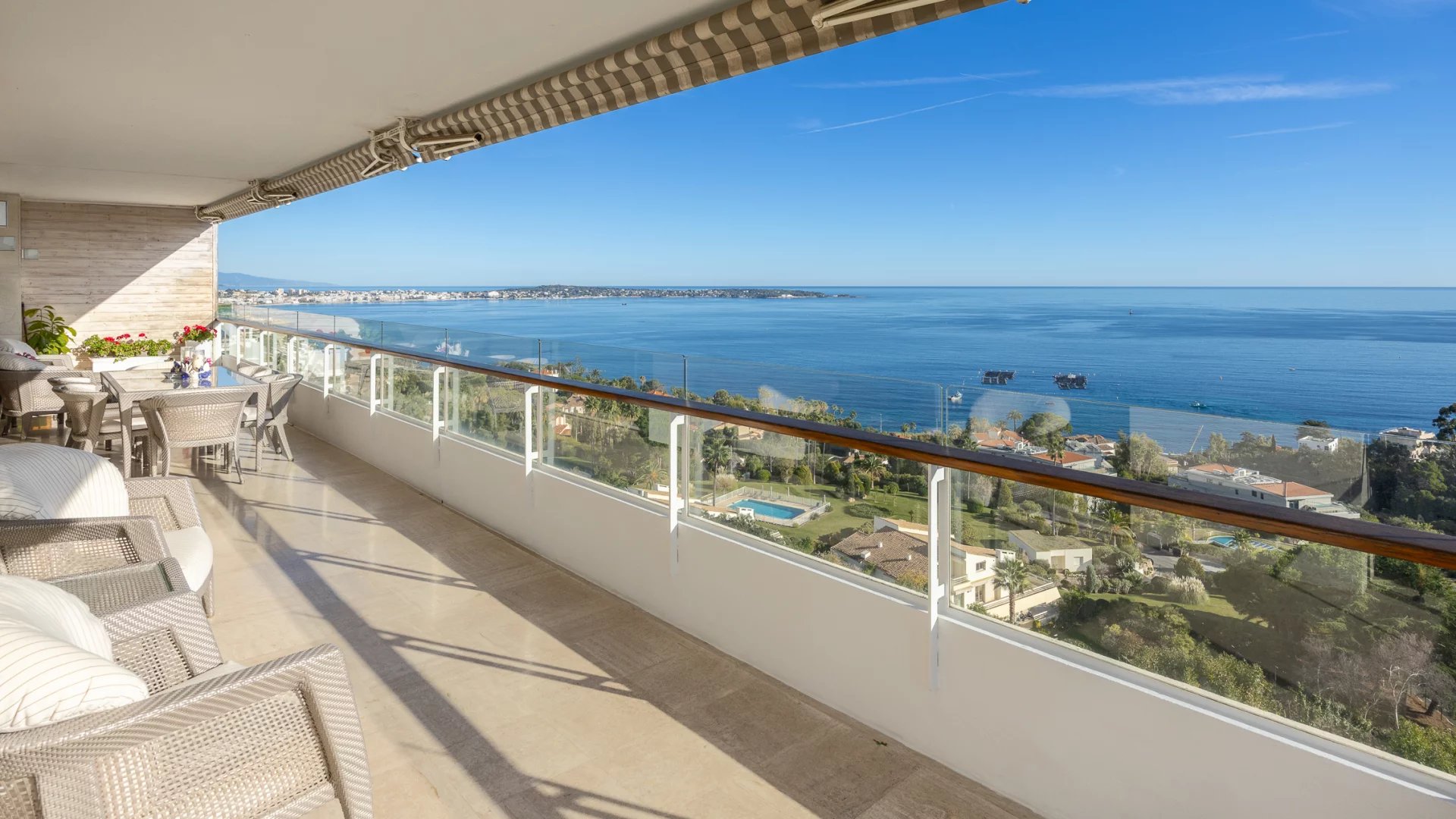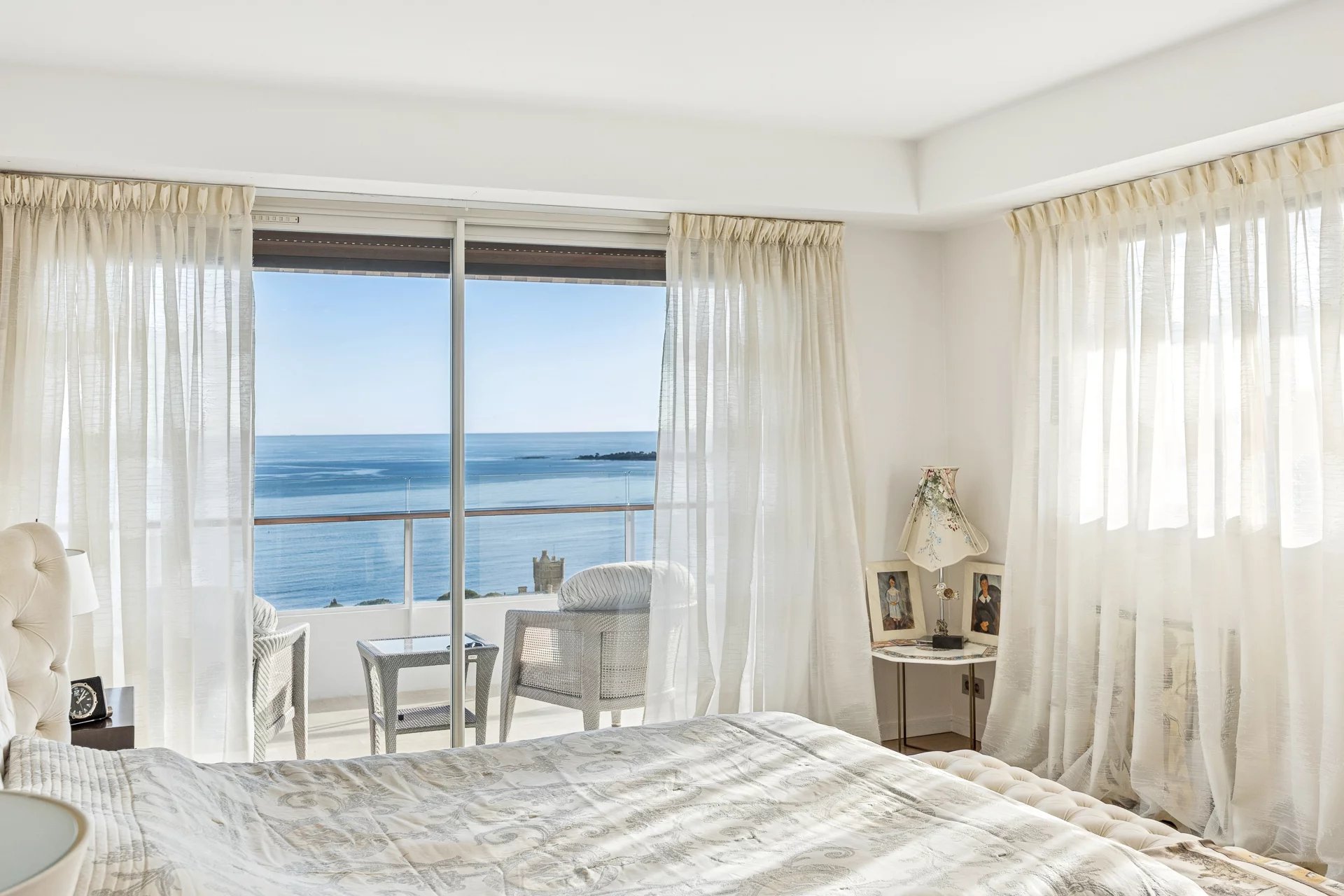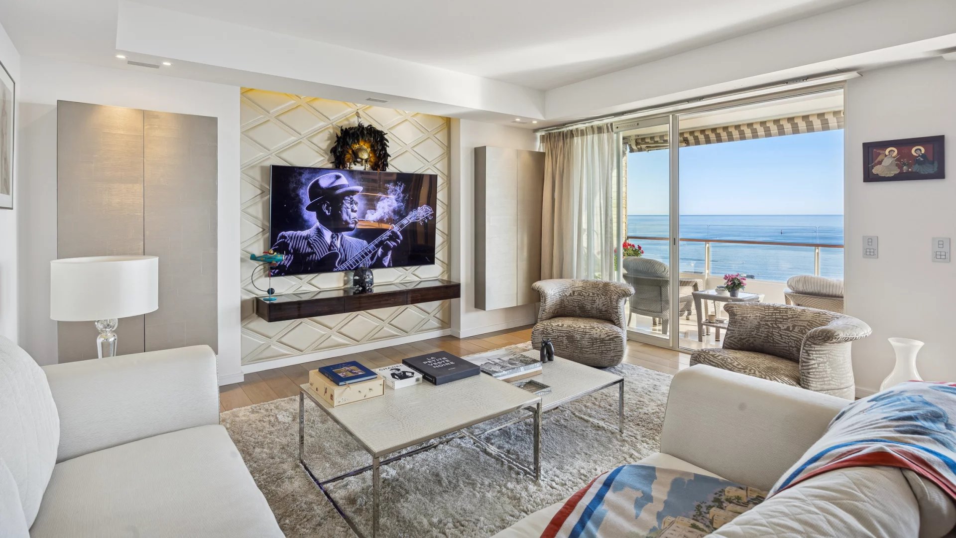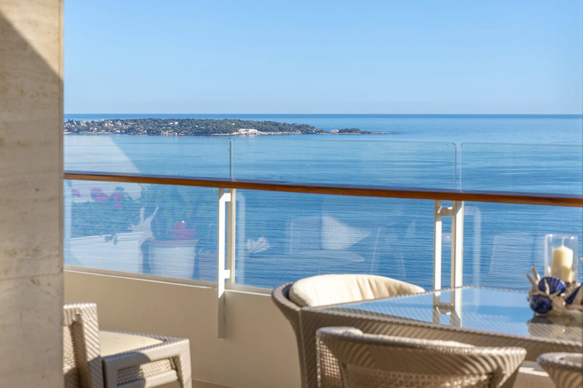 This corner apartment, on a high floor, spans approximately 138 m2 and stands out for its spacious and bright living room, opening onto a 47 m2 corner terrace, offering breathtaking panoramic views of the Mediterranean Sea. The absence of vis-a-vis ensures total privacy, while the parquet flooring and beautiful contemporary features add an elegant touch.