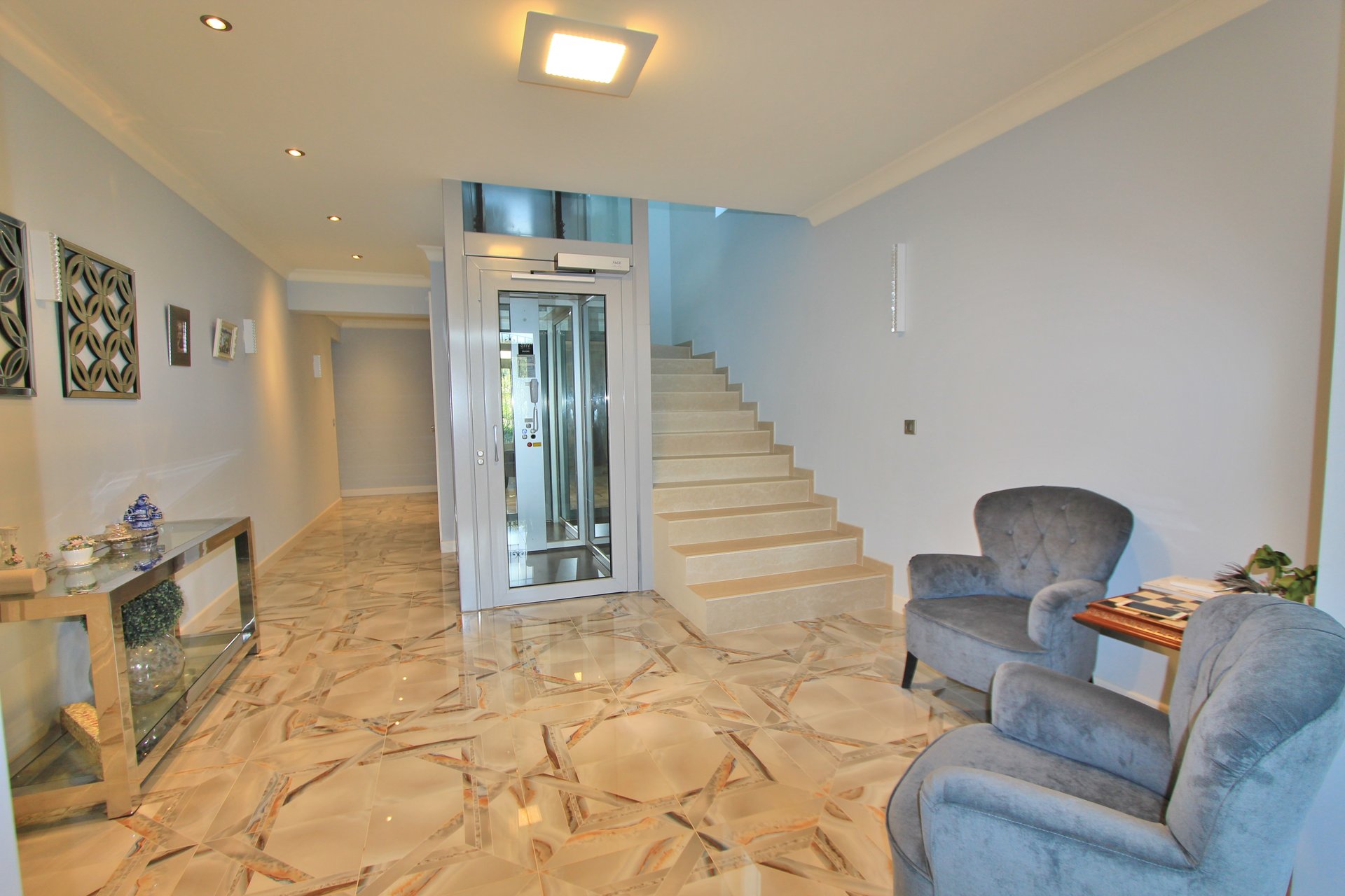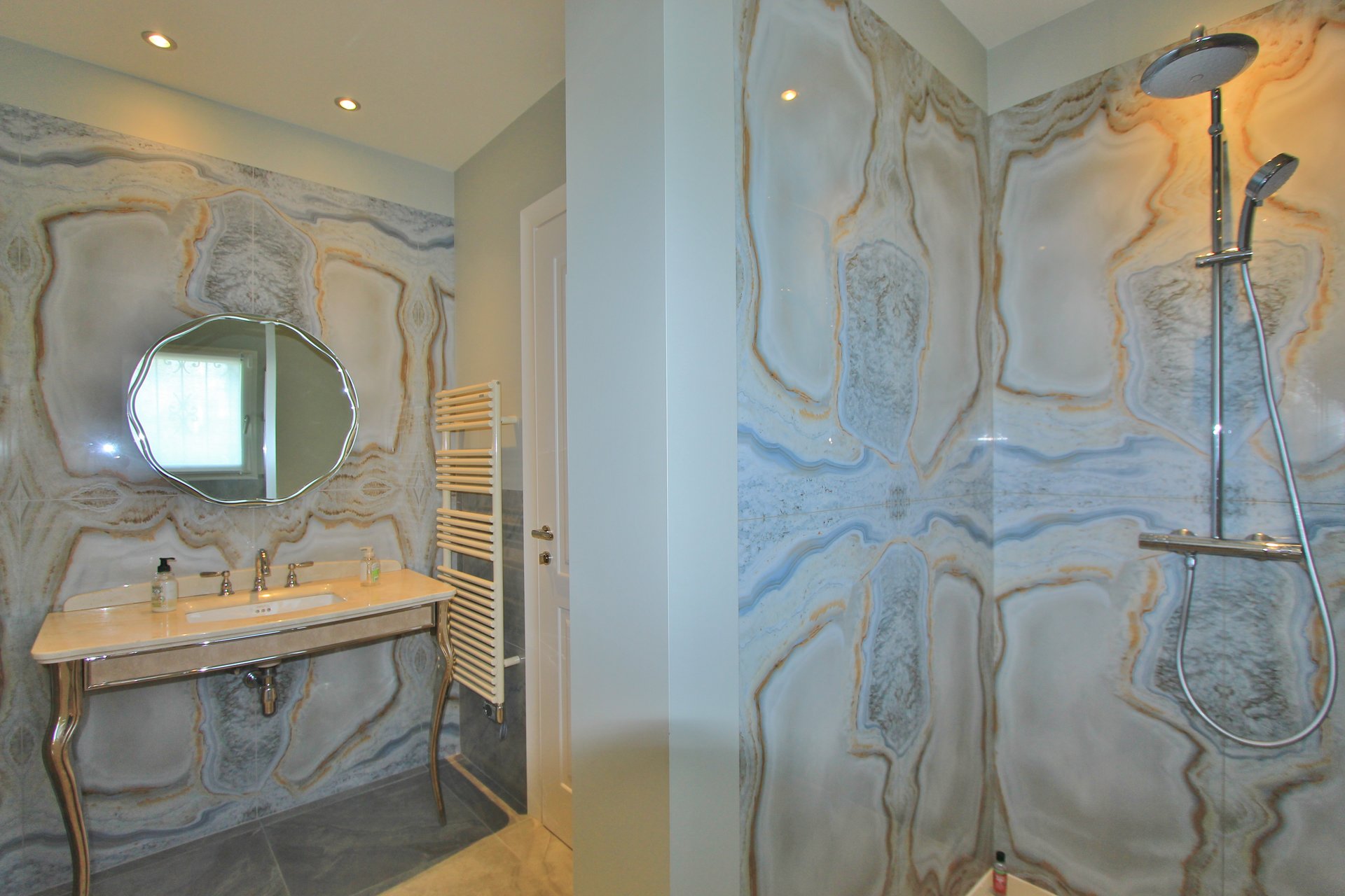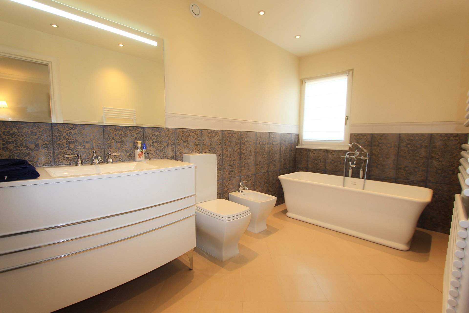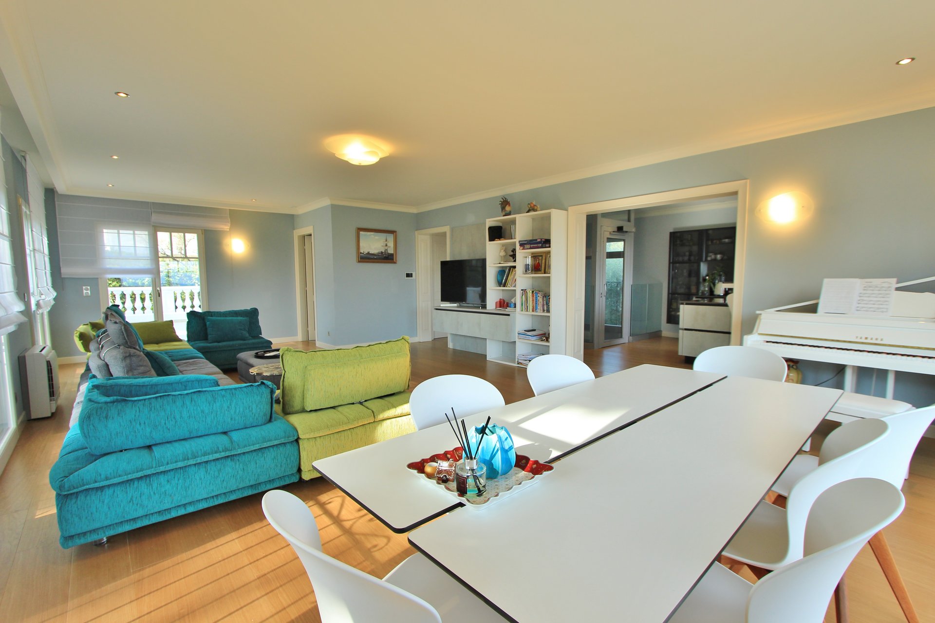 Renovated throughout in 2019 it comprises a spacious living room and fully equipped kitchen opening onto a nice terrace with lovely views on the sea and the Alpes, 5 bedrooms and 5 bathrooms with wc.