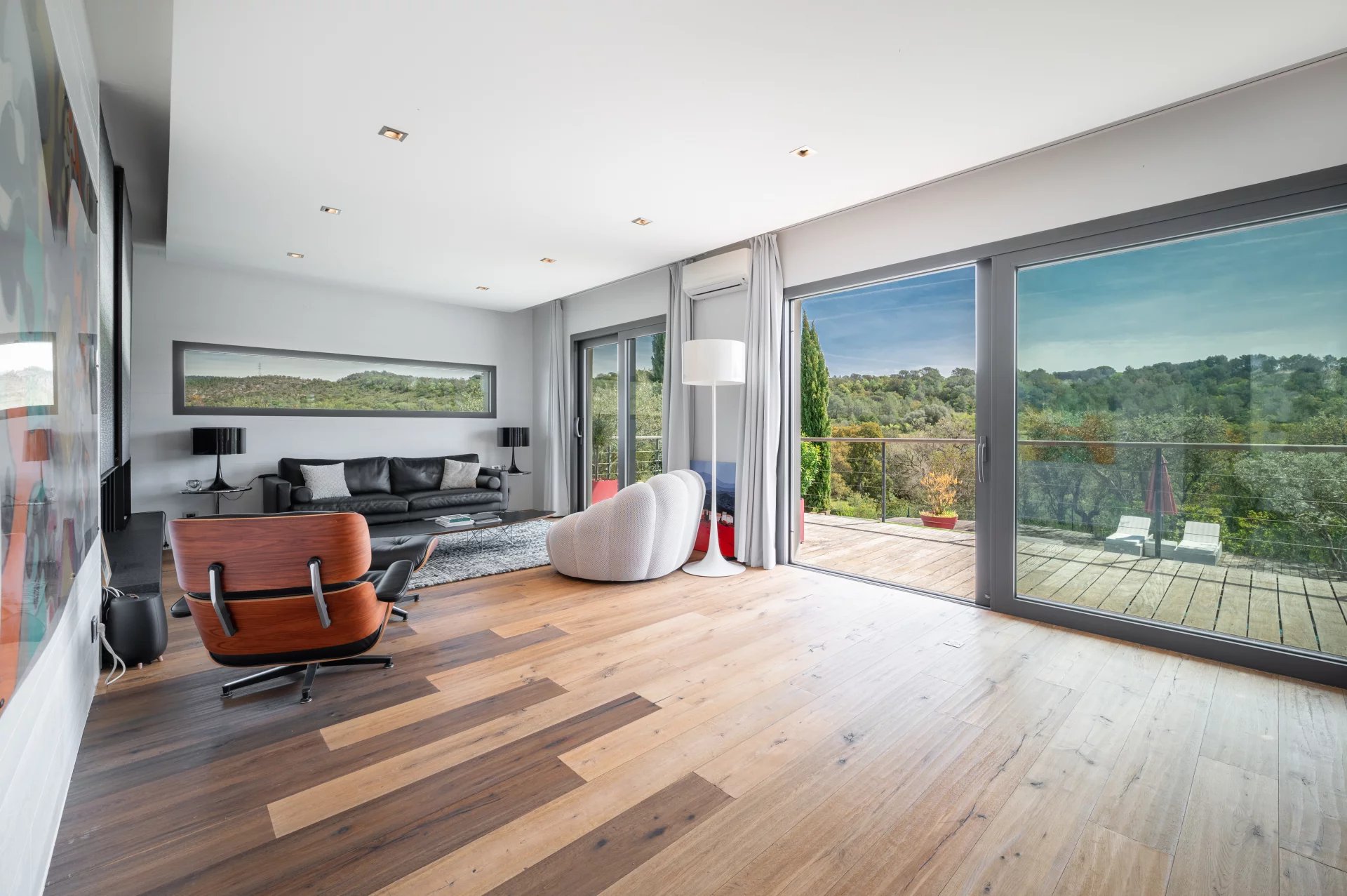 Exceptional contemporary villa of 300m2 built in 2013, offering top-of-the-range services and an unobstructed view of the Esterel. The southern exposure of the property ensures permanent sunshine.