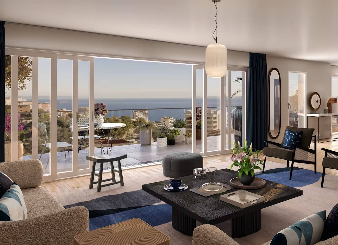 This exclusive property features only eight newly constructed apartments. They range from studios to spacious 4-bedroom units. Each apartment boasts generous living spaces and premium finishes. All units have private outdoor areas, and some offer stunning sea views and vistas of the iconic Rock of Monaco.