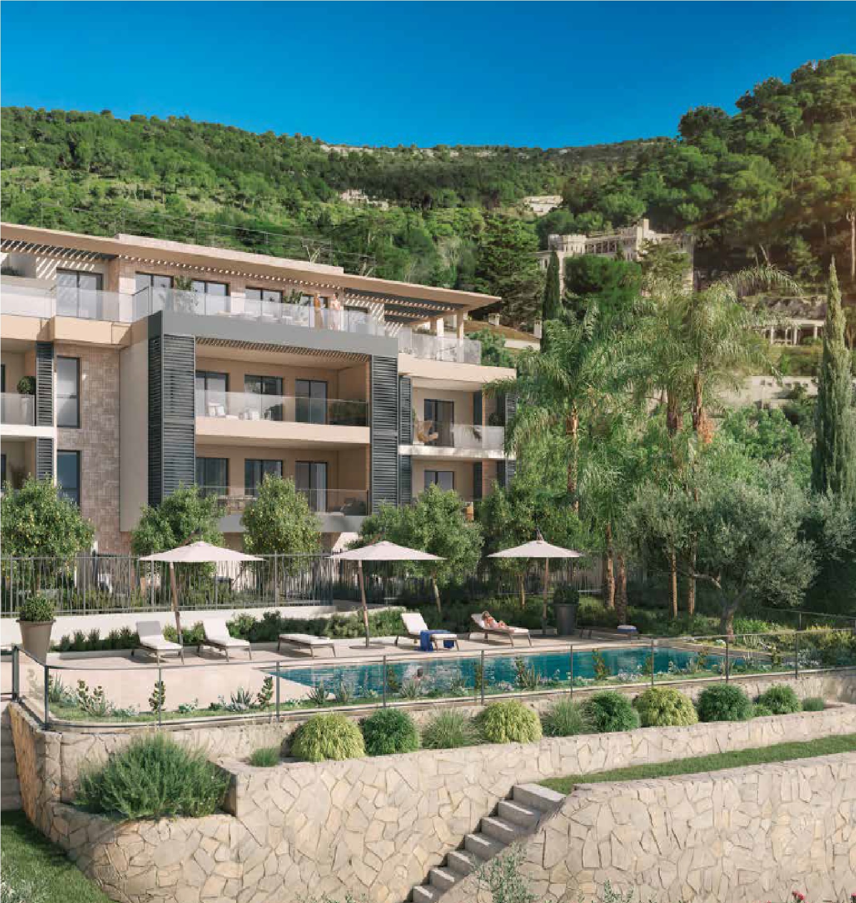 Located in the prestigious village of Eze, this development is set within beautifully landscaped gardens, with exceptional sea views, and a private swimming pool with solarium.