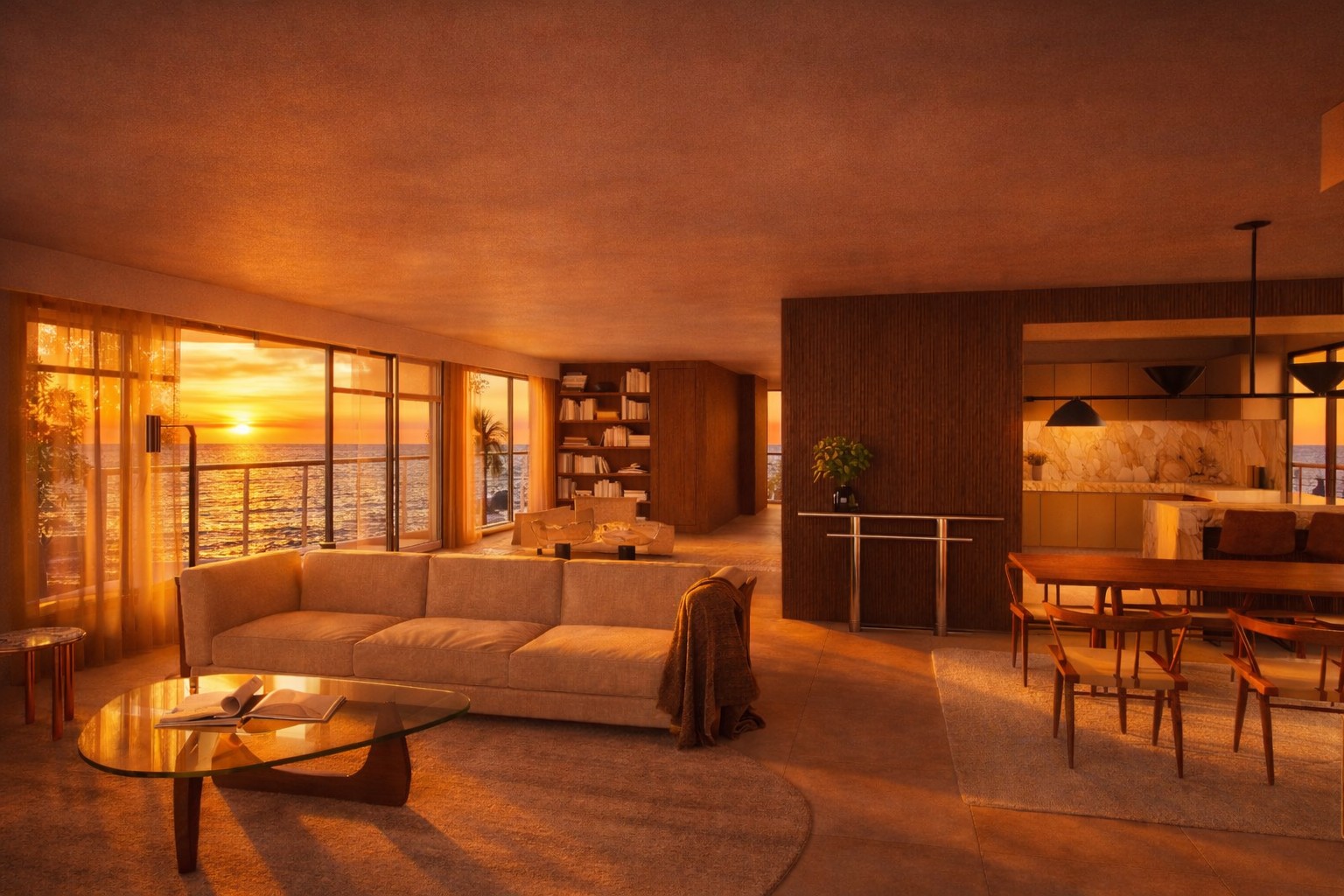 The project combines the renovation of two historic hotel buildings with the construction of new residences, creating a collection of apartments alongside retail and office space.
