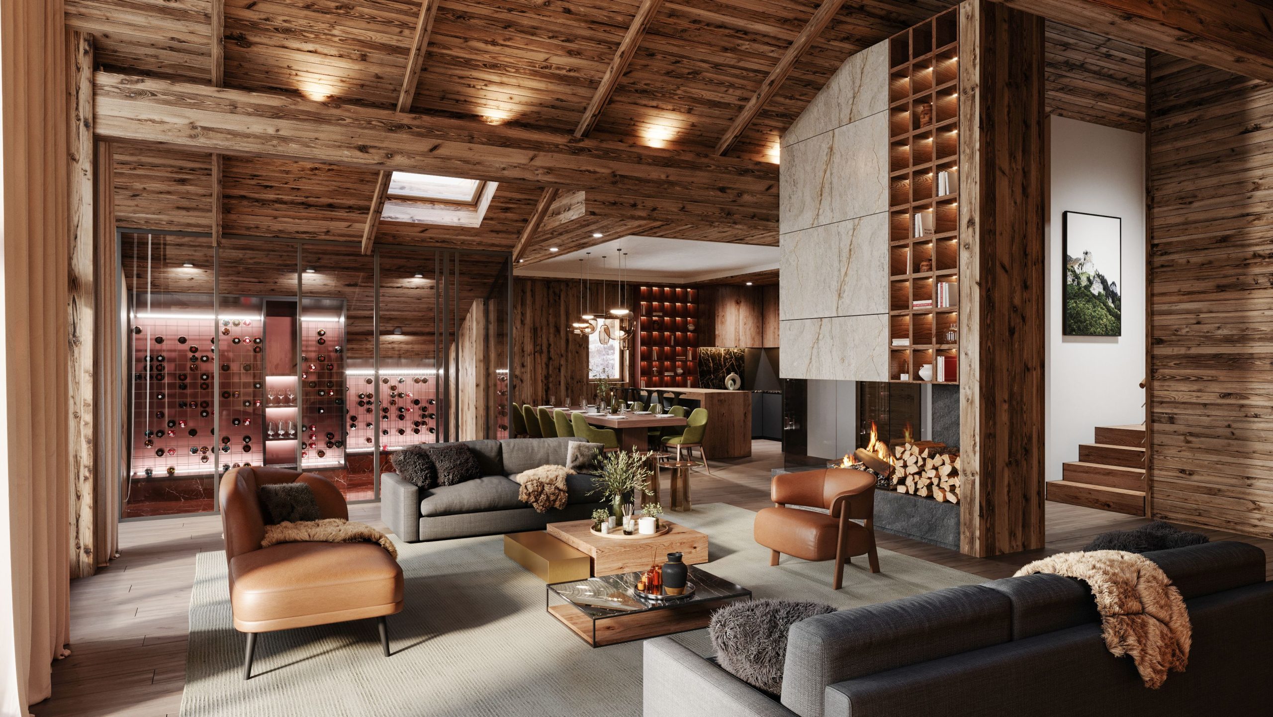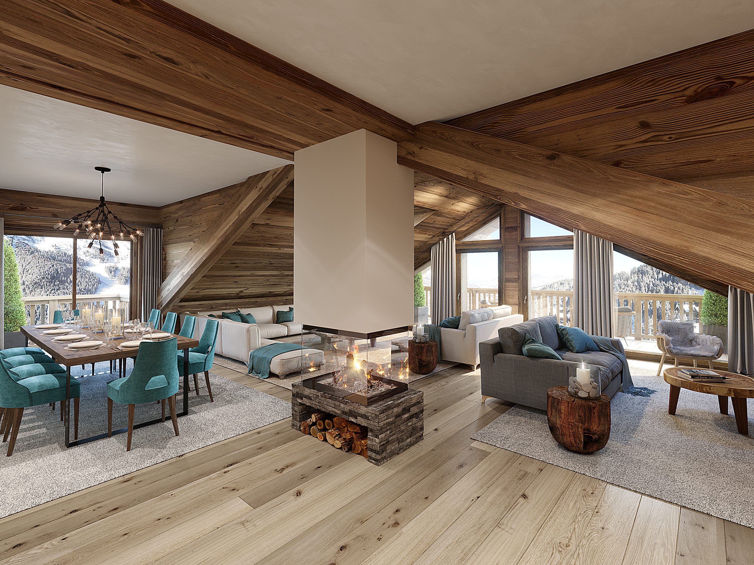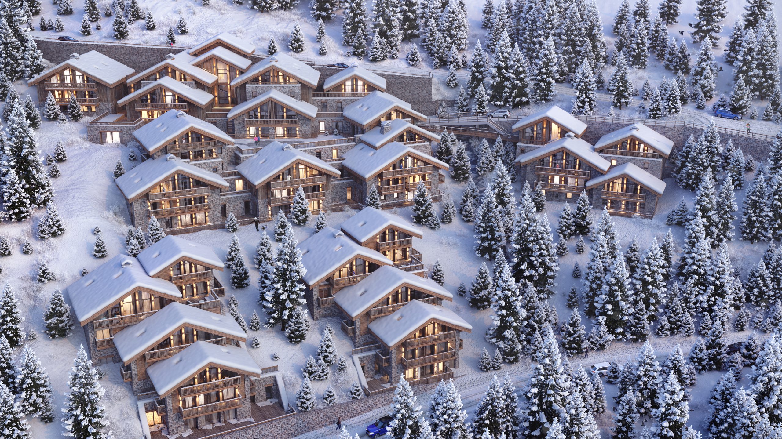 Falcon Lodge features 32 spacious, fully furnished apartments, penthouses, and 3 luxurious chalets. Each is meticulously designed with fully equipped kitchens, opulent bathrooms, bespoke bedrooms, and private hot tubs. The architecture reflects a traditional Savoyard village, crafted from locally sourced wood and stone.