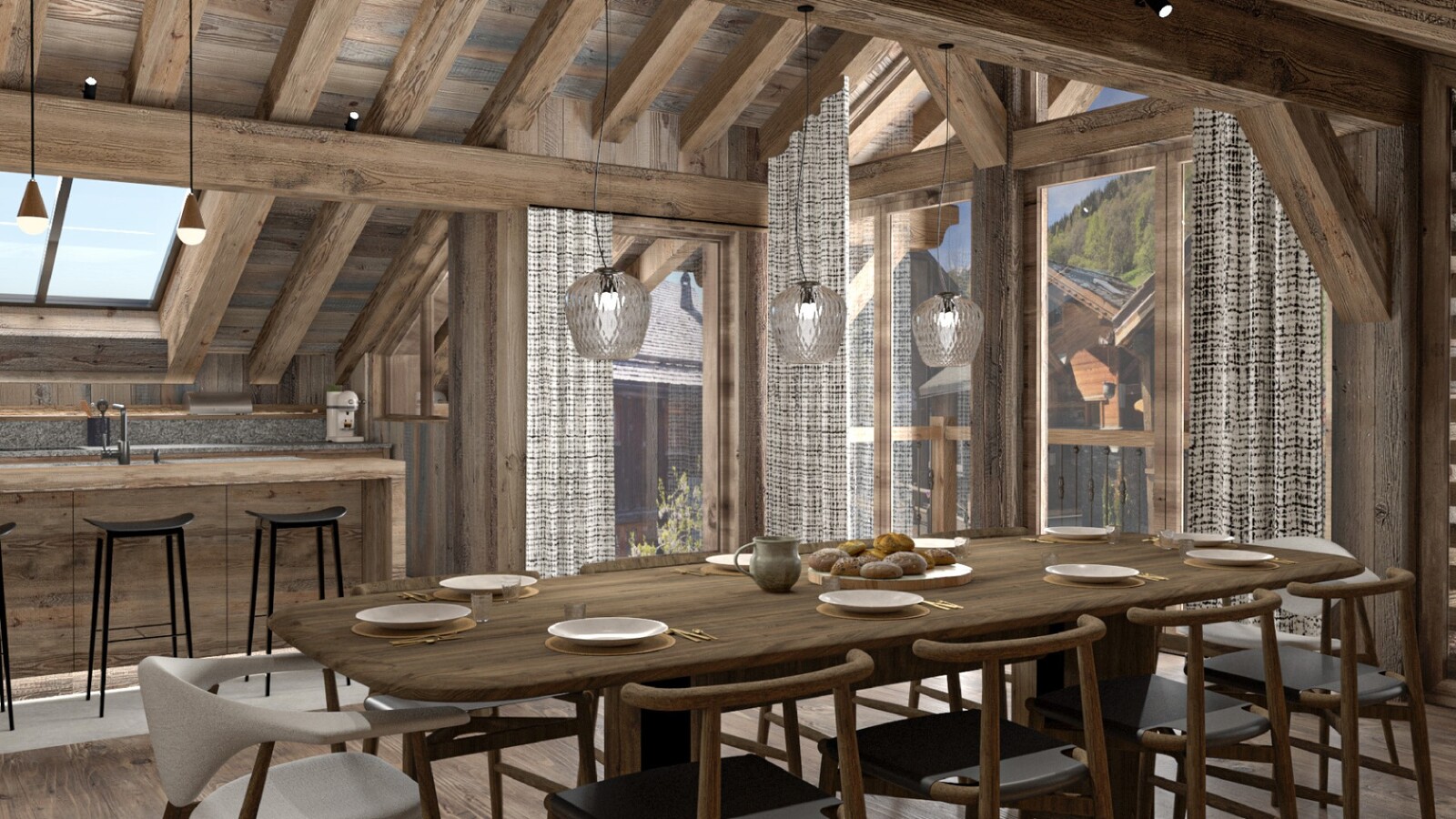 Built in the typical Savoyard style, these properties showcase a beautiful facade of stone and wood. There are four chalets in total and two apartments, with balconies and terraces showcasing exceptional views. Each of the chalets has four bedrooms, whilst apartments range from three to five bedrooms.