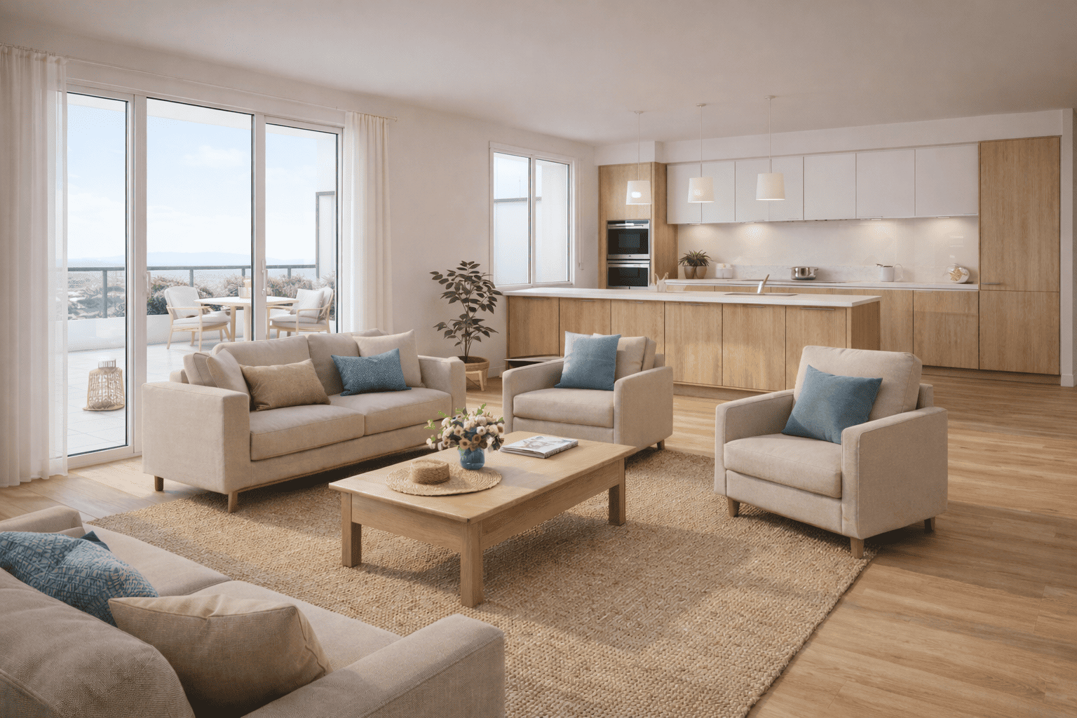 Interiors are spacious and expertly designed with voluminous rooms and exceptional exterior views. Each residence is fully automated, with electric shutters in all the rooms. The kitchen and bathrooms are equipped and apartments are fully secure with videophone-controlled access.