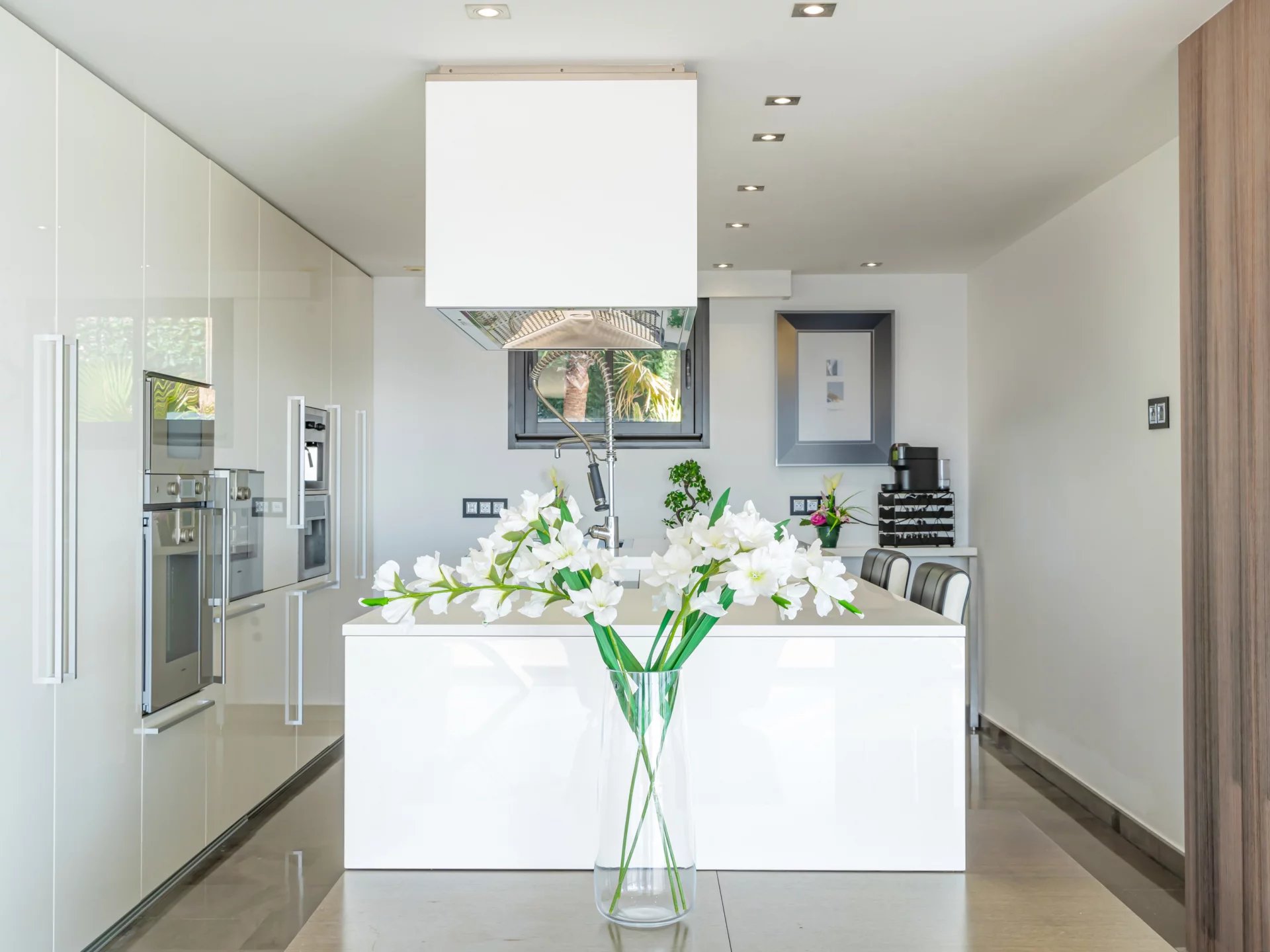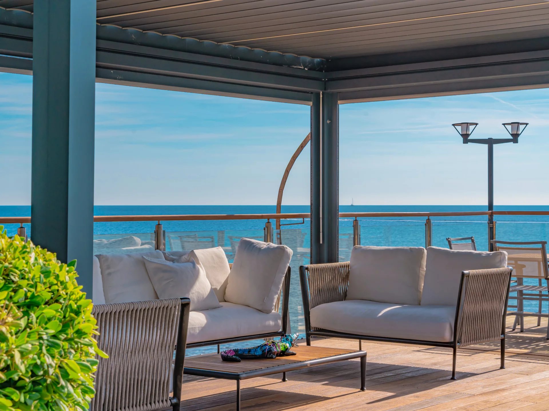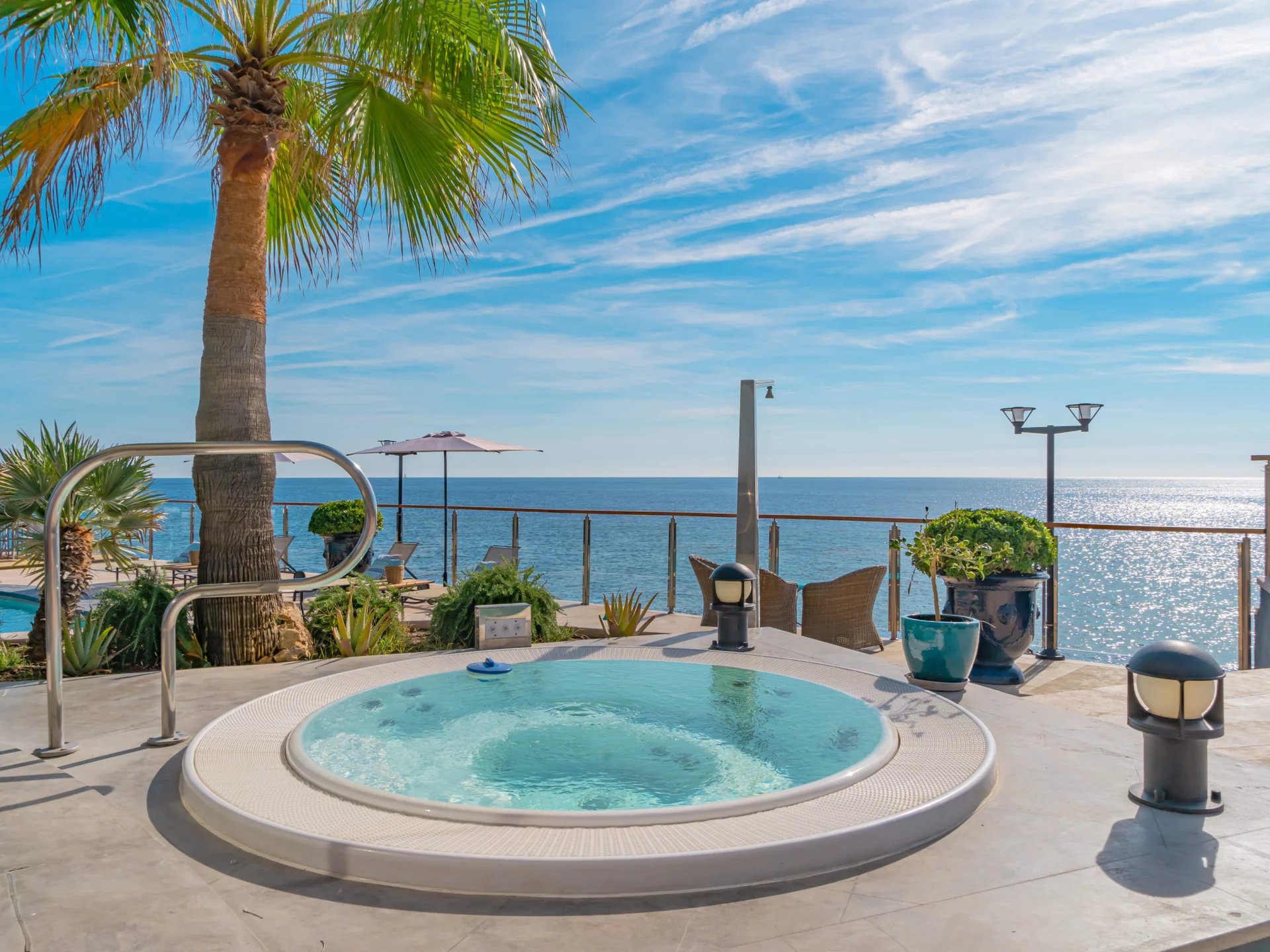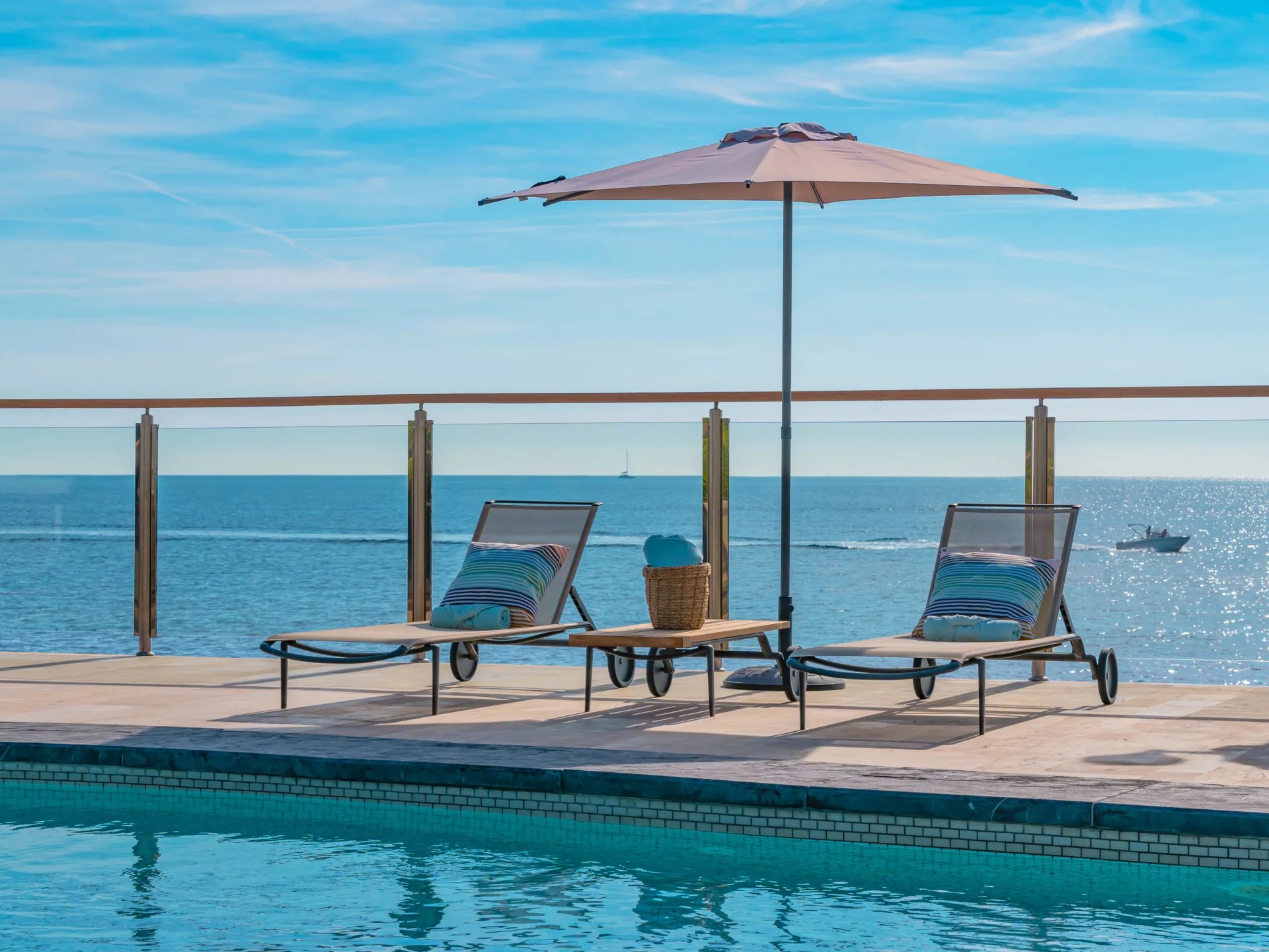 The villa has generous volumes with a living surface of 266 m2, including in particular a large reception room opening entirely onto the outside and 3 large bedroom suites. The whole set on a manicured land of a surface of 1040 m2 with heated jacuzzi and swimming pool, surrounded by the sea just like a peninsula.