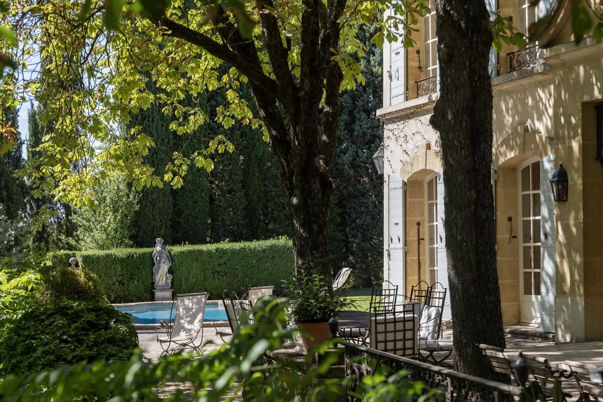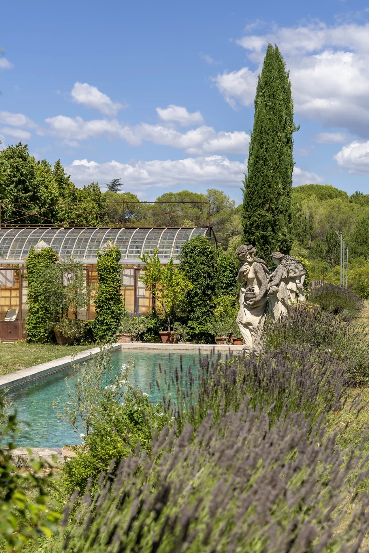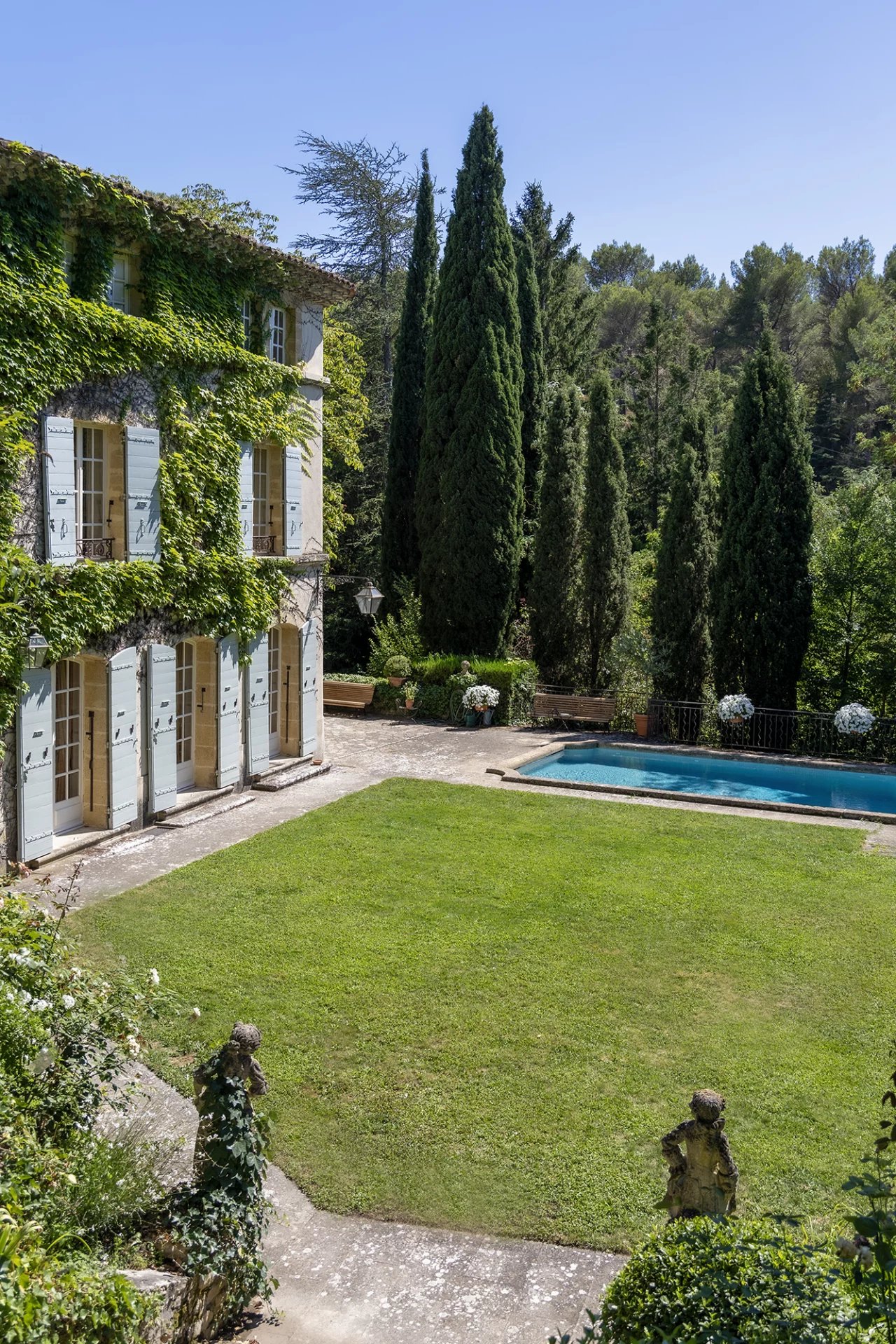 Less than ten minutes from Cours Mirabeau (4 km), La Grange covers 4.5 hectares of beautifully maintained grounds: an olive grove, fountains, statues covered in vegetation, a chapel, two swimming pools, and a tennis court. The whole estate exudes the serenity of an authentic Provence, as painted by Cezanne and his heirs.