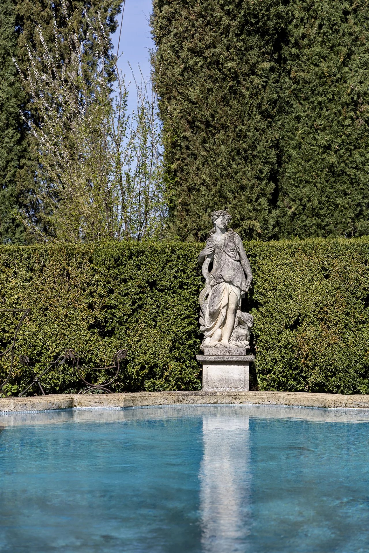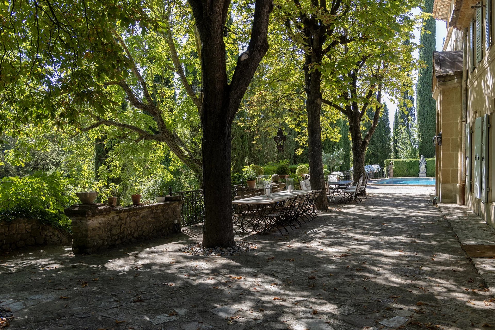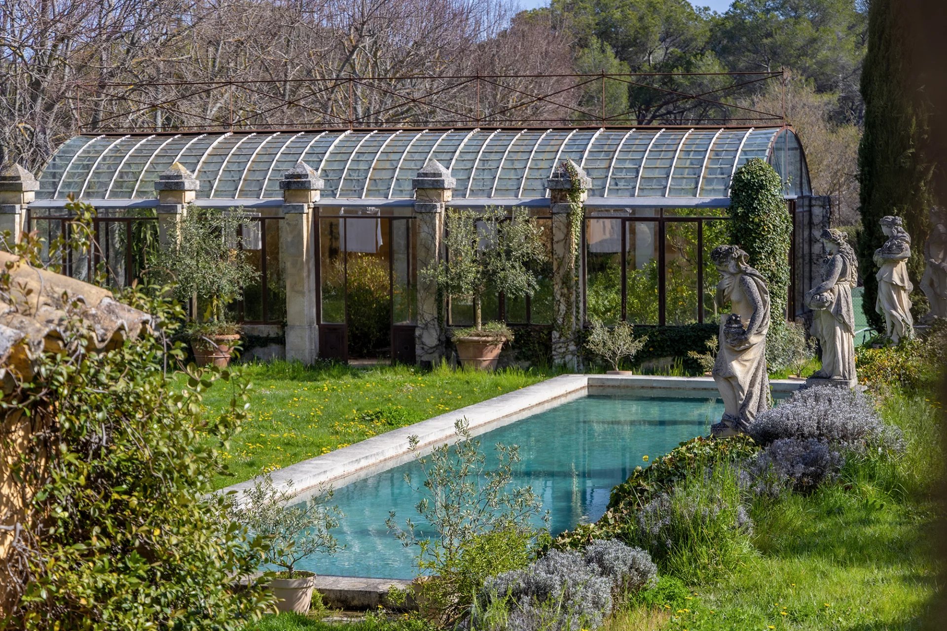 Less than ten minutes from Cours Mirabeau (4 km), La Grange covers 4.5 hectares of beautifully maintained grounds: an olive grove, fountains, statues covered in vegetation, a chapel, two swimming pools, and a tennis court. The whole estate exudes the serenity of an authentic Provence, as painted by Cezanne and his heirs.
