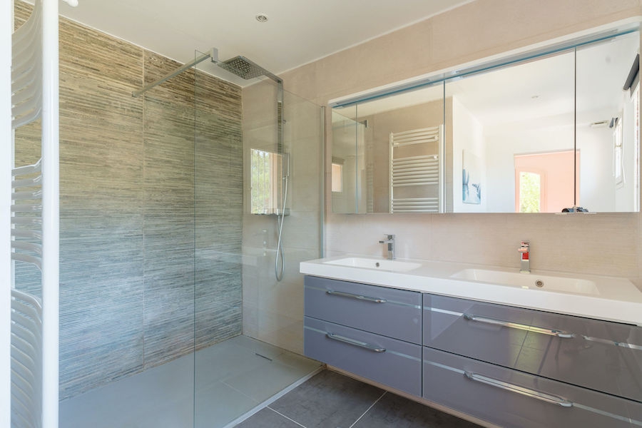 Four bedrooms including a master suite on the ground floor, two independent offices, a large living room with fireplace and independent kitchen opening onto the partly sheltered terrace and the garden. The house is very bright, contemporary with high ceilings.
