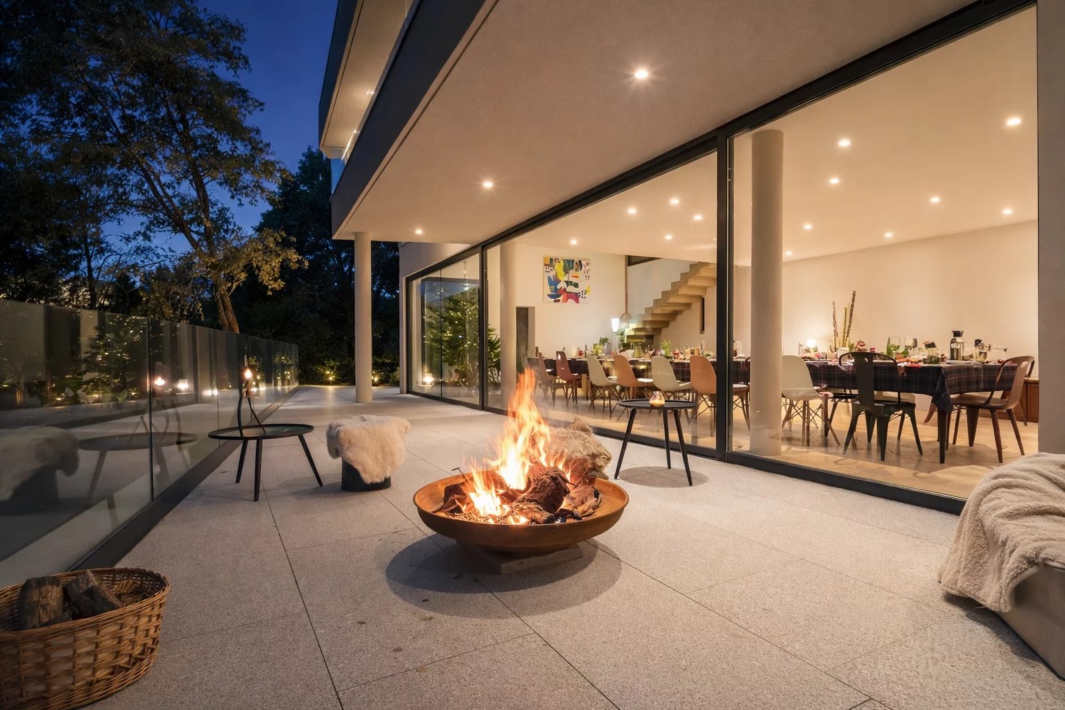 A 74+ m2 open-plan living room and kitchen, extending seamlessly onto the terrace