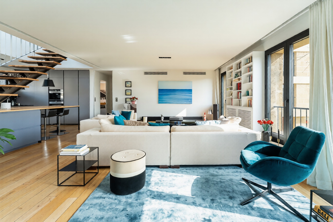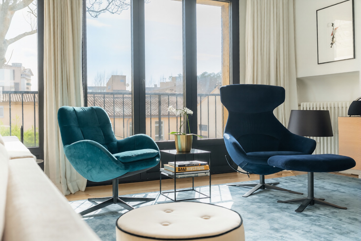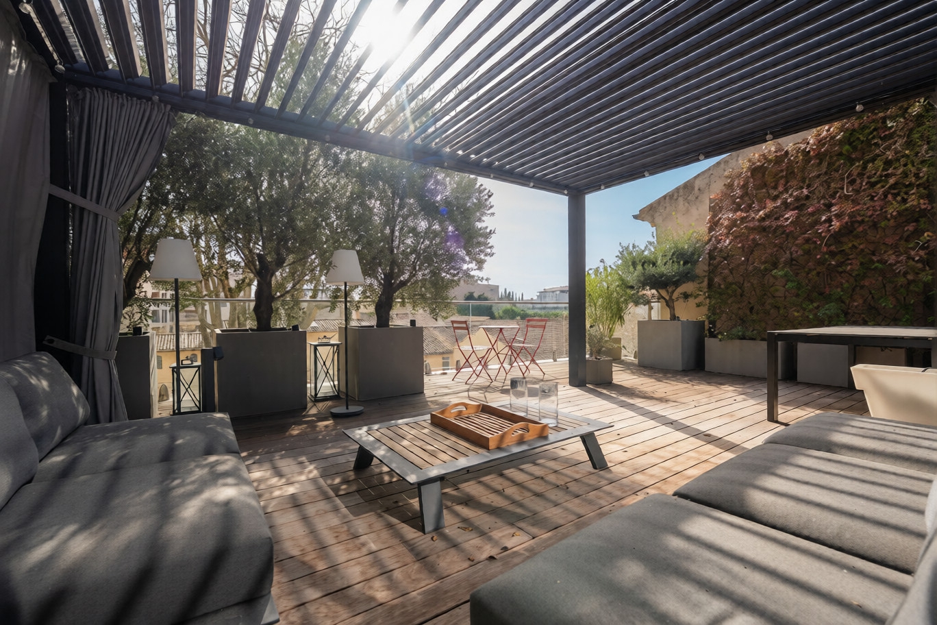 Outdoors, a true privilege in the city centre, a superb rooftop terrace of approximately 61 m2 extends the living spaces beautifully. Thoughtfully fitted with a bioclimatic pergola, it offers a private setting for relaxing and dining while enjoying the Aix climate and open views.