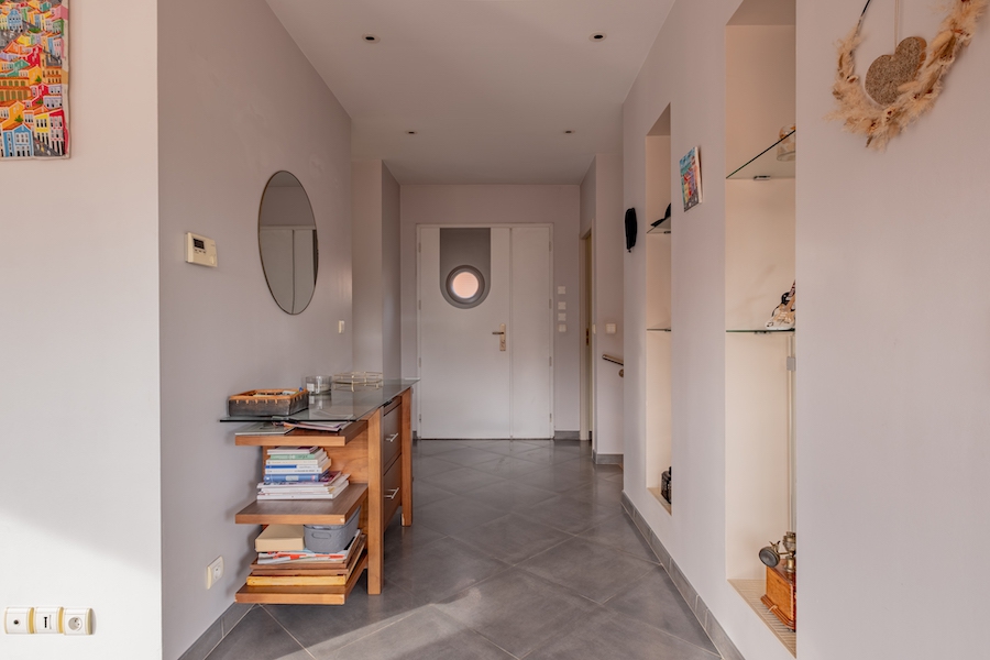 Outside, the landscaped garden features a heated swimming pool, perfectly integrated into a lush and intimate setting, with automatic irrigation for easy maintenance.