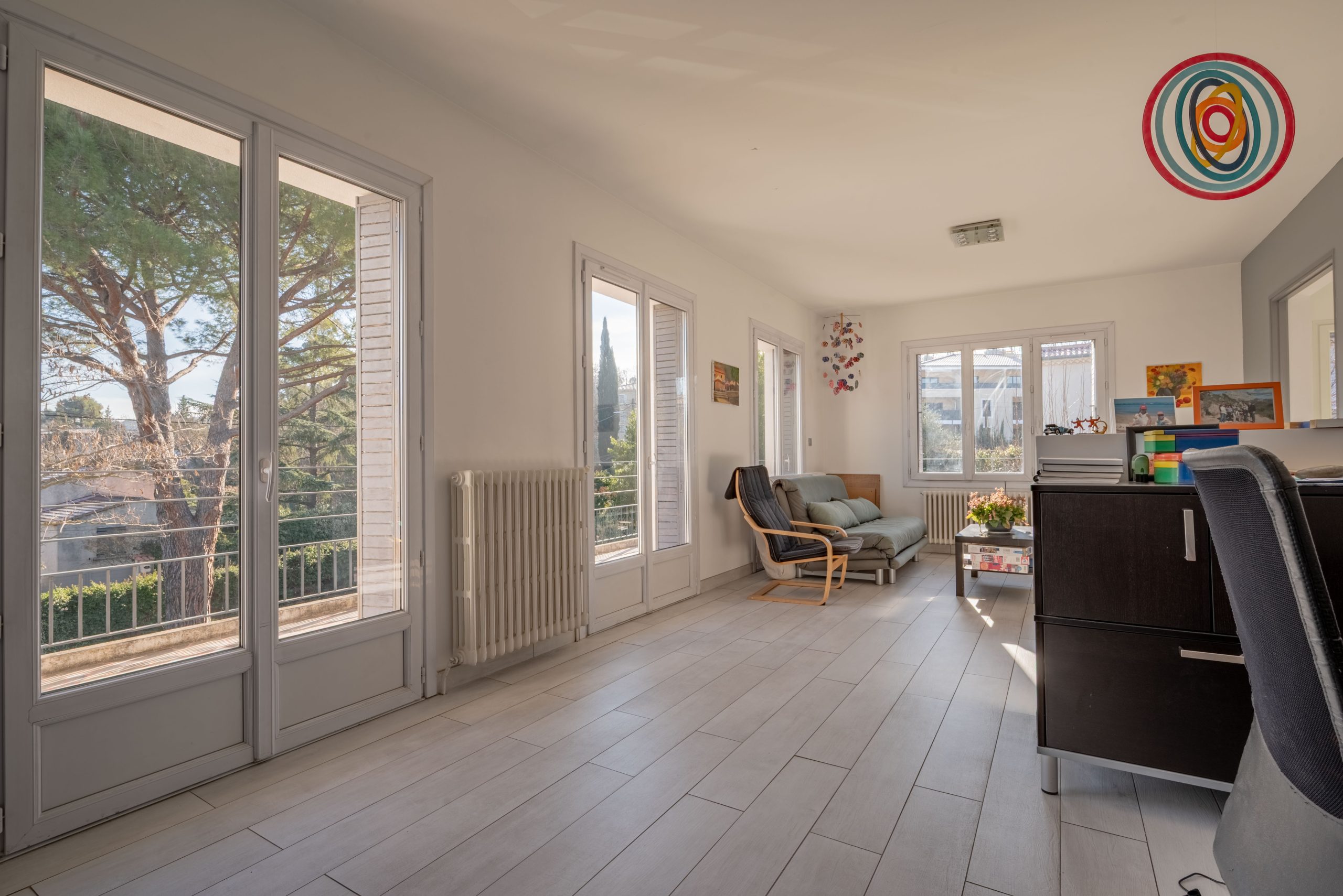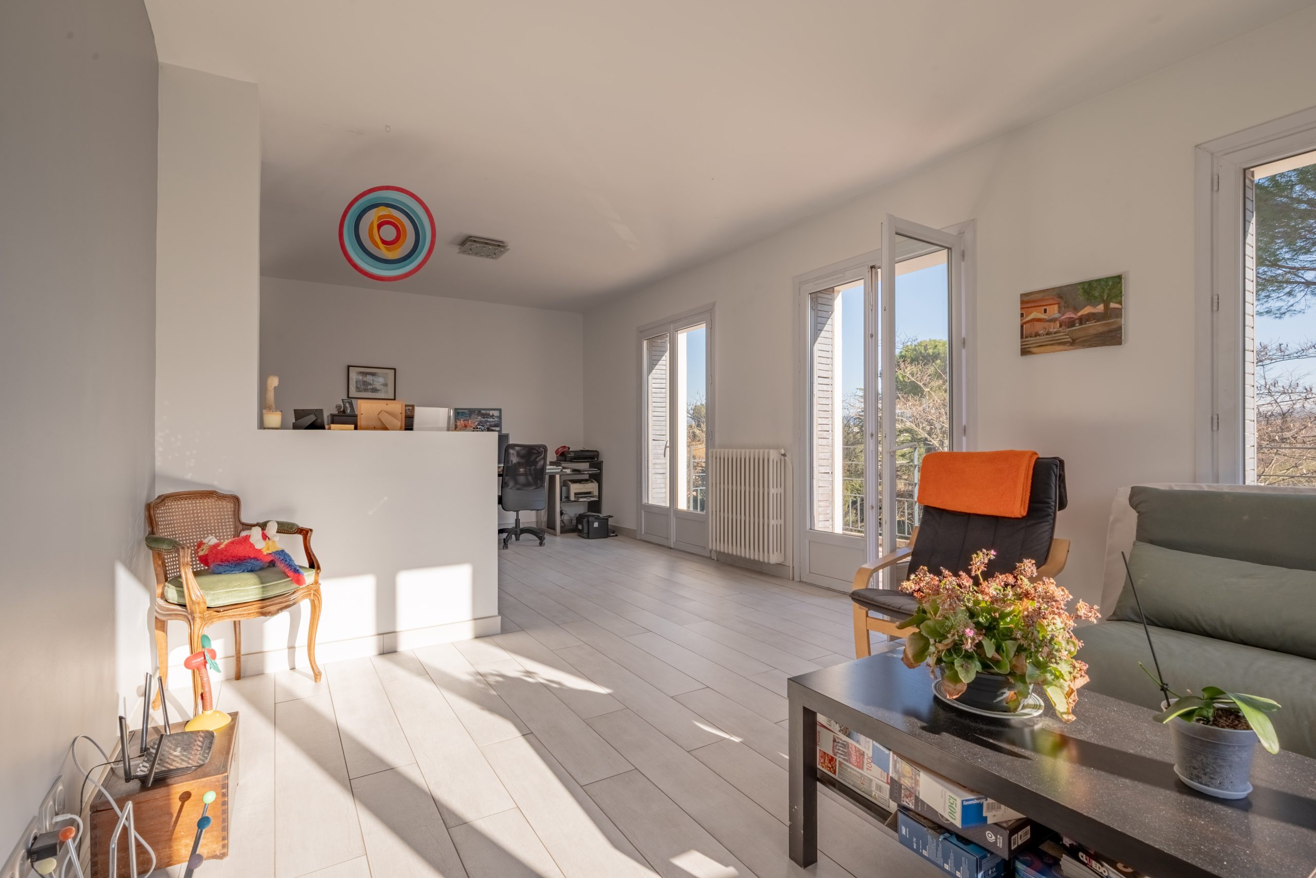 This elegant 185m2 family home is ideally located, just minutes from the historic centre of Aix-en-Provence, in a secure and sought-after residential area offering a peaceful and verdant living environment.
