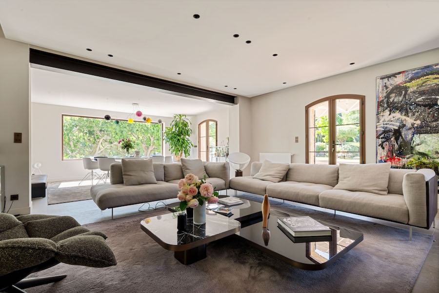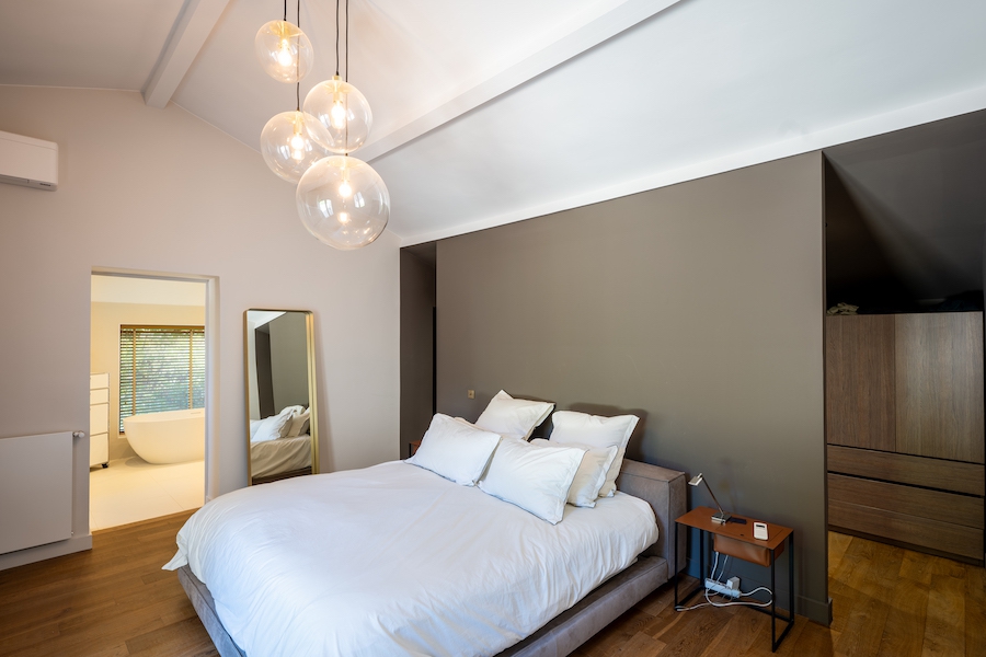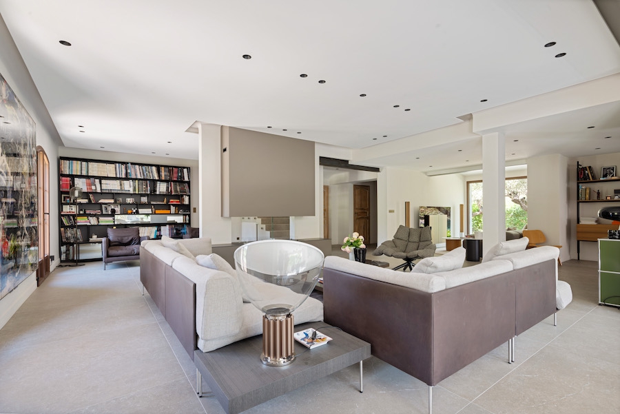 The 370 m2 main villa is bathed in natural light and exudes refined sophistication. A grand living room with a fireplace opens directly onto the gardens, blending indoor comfort with outdoor serenity. A dedicated TV room, private library, and a sleek chef’s kitchen with a central island cater to both everyday living and elegant entertaining.