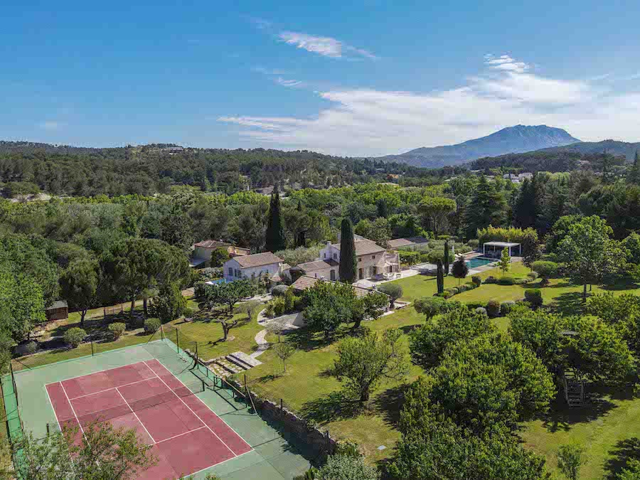 Only five minutes from the heart of Aix-en-Provence, nestled in 1.3 hectares of meticulously landscaped grounds, this exceptional estate invites you into a world where nature, elegance, and Provençal refinement harmoniously coexist. With commanding views of the Sainte-Victoire mountain range, this fully renovated residence offers 565 m2 of luxurious living space, composed of a main villa, a guesthouse, and an exceptional pool house.
