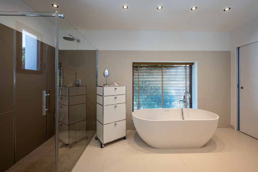 The lower level unveils a lifestyle-focused retreat: a climate-controlled wine cellar, a hammam, a jacuzzi, and a flooded-with-light fitness room with direct garden access—ideal for rejuvenation and wellbeing.