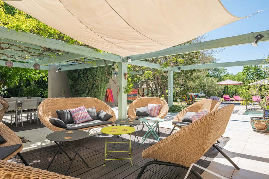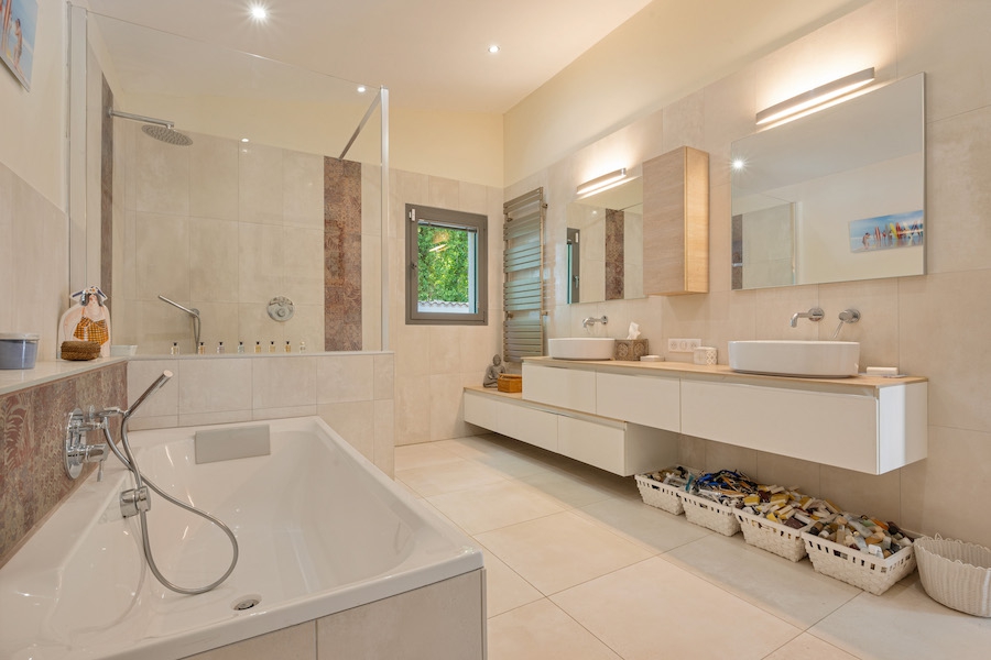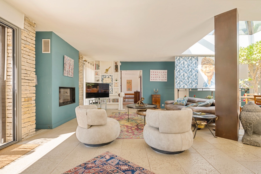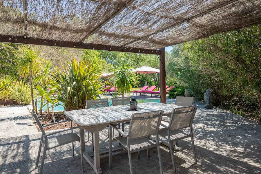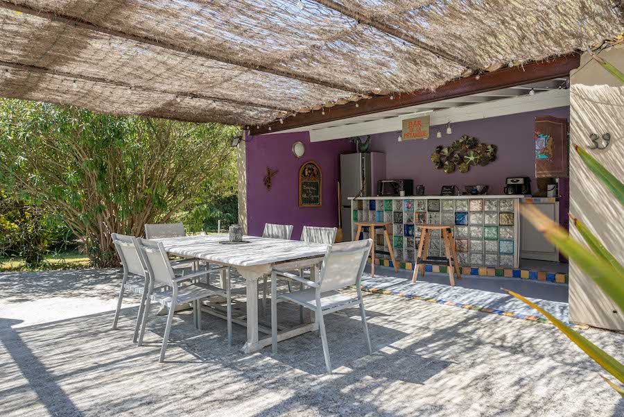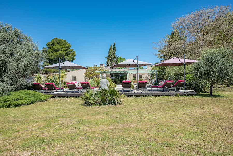The entire house opens onto the outside, allowing you to take advantage of its remarkable 350 m2 terrace planted with trees and shrubs. The garden is a haven of peace and an invitation to travel and entertain. It offers a number of relaxation areas, including a large, illuminated, free-form swimming pool, a summer bar and kitchen, a pool house, a bowling green, a built-in barbecue with double grill and a Balinese daybed. It boasts magnificent vegetation including banana, olive, laurel, magnolia and almond trees.