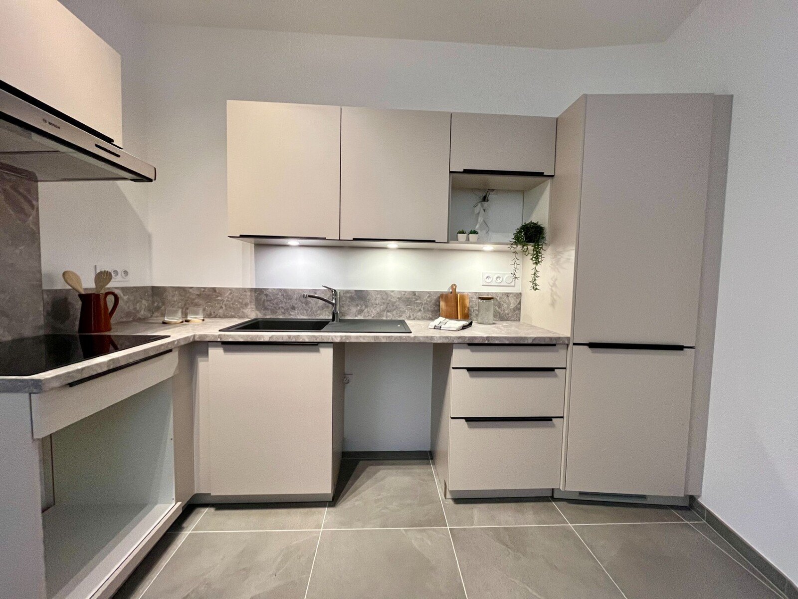 – Fully equipped kitchen open to the living room