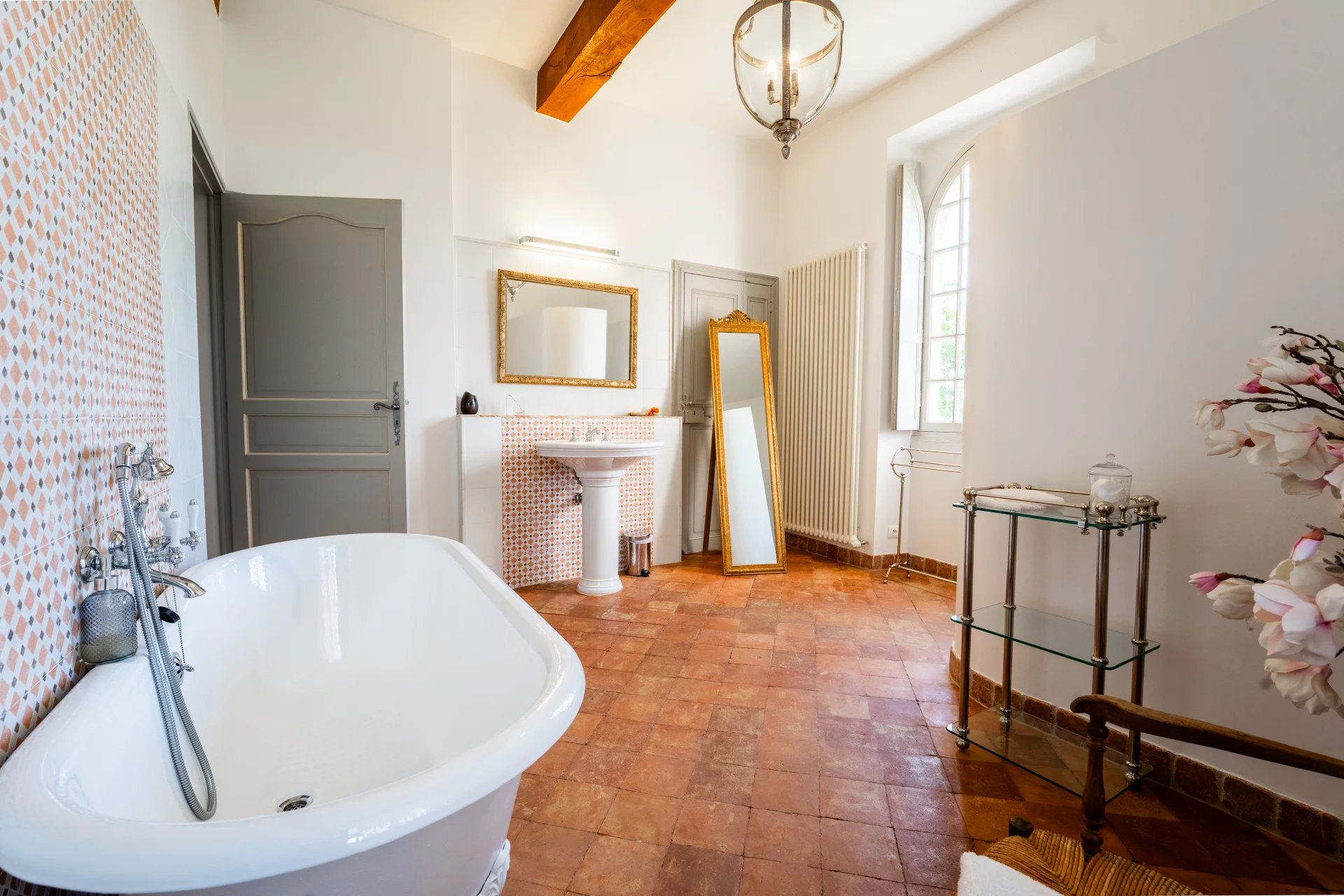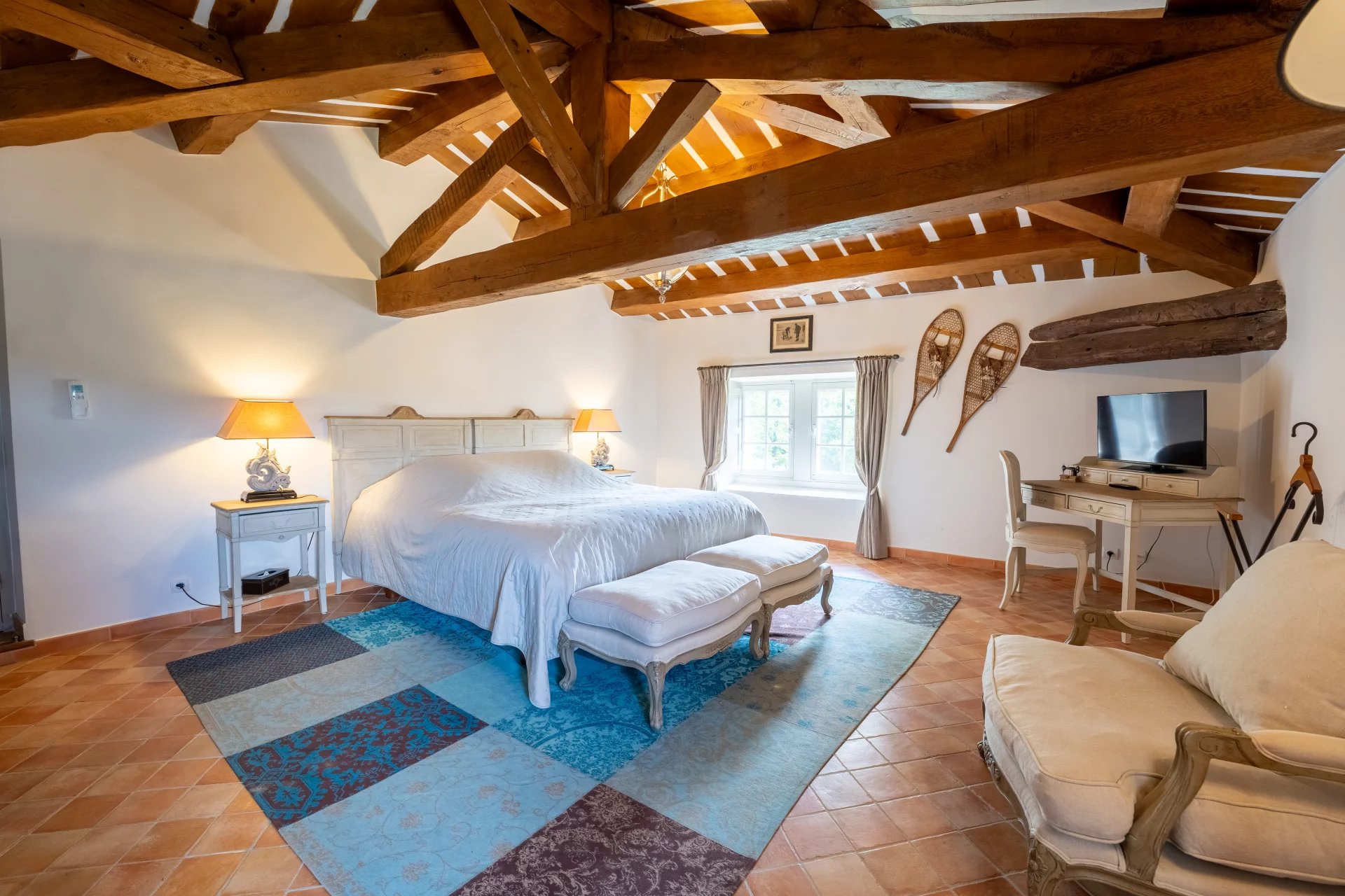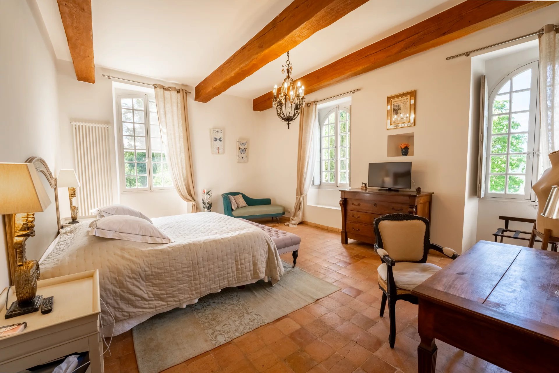 One will be eager to discover the uniqueness of many areas in this property, from the large reception hall with its superb vaults to an 860 sqft playing room, a tower with equipped massage rooms, about 20 suites and bedrooms and many storage areas, including for wine, food, and laundry work.
