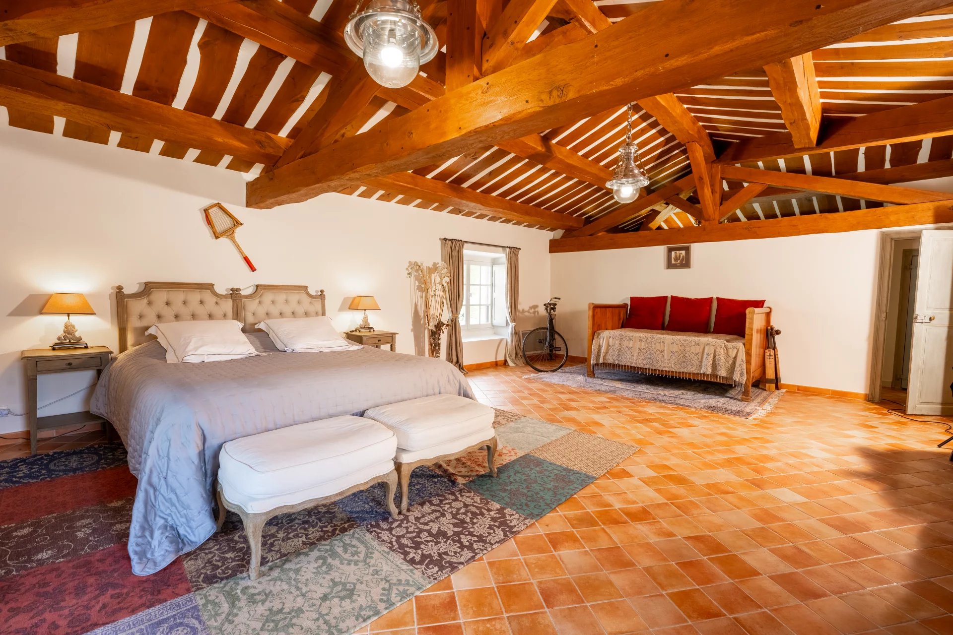 The complex is divided into the castle, the bastide and the pavillon. It includes 12 vast and beautiful master suites, many reception rooms, large fireplaces, an after-hunting room under arches and many more.