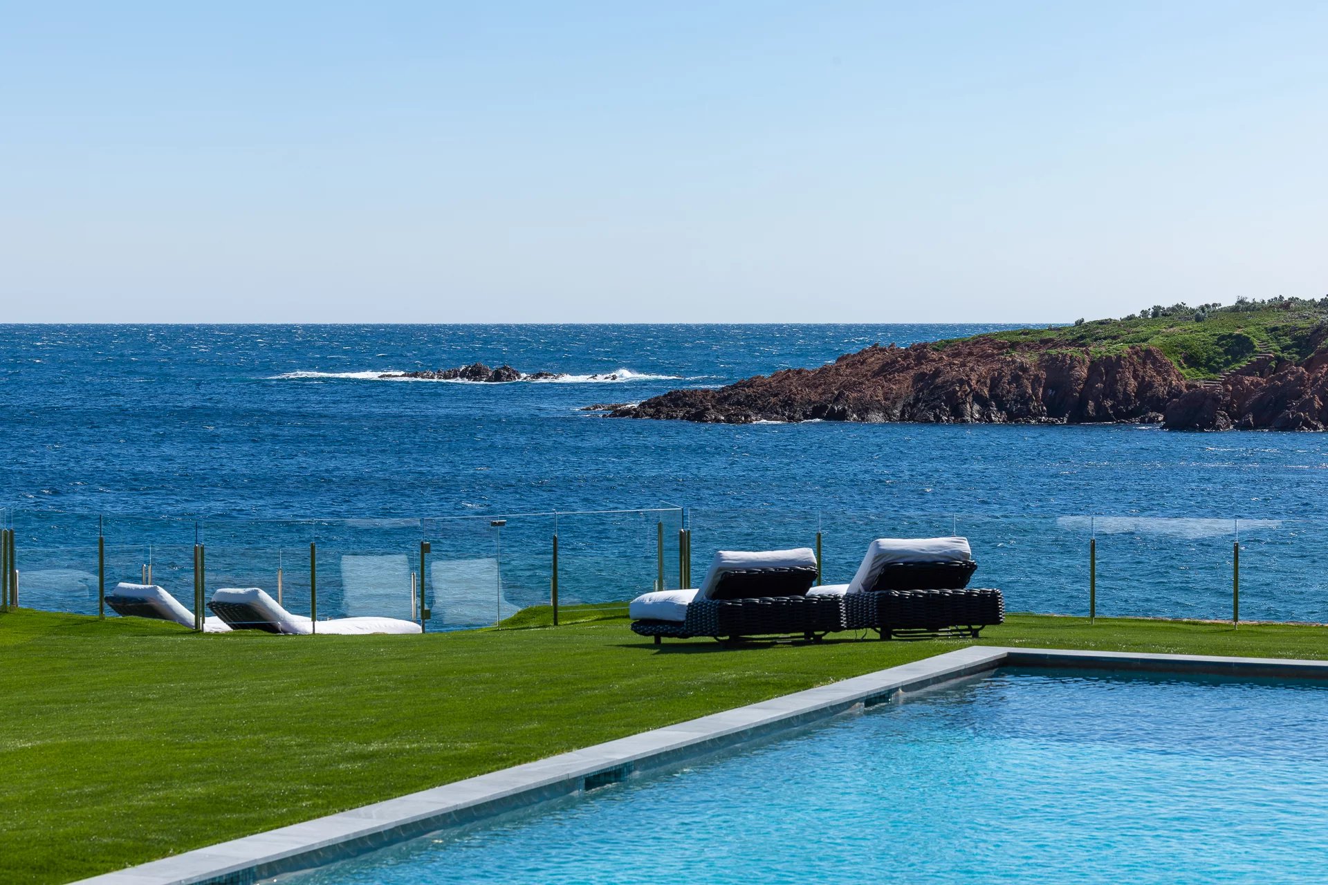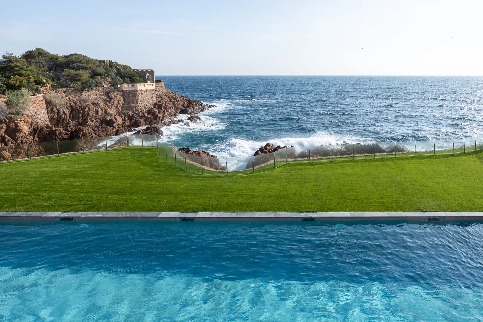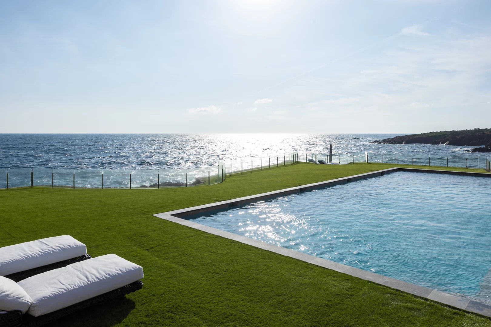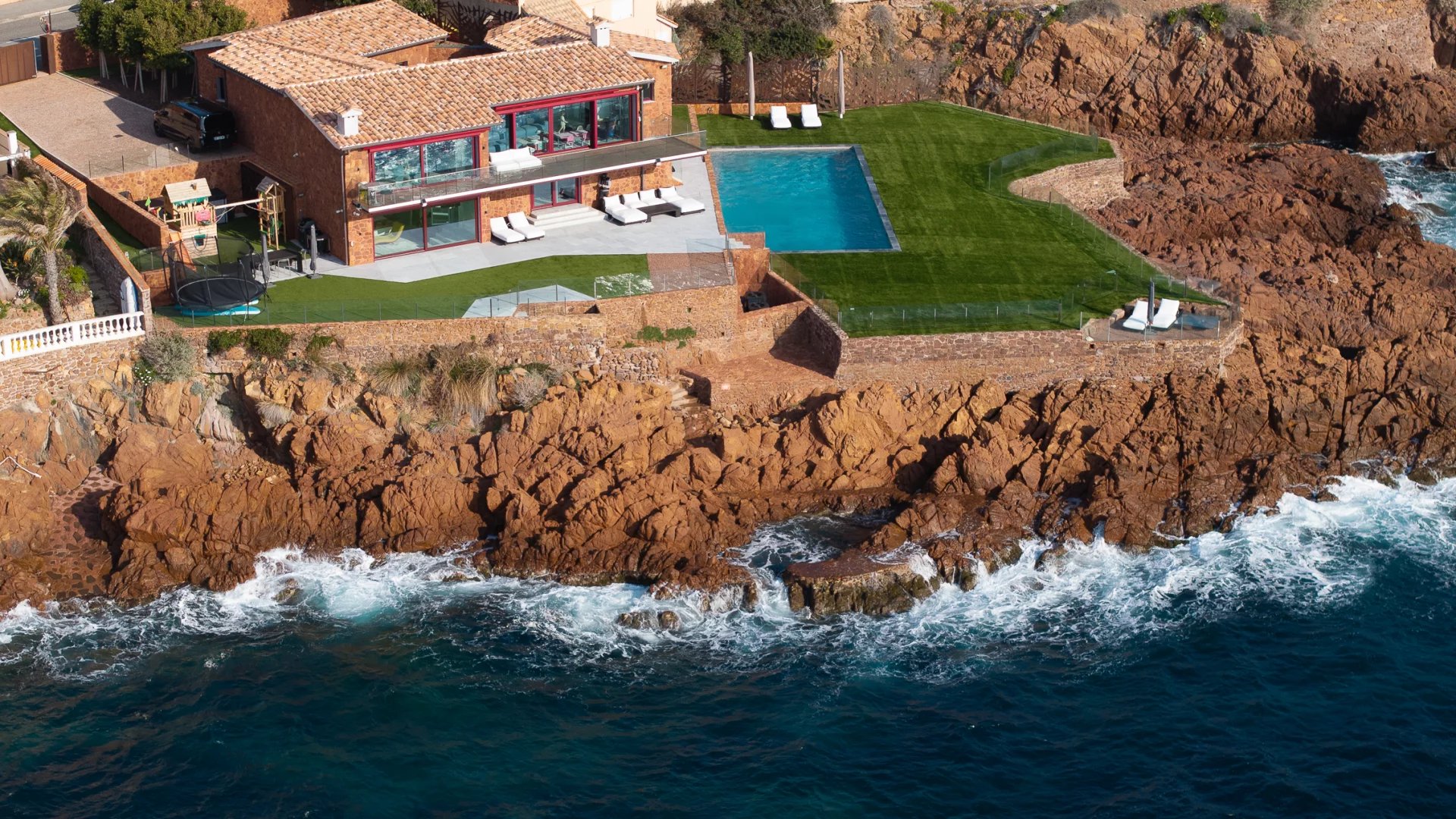 Superb very recent contemporary villa of 240 m2 of living space approx approx (320 m2 approx in total with interior patio and suspended terrace). Living room with 2 fireplaces, a dining room, 2 professional kitchens, 3 beautiful en-suite bedrooms and a independent apartment for staff. Superb master bedroom (100 m2 approx) facing the sea and with large double dressing room. Parking for 4/6 cars. Play area for children. Very luxurious and extraordinary services.