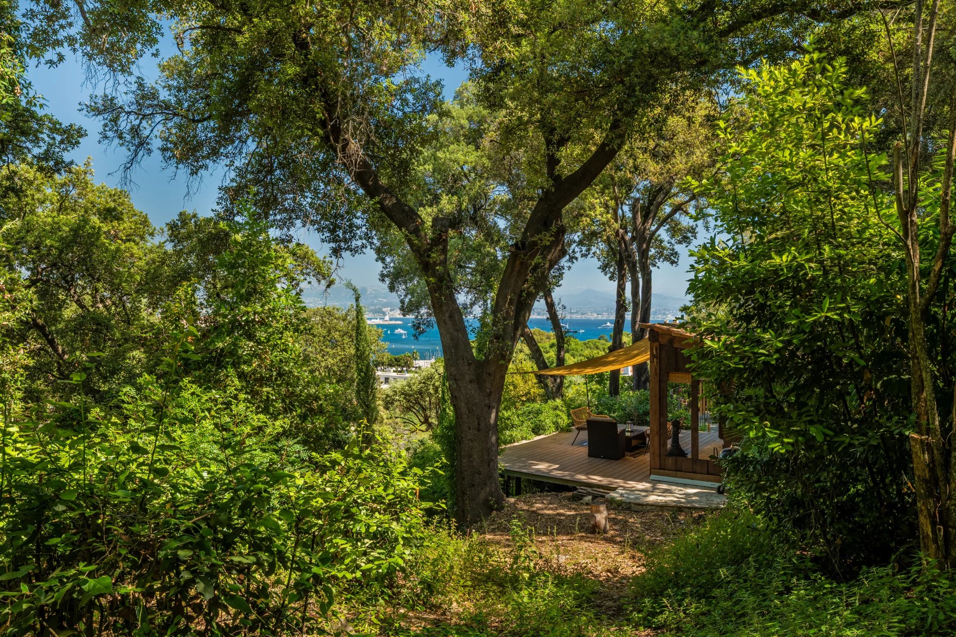 Outside, a huge 1,500 m2 terraced garden awaits you, with an open bungalow to enjoy summer evenings facing the Mediterranean, as well as an outdoor kitchen sheltered in a wooden cottage.