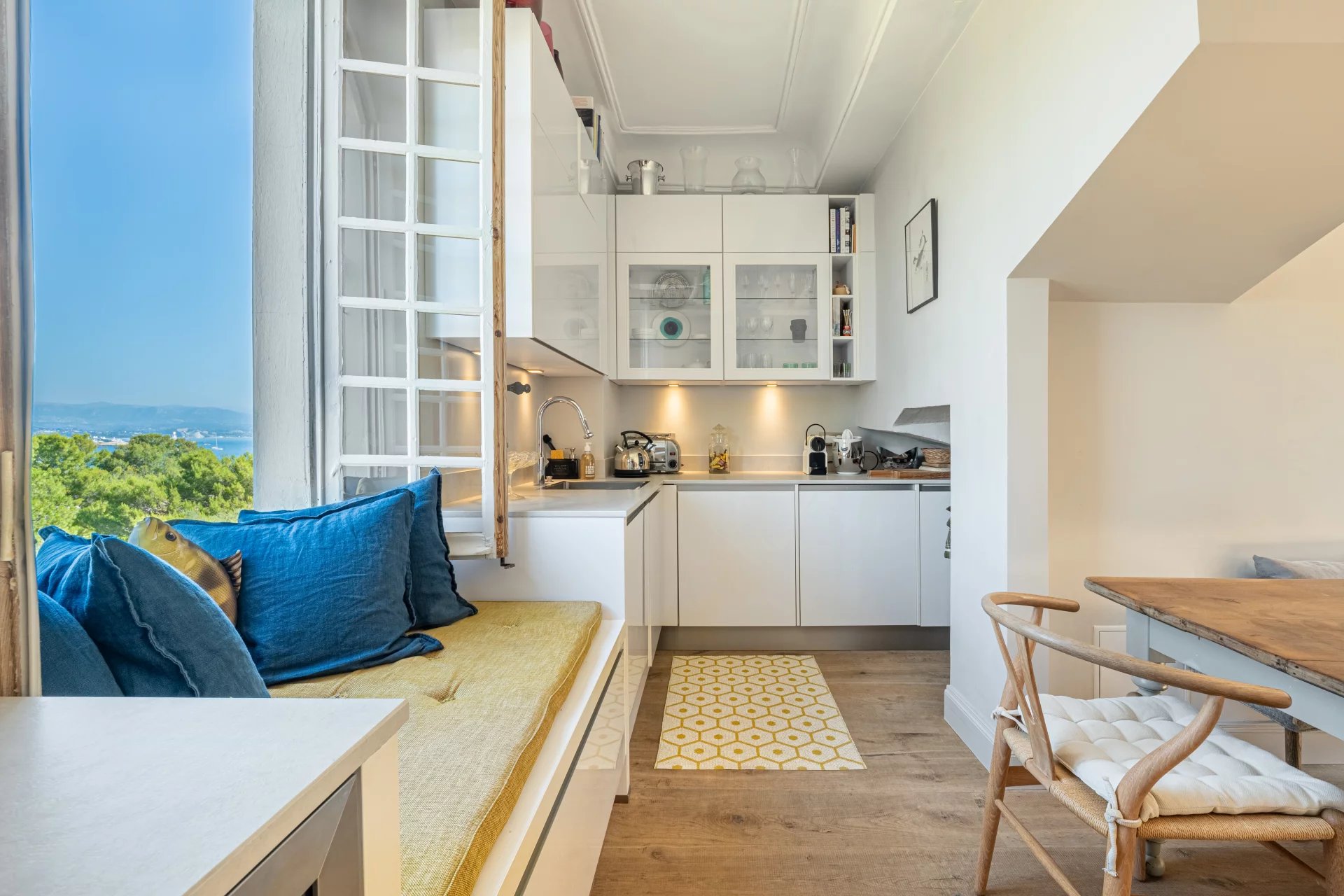 A unique duplex apartment of nearly 90 m2, located on the top floors of a listed 19th-century building, with a superb private garden of 1,500 m2 and spectacular views of the sea and Antibes.