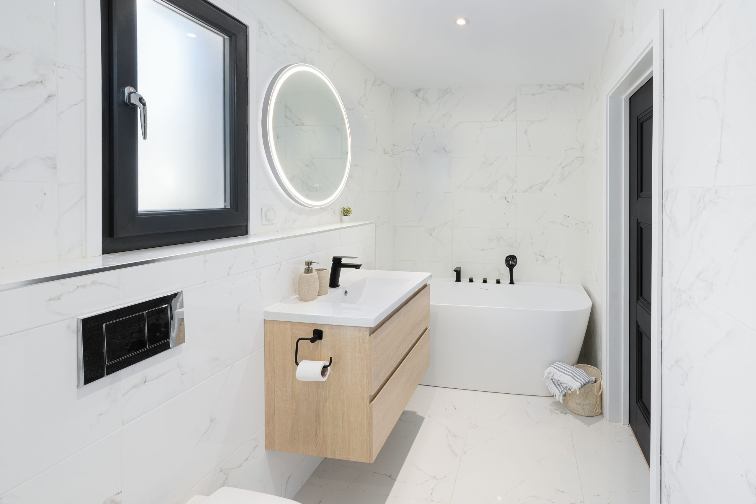 – Ground floor: spacious living, dining, separated equipped kitchen, bedroom en-suite with shower room, WC