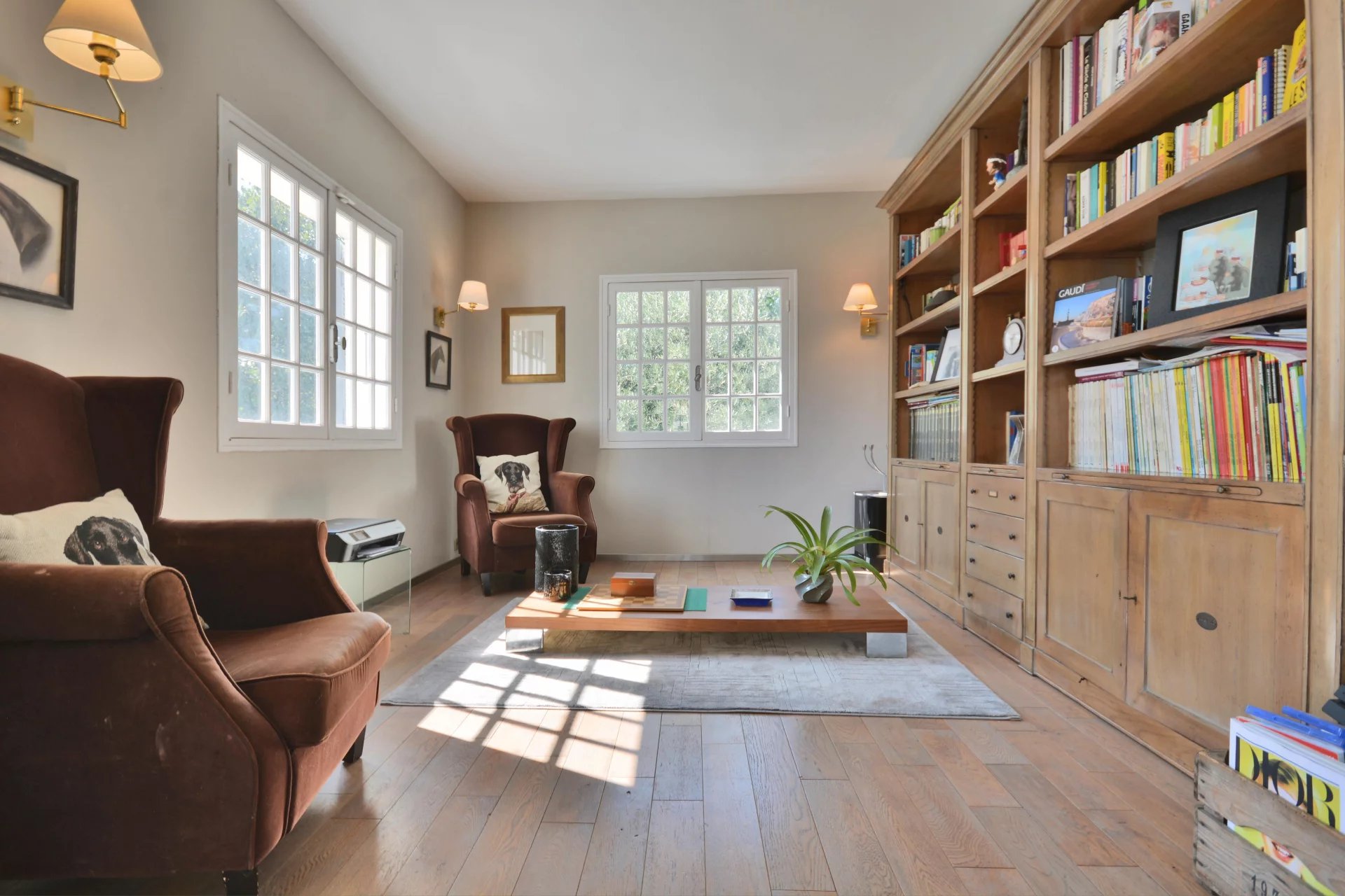 Inside this well presented family home there’s an entrance hall, spacious and bright living/dining room with fireplace, library, open-plan fitted kitchen 4 bedrooms and 3 bathrooms. Utility room and dressing room.