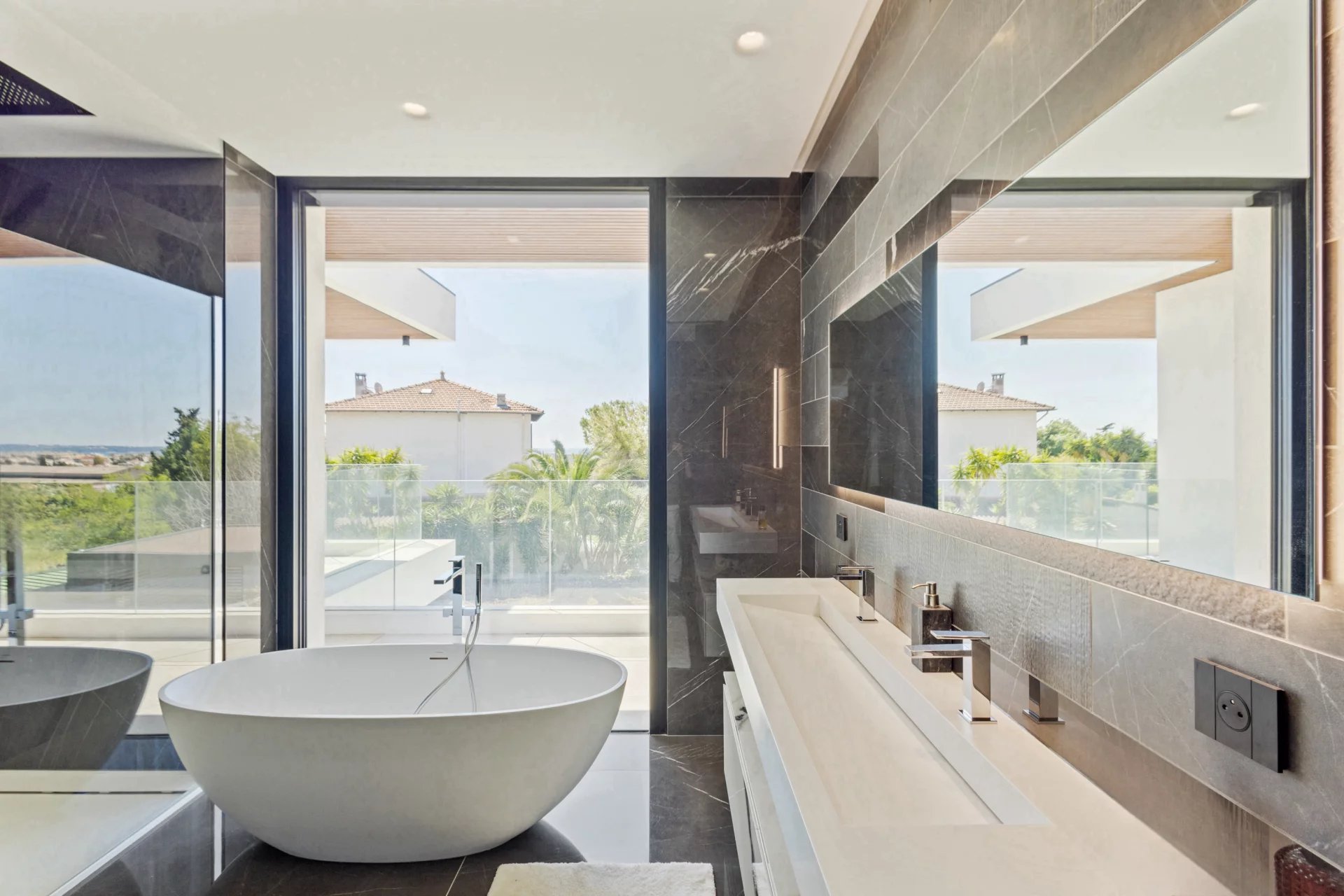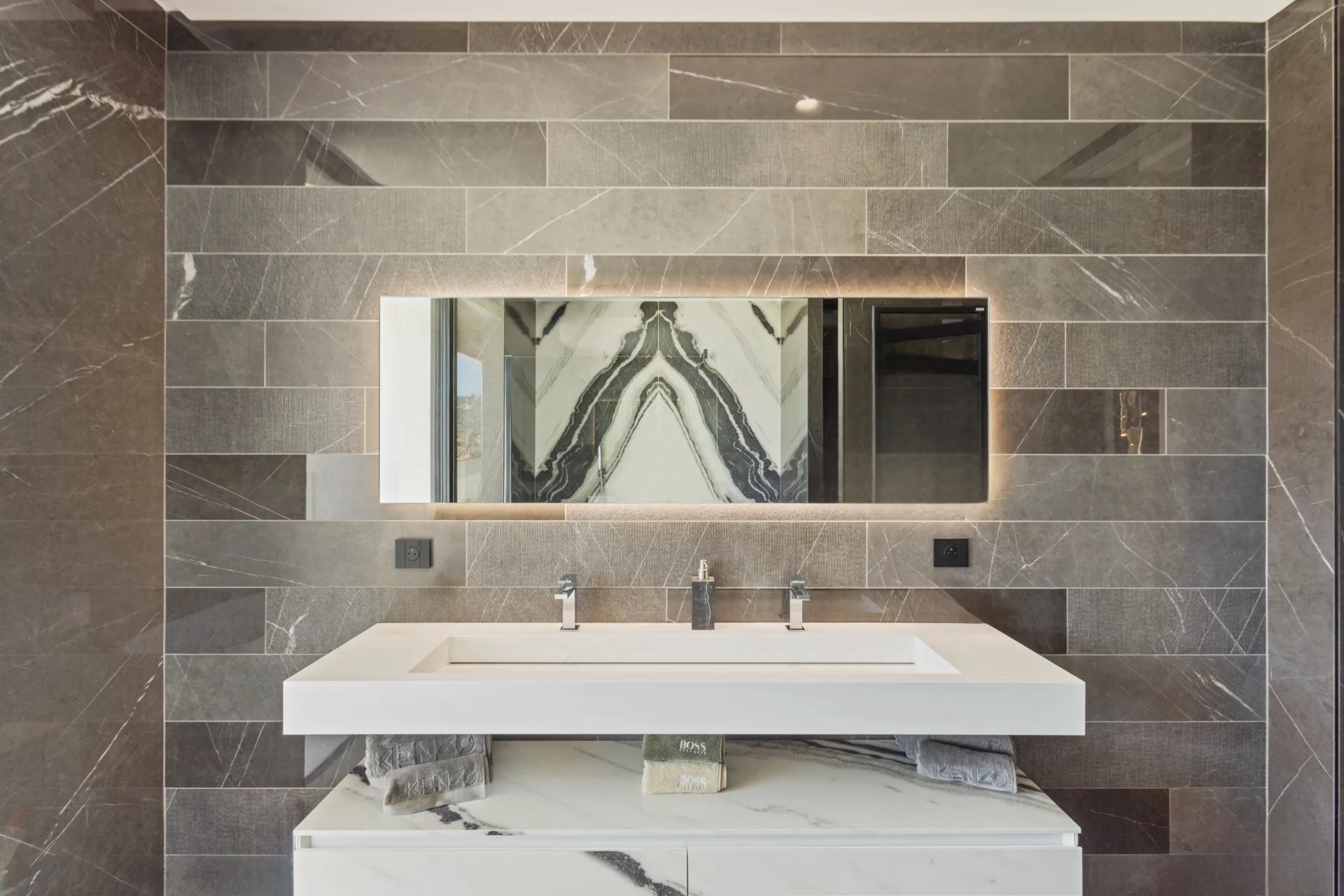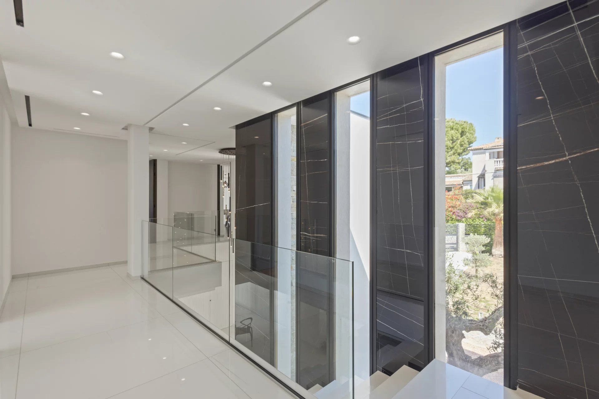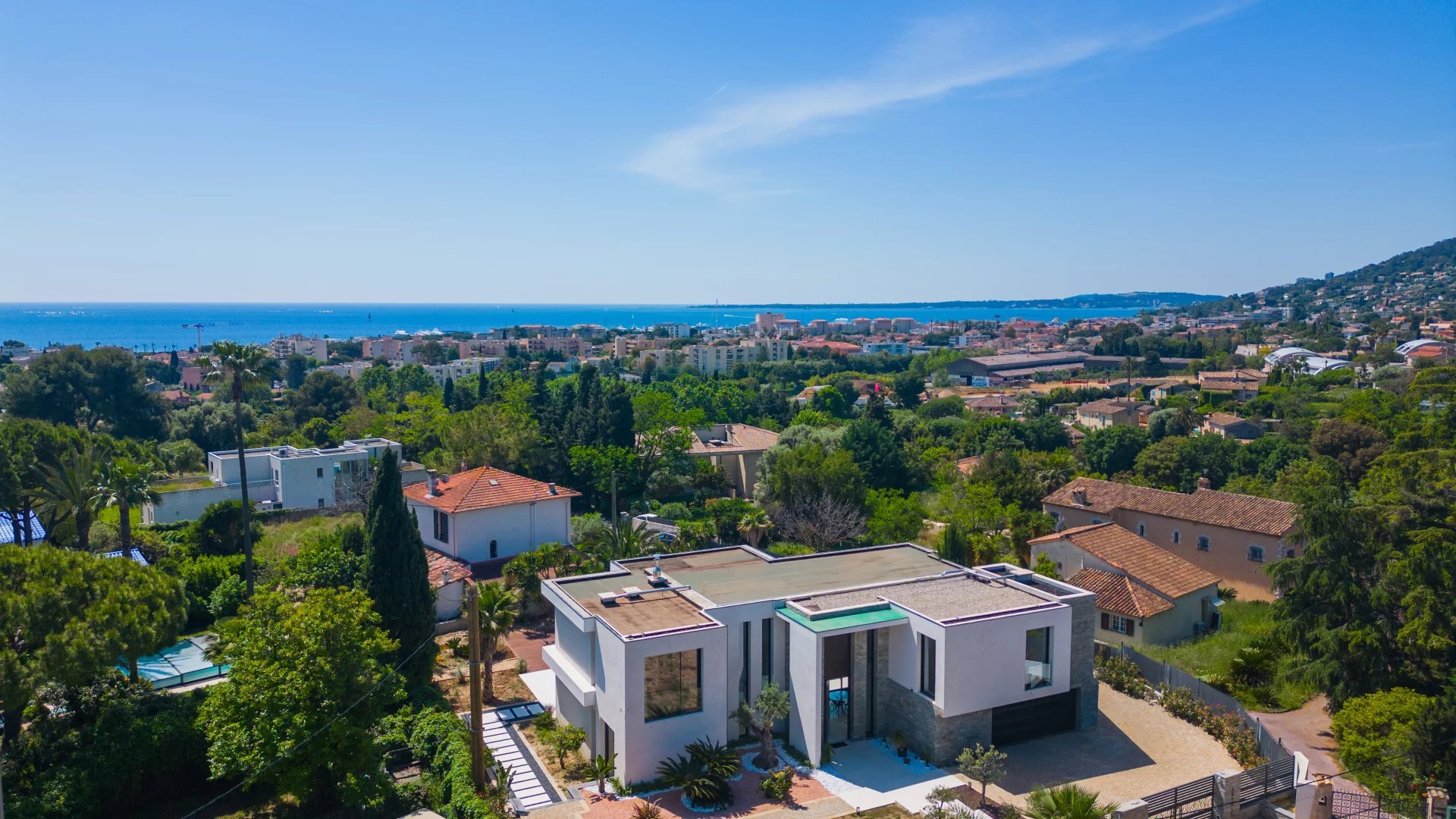 This striking modernist villa harmoniously blends bold geometric forms with a warm, inviting atmosphere. Situated in a tranquil area of Antibes, the 322 m² residence showcases exceptional architectural precision through stone accents, and walls of glass that dissolve boundaries between interior and exterior spaces.