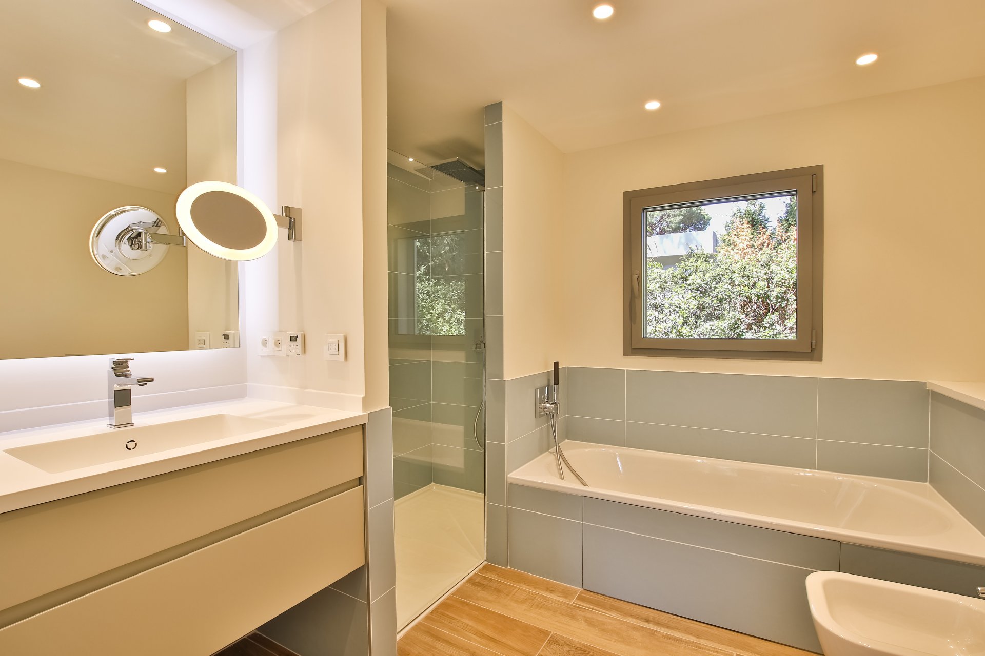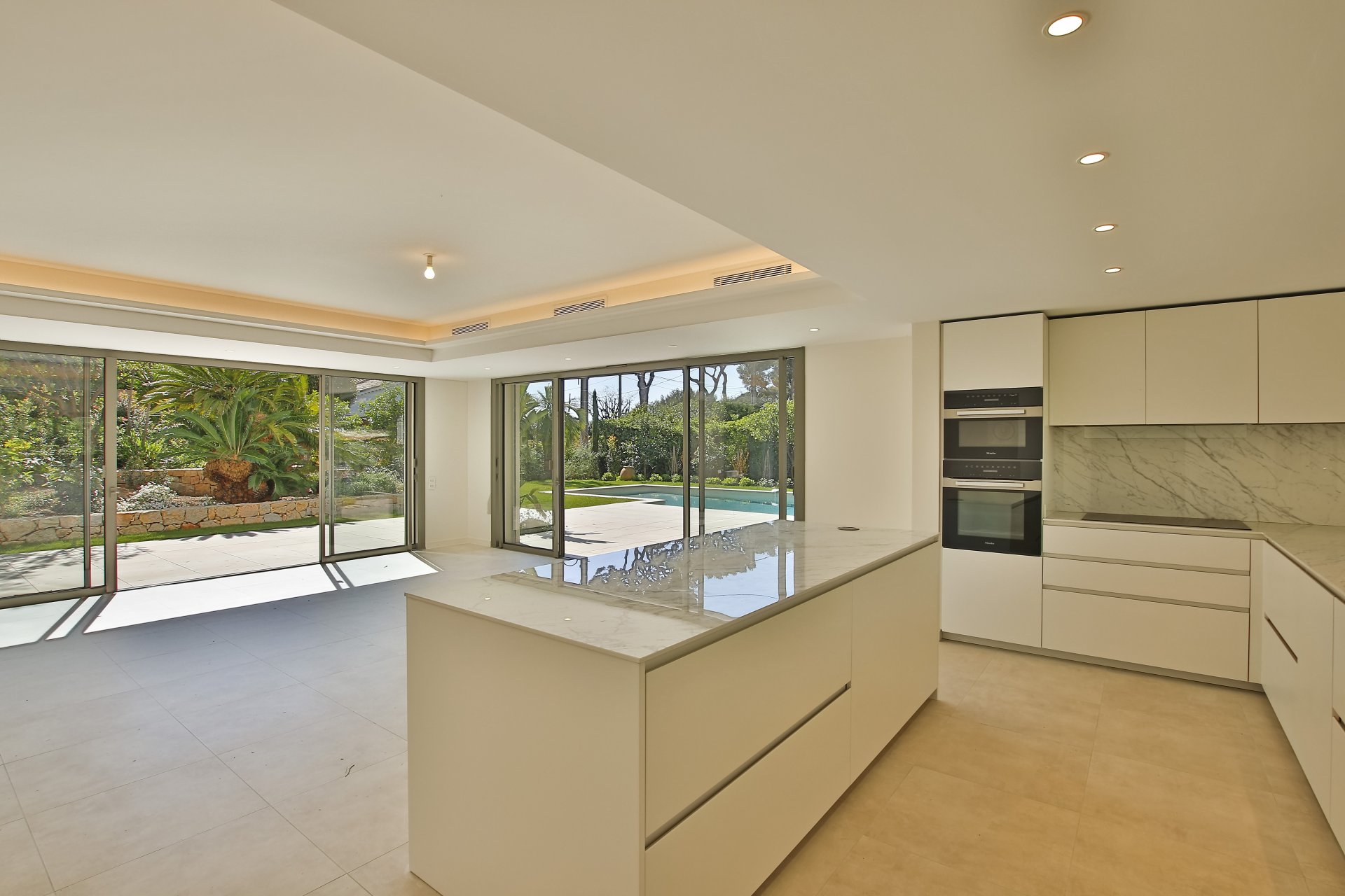 Located in a closed domain with caretaker, quiet and close to beaches and shops, very beautiful contemporary villa of 228 m2 entirely renovated with quality and built in the heart of a magnificently landscaped garden with swimming pool.