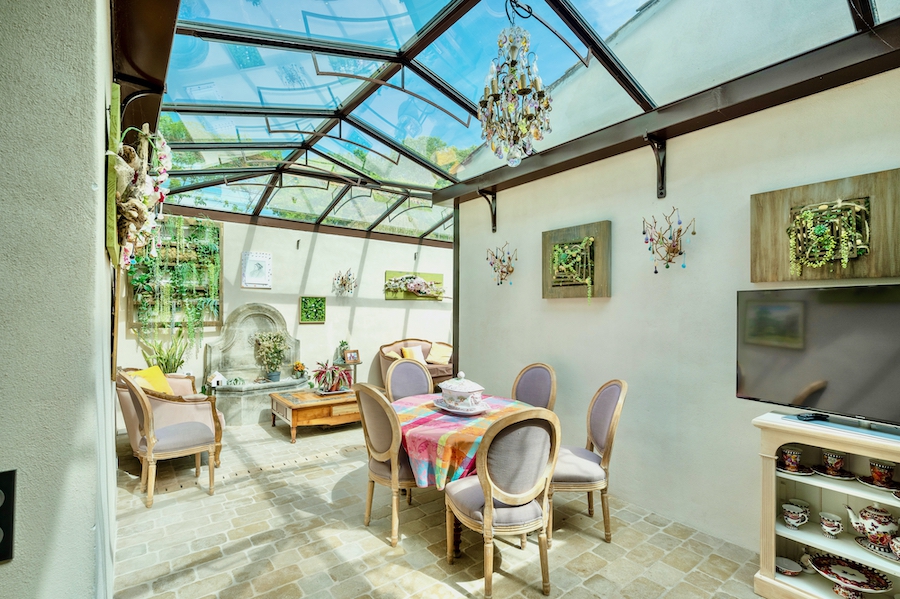 A paved path will guide you towards the 15 x 4.5 swimming pool with its terrace that can accommodate many guests and its pool house of more than 100 m2 fully equipped to enjoy the beautiful summer days with a bar, an indoor kitchen, outdoor barbecue, pizza oven…