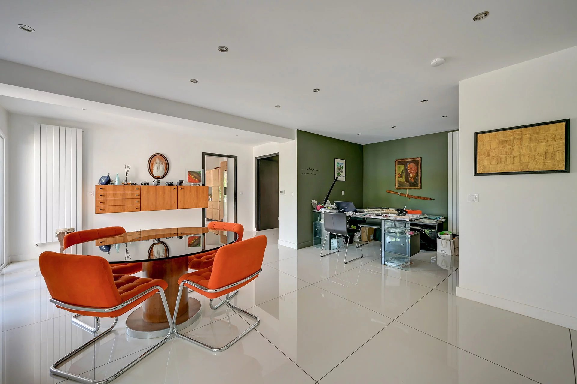 Outdoors, a superb swimming pool with its furnished pool house invites you to relax in a lush green setting. The property also features a spacious garage of approximately 77m2 and numerous private outdoor parking spaces, ideal for entertaining.