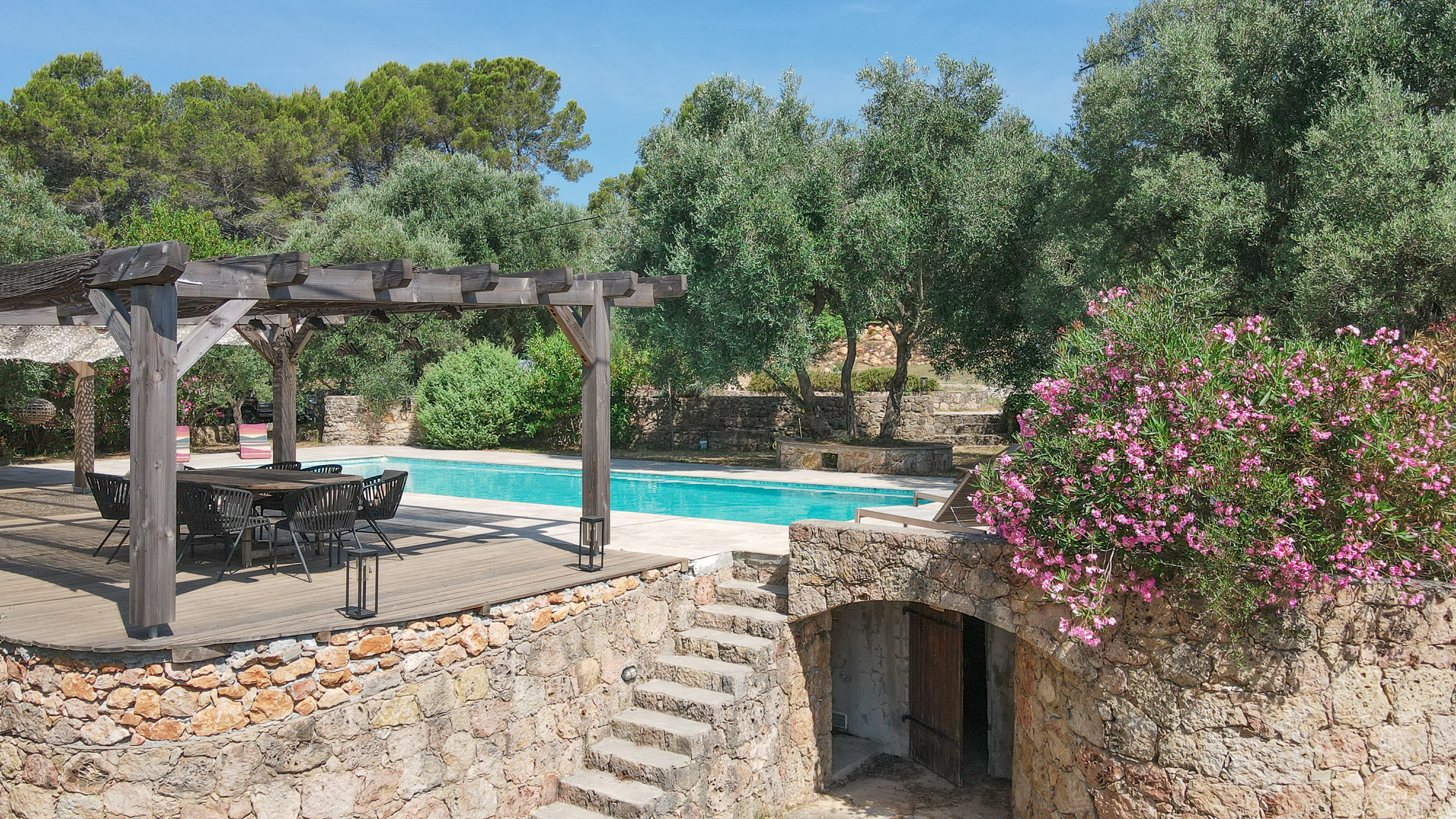 Outside, a shimmering pool calls for lazy afternoons, while a garage, cellar, carport, and charming outbuildings complete the estate.