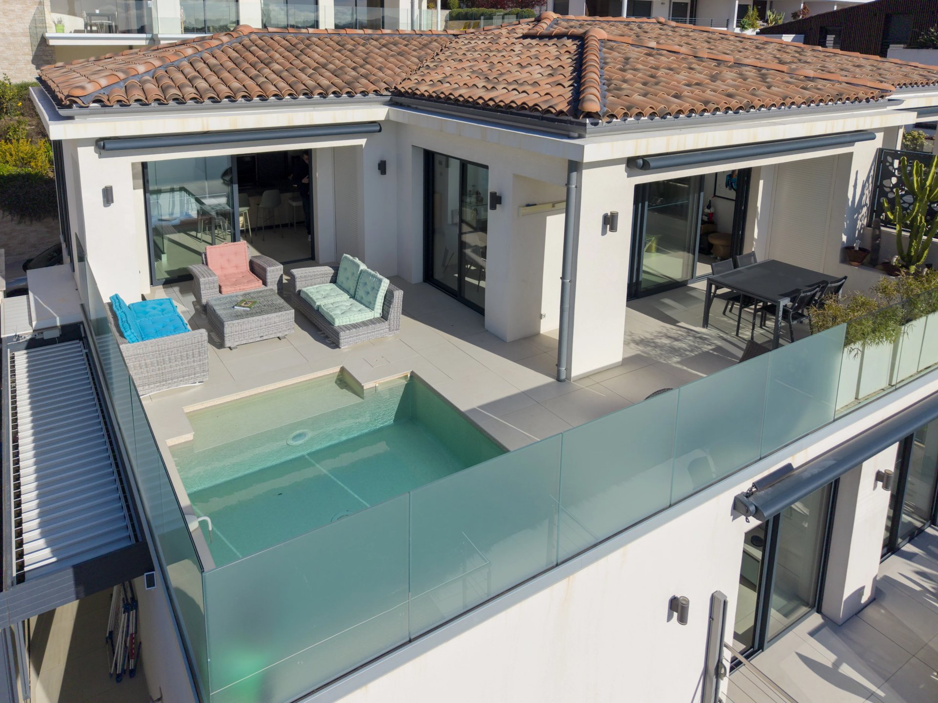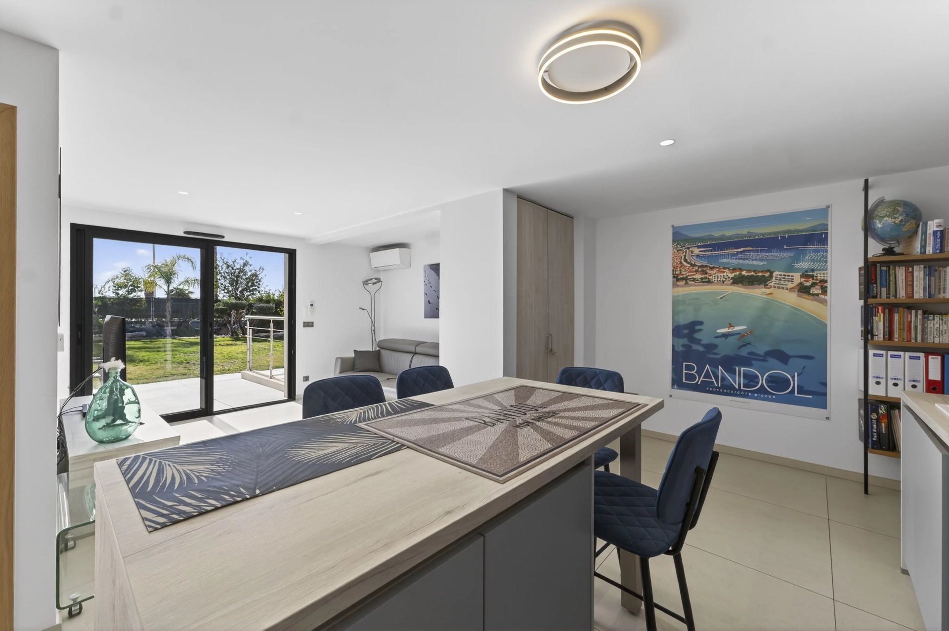 Set within a secure, gated residence, the villa, built in 2022, sits on an approximately 300 m2 landscaped and enclosed garden, complete with a swimming pool. The Port of Bandol is less than a 5-minute walk, combining the rare appeal of beachfront living with the convenience of the town center.