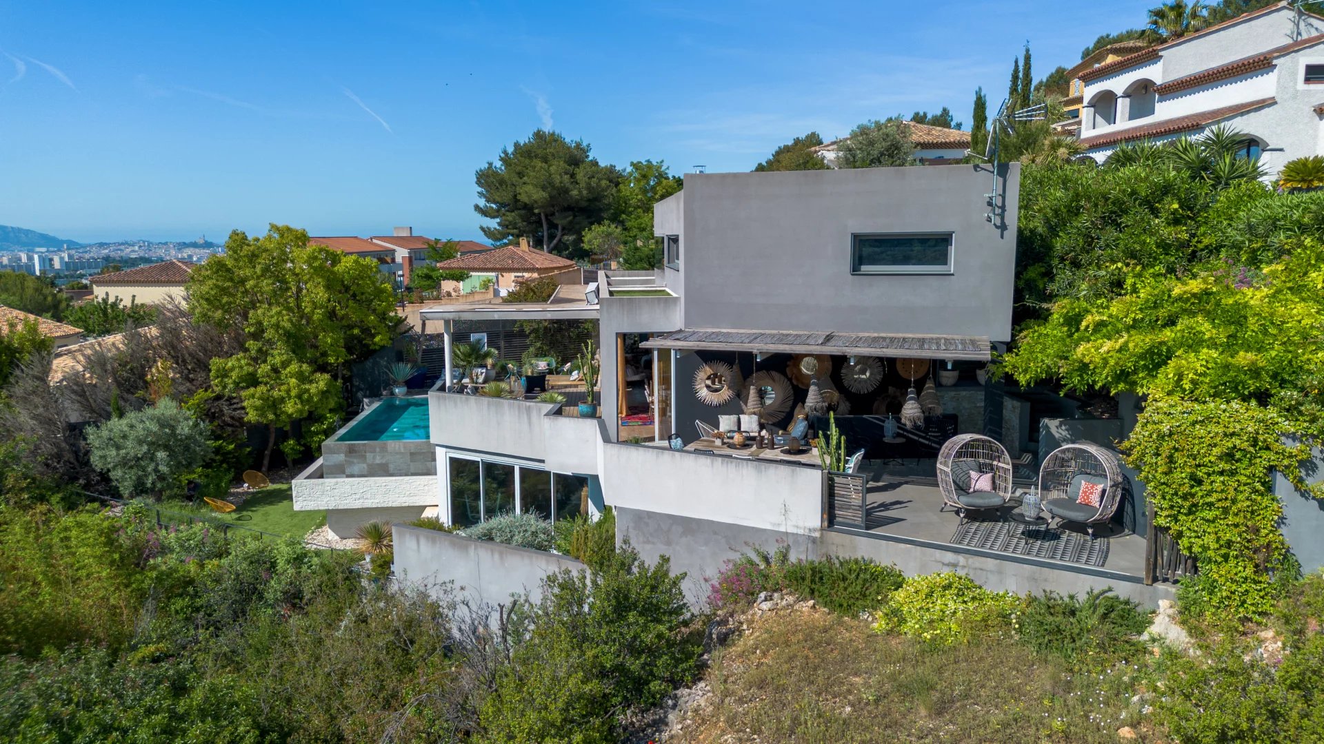 Perched in a commanding position within one of Bandol’s sought-after residential areas, this architect-designed villa of approximately 235 m2 seamlessly combines contemporary architecture, exceptional build quality and an unmistakable art of living.