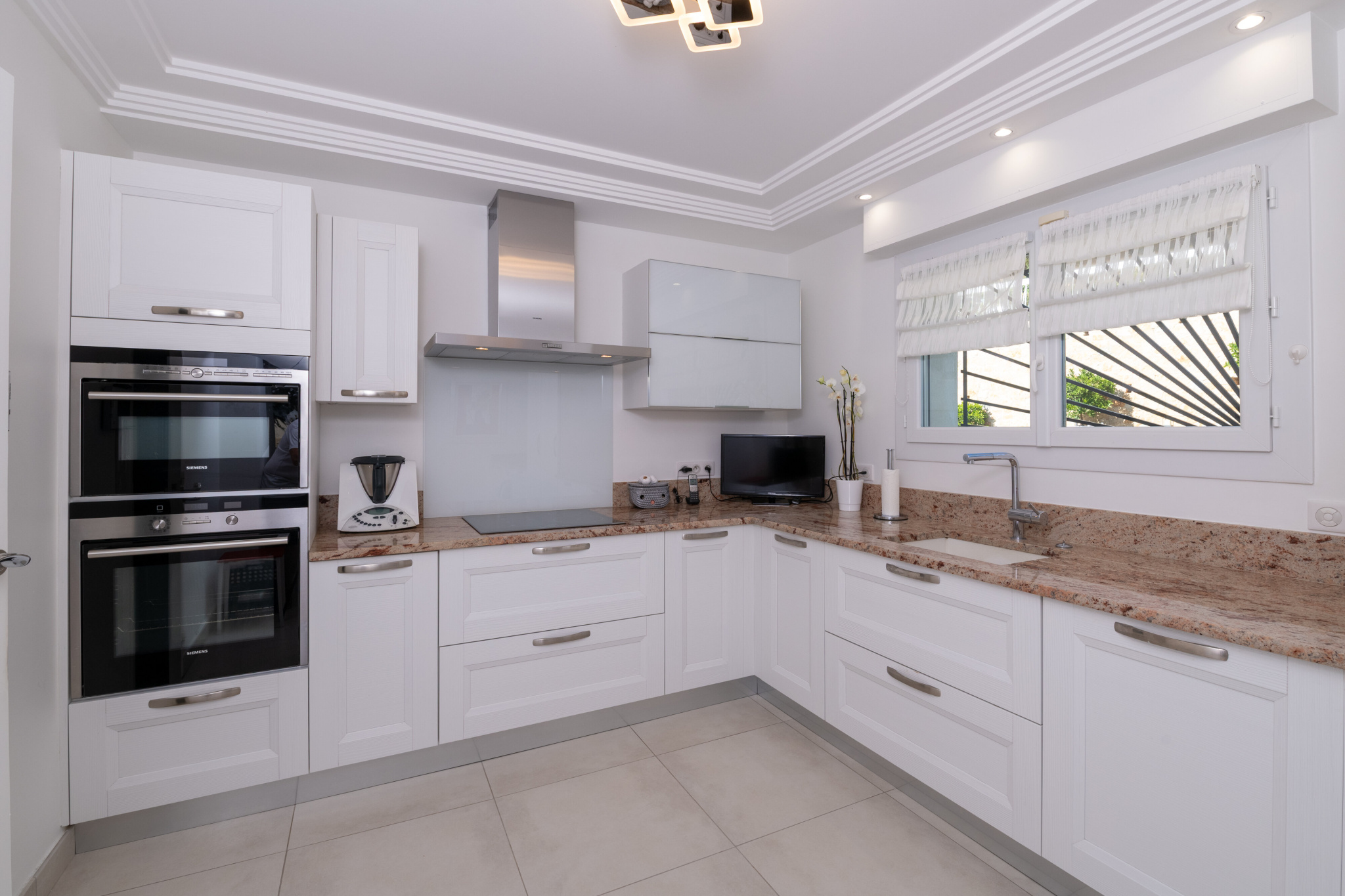 Thoughtfully crafted in every detail, the villa is bathed in natural light throughout, with sweeping views that flow harmoniously from room to room. Set on a beautifully landscaped plot of 1,235 m2, the property unfolds over two levels connected by an interior staircase, offering flexibility to enjoy the home as a whole or to accommodate family and guests with complete privacy.
