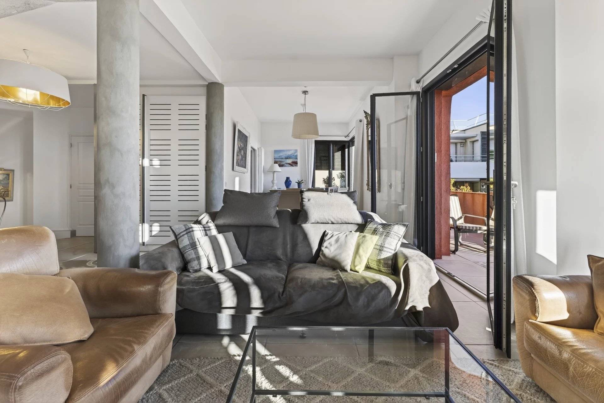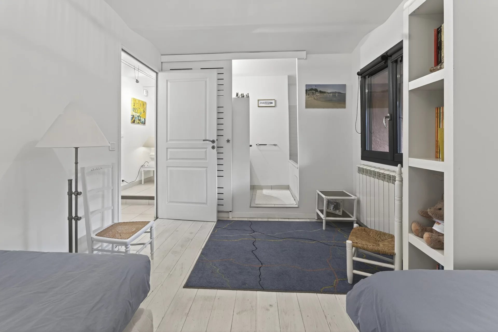 Upstairs, a bright and spacious 45 m2 living room opens onto a 25 m2 terrace with a lovely sea view. An independent kitchen, a bedroom with shower room, and a separate toilet complete this warm and light-filled level.