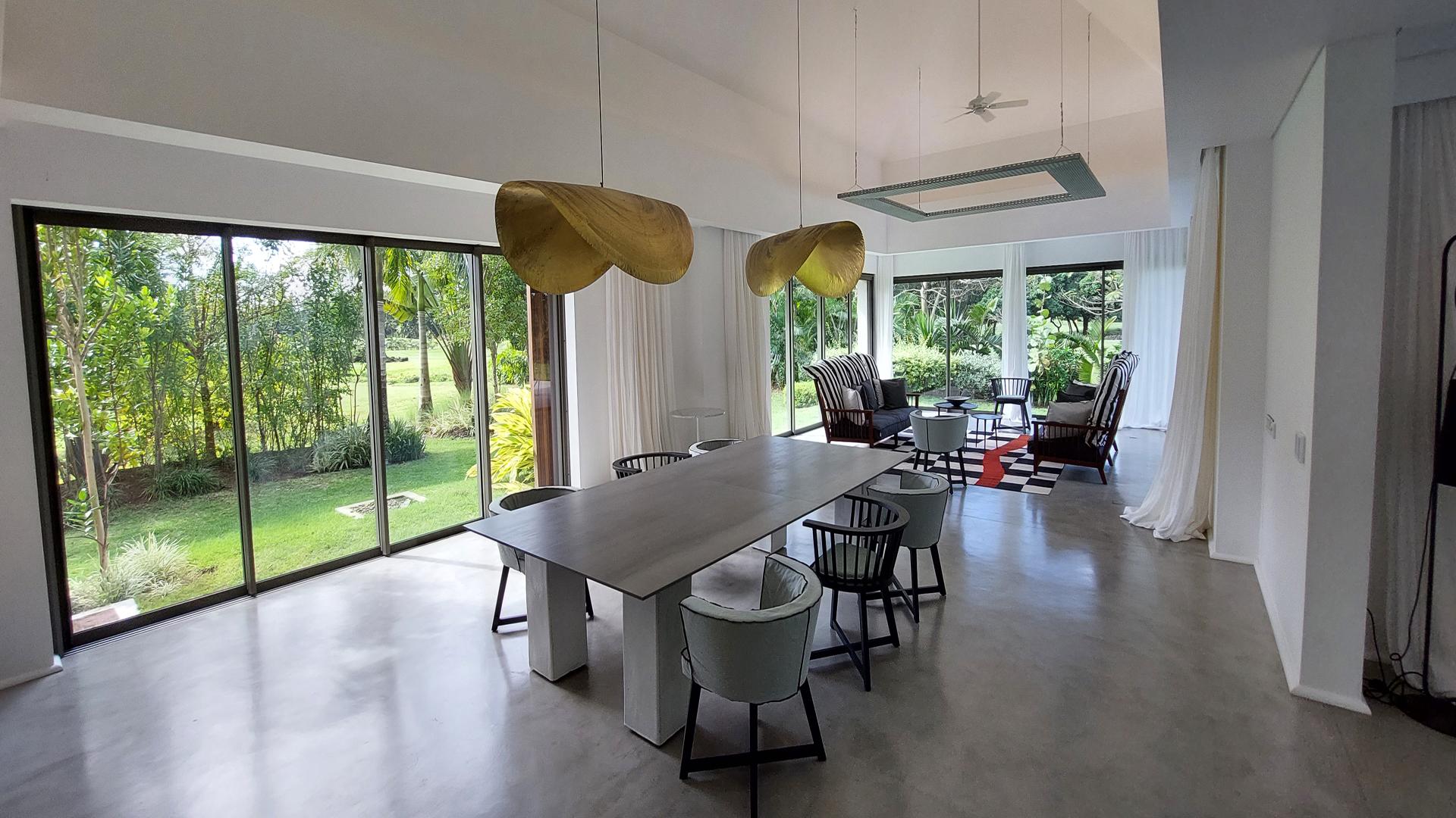 As you step into this 4-bedroom modern and chic villa, you’ll be greeted by a grand, floor-to-ceiling window ahead, providing a captivating view of the serene swimming pool and meticulously landscaped garden. On the left wing of this villa, you’ll find a generously sized living room, exuding a sense of luxury and comfort. You’ll also discover the elegant dining area, accompanied by yet another inviting lounge room.The kitchen with black granite and wood finishes, adopts an open plan design, promoting a harmonious flow throughout the space. Adjacent to the main kitchen, you’ll find a grease kitchen and a laundry area, conveniently leading to the single garage located at the back.Down the corridor, find 3 bedrooms, where each comes with its own en-suite bathroom and  2 of them boast a charming dressing area.Venturing upstairs, an open space unfolds, opening up to an outdoor terrace that showcases breathtaking views of the verdant garden and the adjacent golf course. Here, the master suite awaits with a spacious dressing room and a luxurious bathroom, complete with a relaxing bathtub to unwind after a long day. Cherry on the cake, outside you will have a sparkling swimming pool and views like no other!Contact us for a visit.