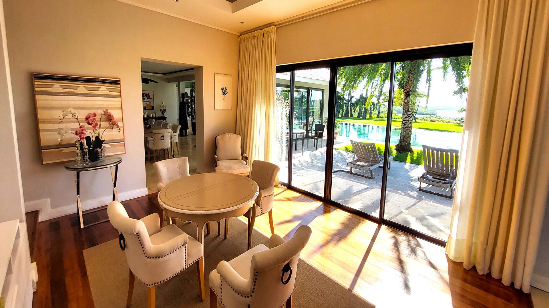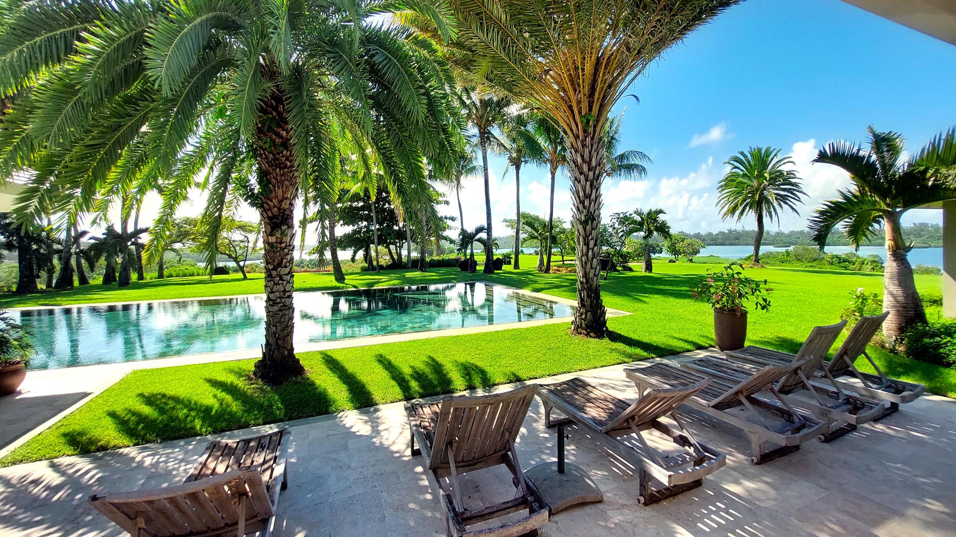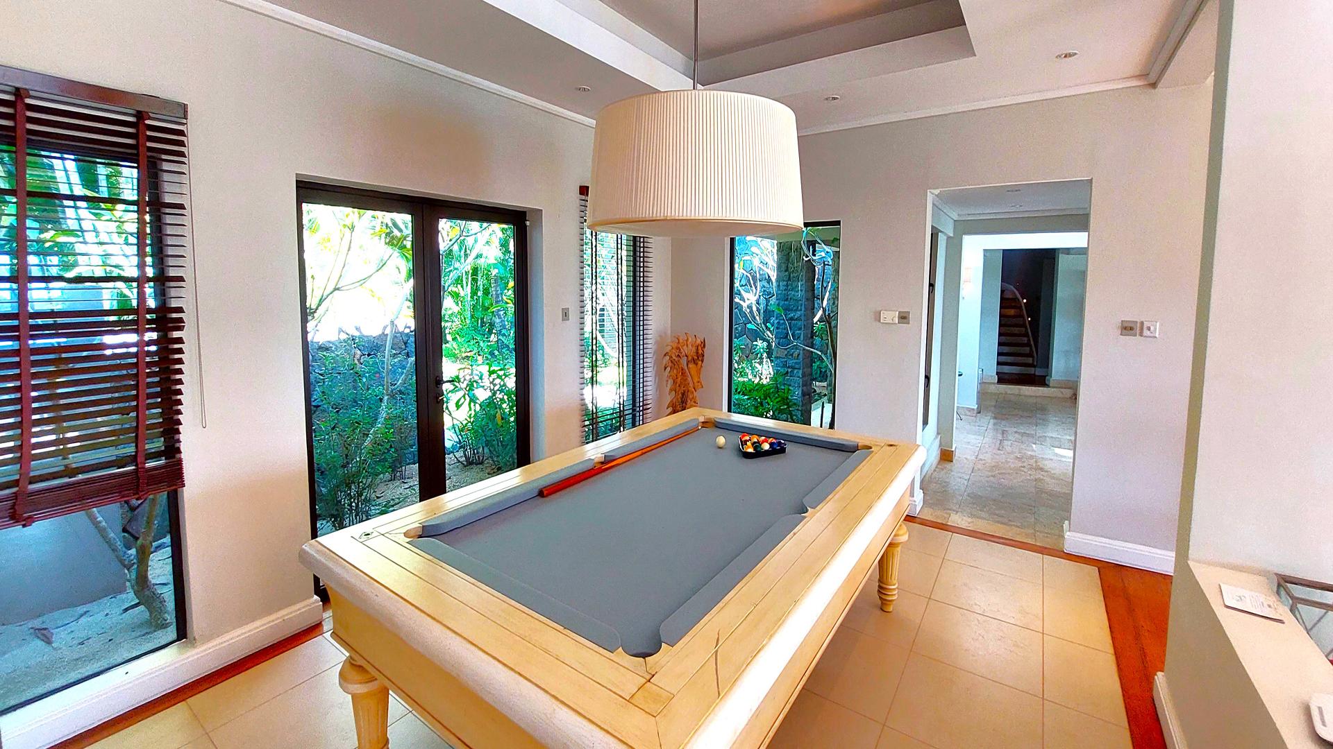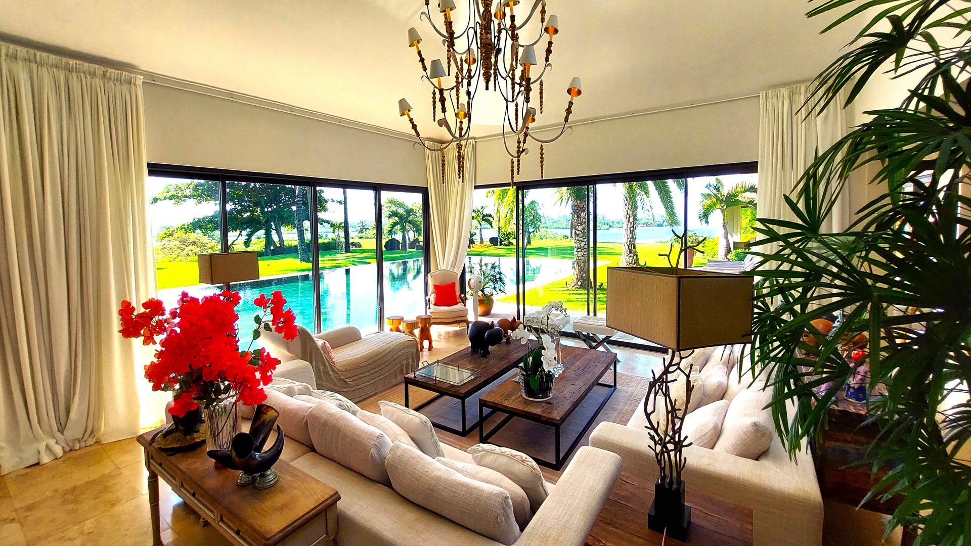 An absolutely divine home, welcome to this exquisite 5-bedroom villa, nestled within a world-class resort and situated between the 17th and 18th holes of the prestigious Ernie Els golf course. Offering breathtaking 180-degree sea views, this villa also boasts a captivating vista of the stunning Ile aux Cerfs island.Allow us to walk you in!With its ground +1 design, the villa presents a harmonious blend of elegance and comfort. As you enter, the left side of the villa comprises two en-suite bedrooms on the ground floor, while the master bedroom encompasses an exceptionally generous dressing room and a study area. Ascending a beautifully crafted wooden staircase, you’ll discover three more en-suite bedrooms on the upper level.For additional privacy, a separate outhouse to the right of the villa features the sixth en-suite bedroom, conveniently located near the garage and butler quarters.The layout of the villa has been thoughtfully planned, with the kitchen positioned on the right side, seamlessly connecting to the living room, breakfast room, TV room, dining room, snooker room, and the main entrance. The expansive windows throughout the villa invite ample natural light and offer a panoramic view of the sea and the sprawling garden, creating a serene and captivating ambiance. It even has a kiosk where you can relax and enjoy the view.One of the unique advantages of this villa is its elevated position from the fairways, ensuring the utmost privacy and tranquility for residents. Impeccably decorated with a tasteful blend of marble, ceramic, and wood flooring, this property exudes style and sophistication at every turn.Contact us for a visit