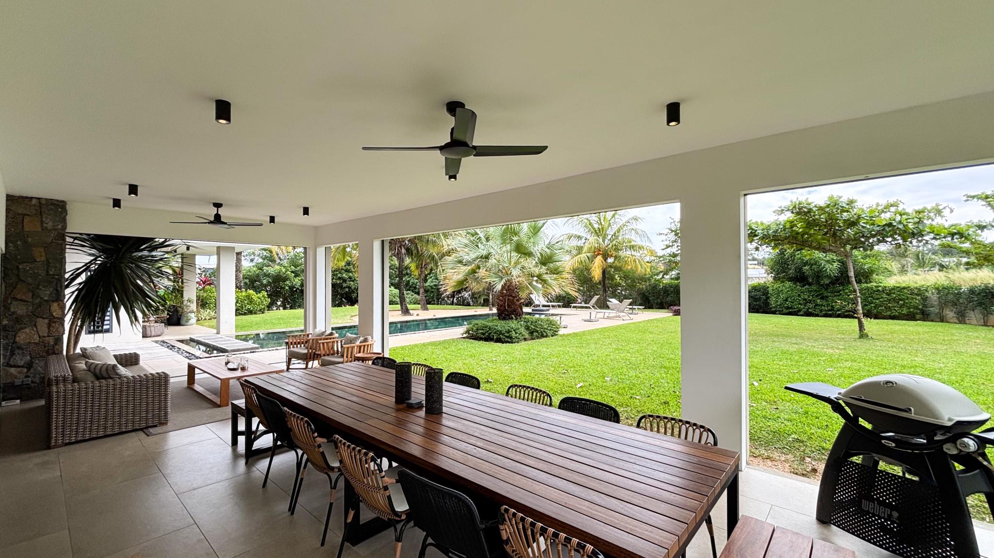Welcome to a designer property on the East Coast of Mauritius, a rare gem that effortlessly combines luxury with comfort. This exquisite, 5-bedroom villa is a testament to tasteful design and meticulous attention to detail.As you step into this residence, you’ll find yourself in a haven of sophistication and style. The villa comes fully furnished with an impeccable selection of furniture and decor, creating an atmosphere of refined elegance.Inside, the house is well-appointed with a modern aesthetic that reflects the highest standards of design – you will find large open-plan areas, all well-equipped for your comfort. The kitchen is also well-equipped with top-of-the-line appliances and ample space.Not least, the outdoor space is a true oasis, featuring a very spacious terrace and a generous 17m swimming pool that invites you to relax and unwind amid lush surroundings.Anahita Golf Resort provides access to multiple leisure activities right by a stunning lagoon. Residents can enjoy an internationally acclaimed golf course designed by Ernie Els, a pristine beach on ÃŽle aux Cerfs, and much more.This property is more than a home; it’s a one-in-a-lifetime opportunity to experience the epitome of luxurious living.Don’t miss the chance to make this rare gem your own.Contact us for a visit.