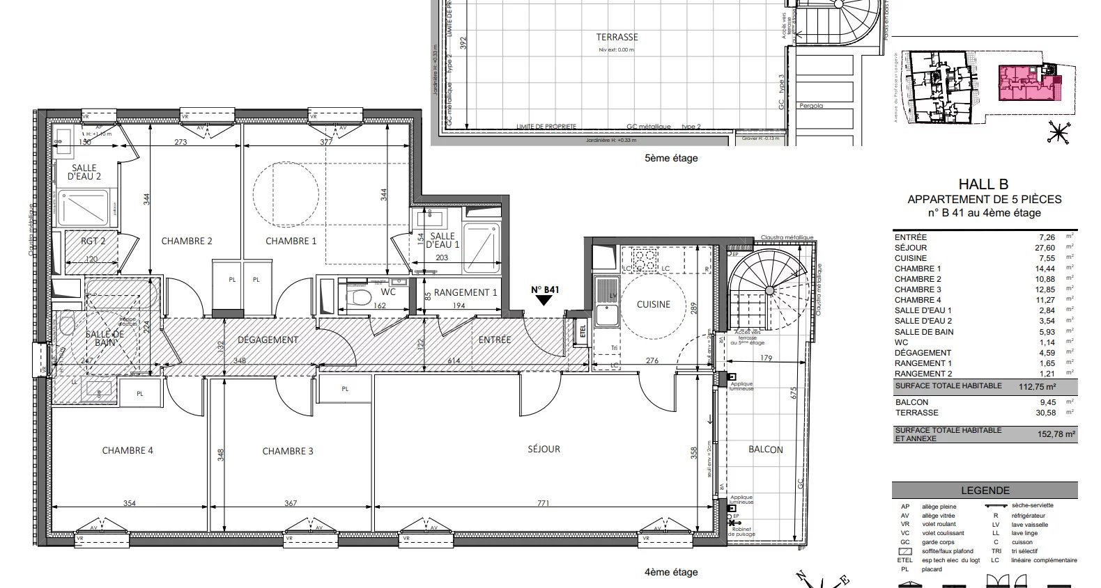 This 4 bedroom apartment comprises an entrance hall, a spacious living room, a kitchen, 4 bedrooms, 2 shower rooms, a bathroom, a guest toilet, a hallway, two storerooms and two beautiful terraces.