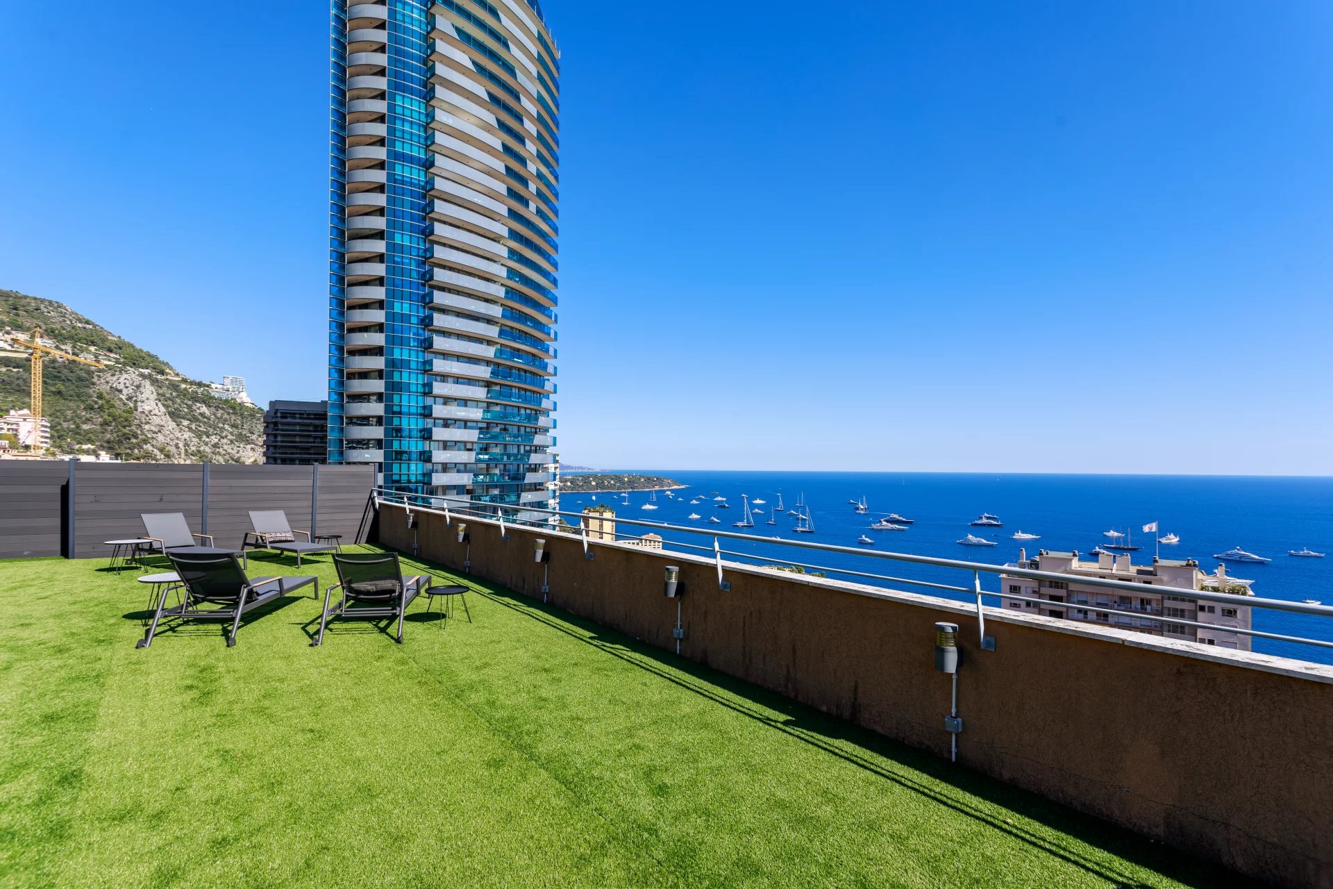 In a secured residence, a beautiful five-room penthouse, fully renovated and furnished. This 116 m2 property offers an unobstructed panoramic sea view over the Principality of Monaco, as well as a remarkable 254 m2 rooftop terrace.