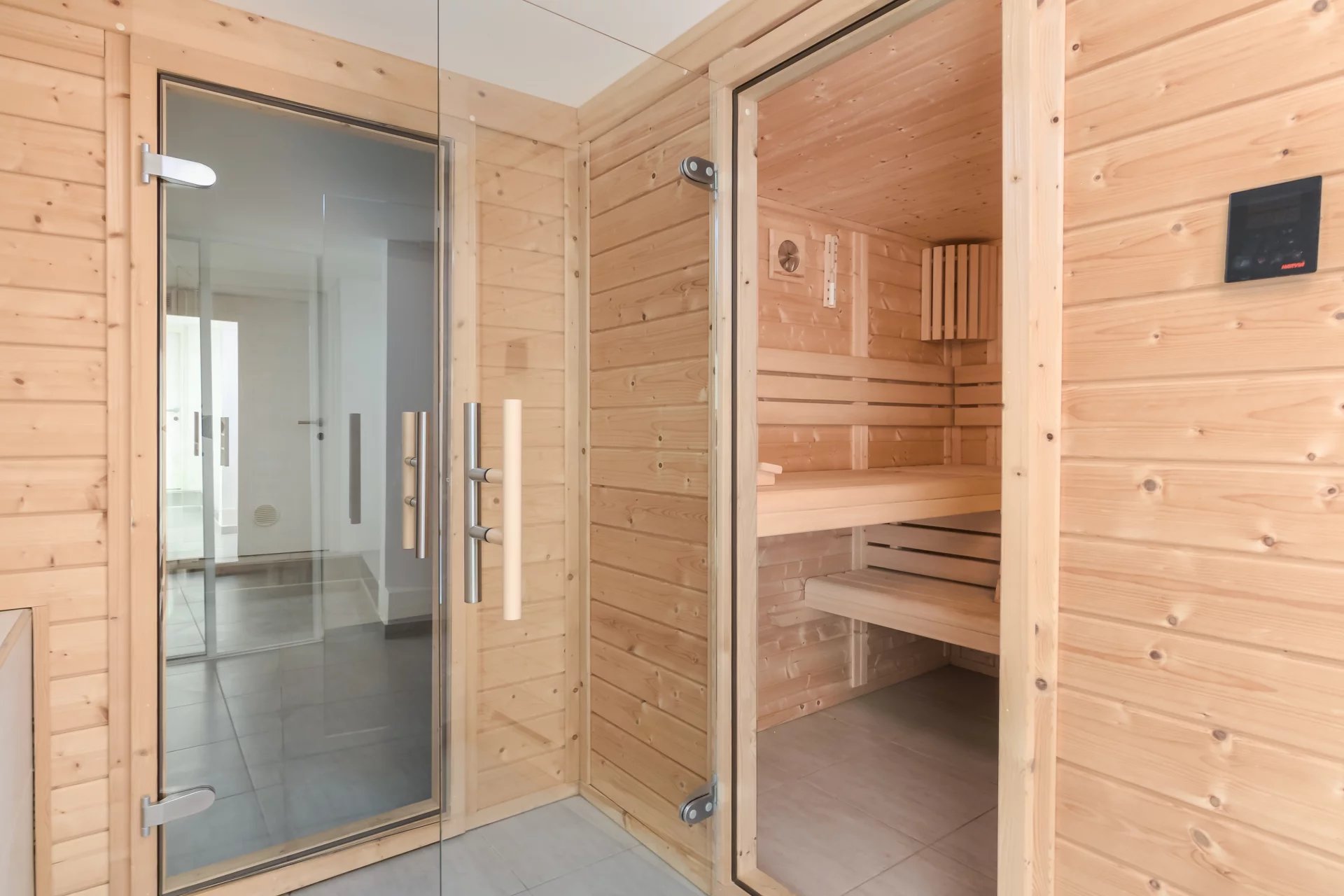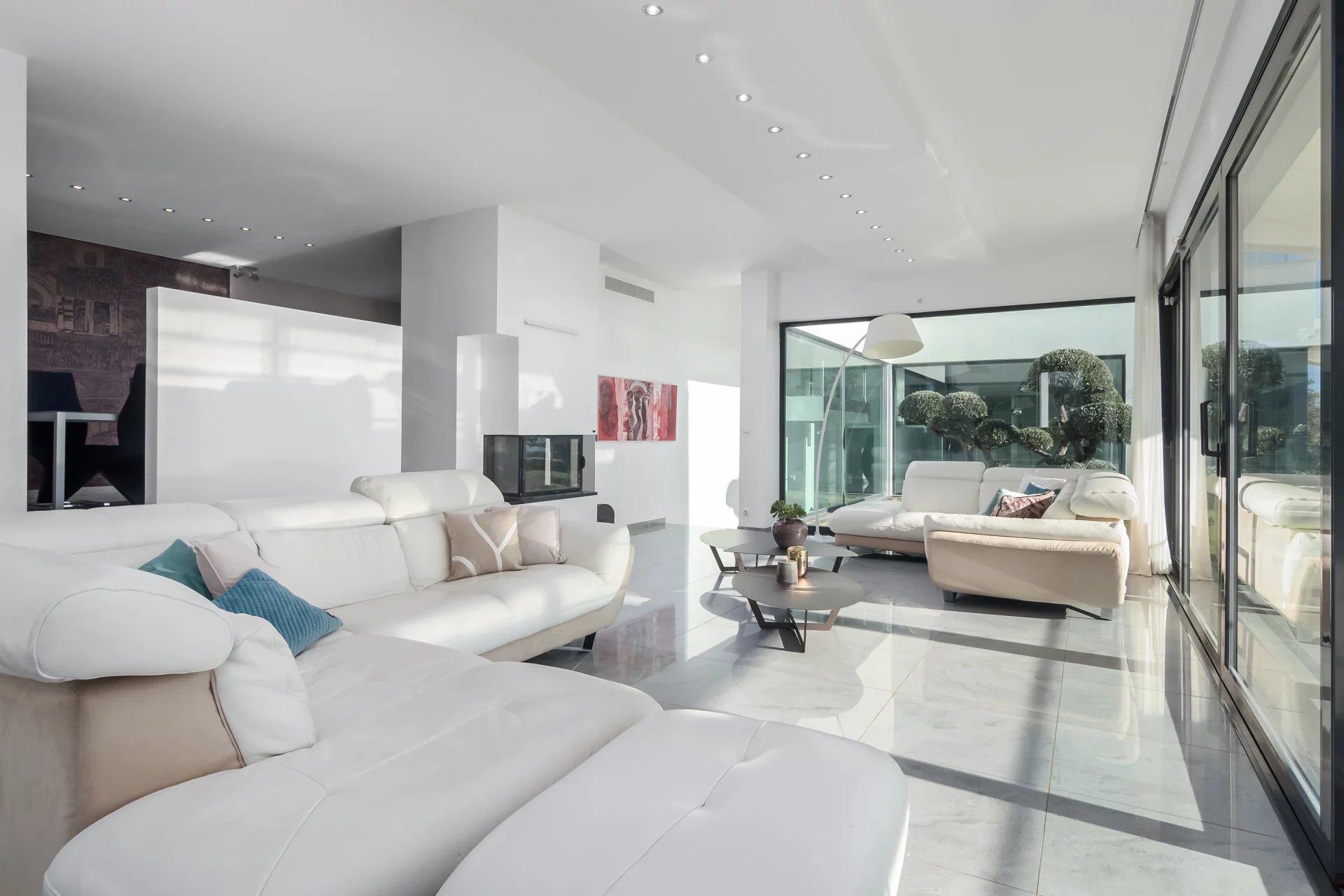 The features don’t stop there: a sauna, a double garage, a laundry room, and interior parking spaces for up to 10 cars enhance the villa’s practical and luxurious character.