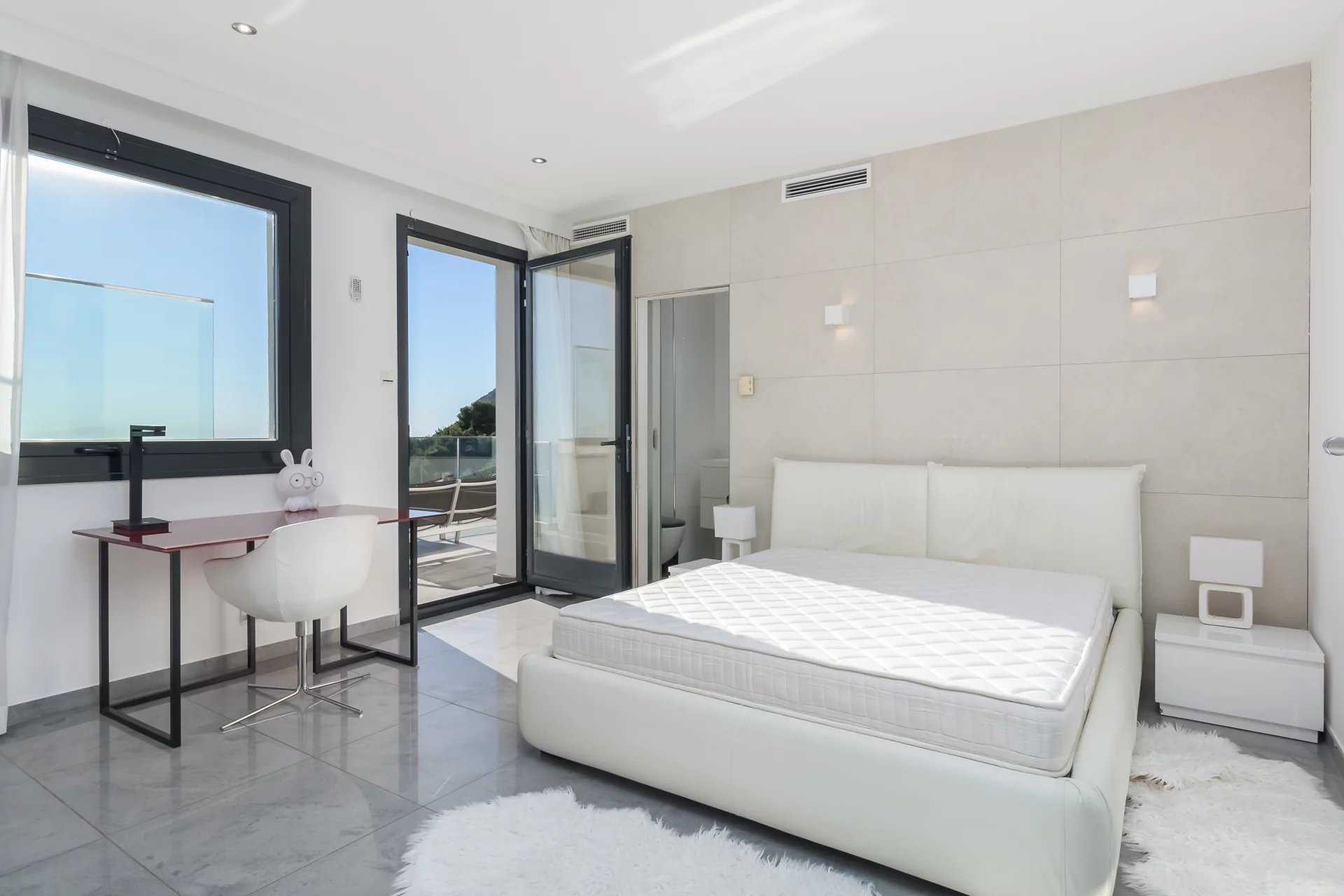 On the 1st floor, three luxurious suites, each with a shower room and WC, provide absolute comfort. Among them, a magnificent 40 m2 master suite with a Jacuzzi stands out for its elegance. Each suite has direct access to spacious terraces, offering breathtaking panoramic views of the Mediterranean.
