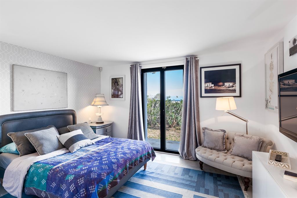 Main level: entrance hall, living room opening onto a sea-facing terrace, fully equipped open-plan kitchen, master suite with two dressing rooms, bathroom with WC, back kitchen, and guest WC.