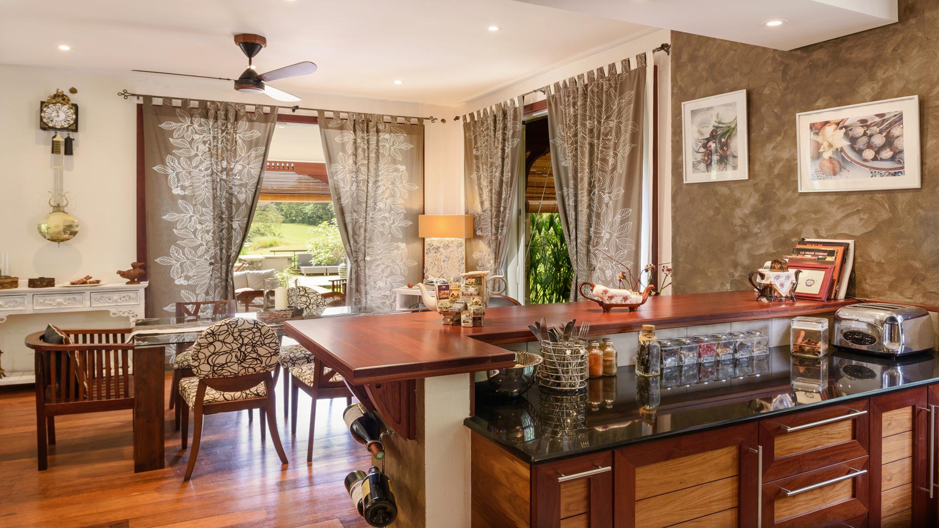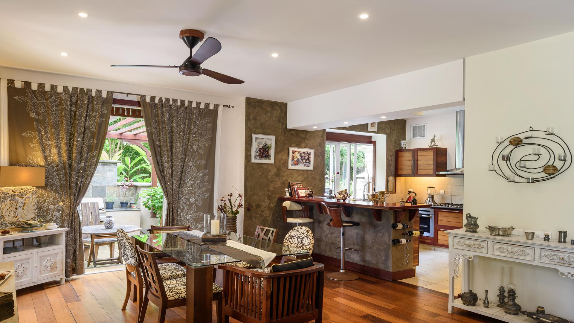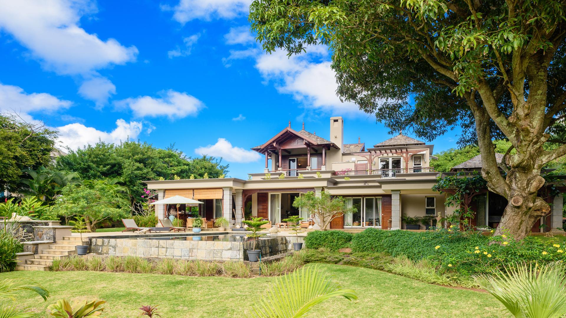 This beautiful double storey villa in the exclusive Domaine de Bel Ombre Golf & Beach Estate enjoys a palatial position overlooking the golf course. Gleaming hardwood floors and teak finishes and fittings add warmth to the stylish interiors and luxurious bathrooms invite pampered relaxation. The spacious living area has a rustic fireplace for chilly evenings and opens out to the terrace and plunge pool to enjoy warm summer days. The generous size of the stand and its position in a quiet cul-de-sac ensure maximum privacy. A single garage provides parking and there is a 4 seater golf cart for easy access to the estate’s facilities. Foreign Ownership, Permanent Mauritian Residency & Favourable Fiscal Climate.