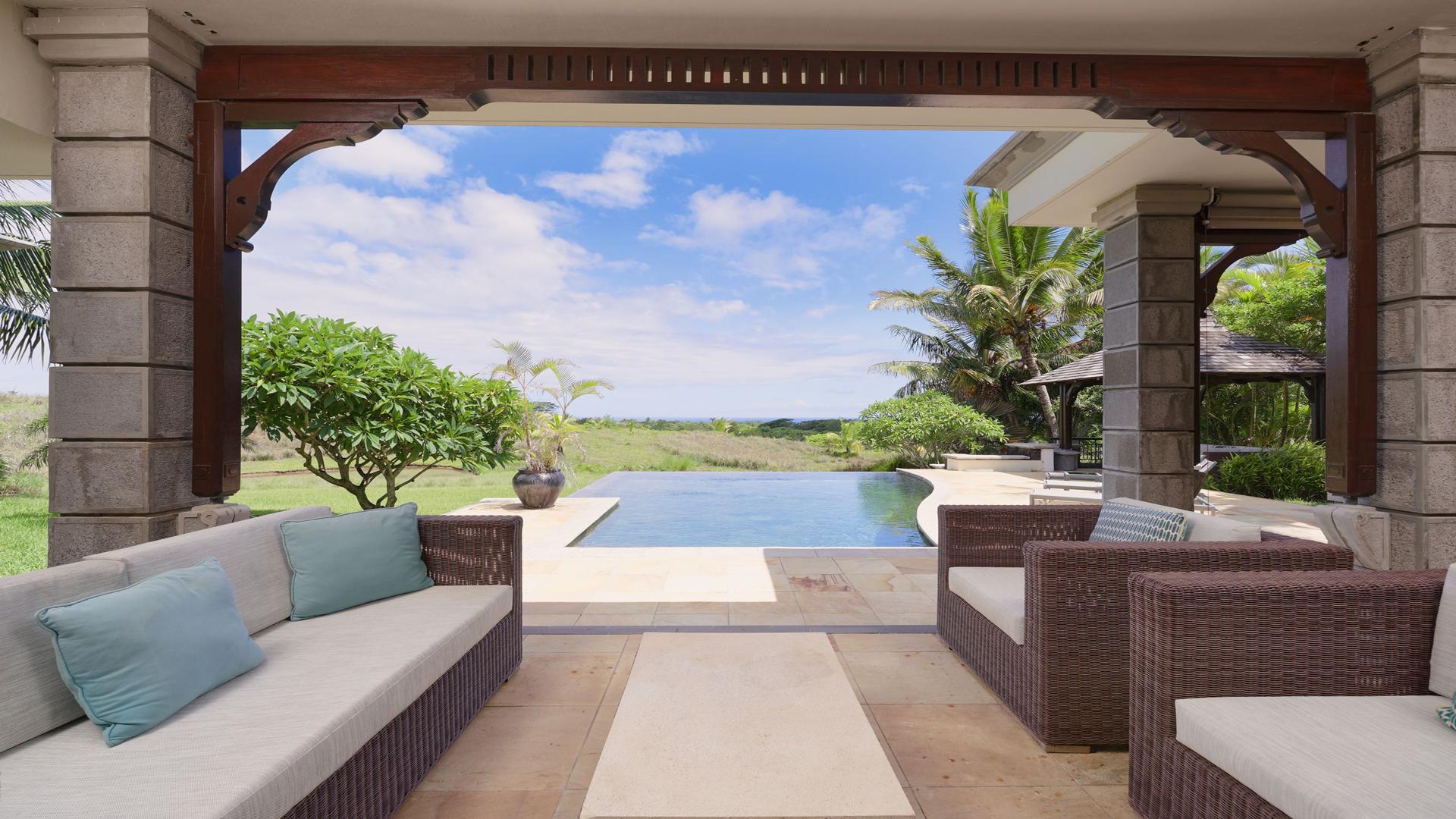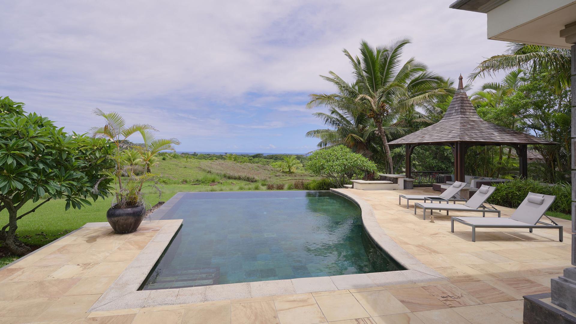 Stop all the clocks and discover this sumptuous 4-bedroom villa situated in an exclusive estate in the authentic South of Mauritius. Here, you will benefit from a large, landscaped tropical garden and stunning views of the golf course and ocean beyond.Fully furnished, and ready to move into, this stunning home has tastefully opulent finishes throughout with top-of-the-range fittings and appliances. The open-plan living area includes a designer kitchen with teak finishes and sliding doors that allow flow to the generous covered terrace which is ideal for family gatherings and lazy summer days.Moreover, a 40m² plunge pool, gazebo, and bbq area are available for al fresco dining and relaxed outdoor living.The accommodation includes three spacious bedrooms and the fourth, luxurious master suite upstairs includes a bath with a view.There is a four-seater golf cart for your convenience and those who enjoy outdoor activities can make use of the golf course and scenic running/cycling paths.Contact us for a visit,Note: Foreign Ownership, Permanent Mauritian Residency & Favourable Fiscal Climate