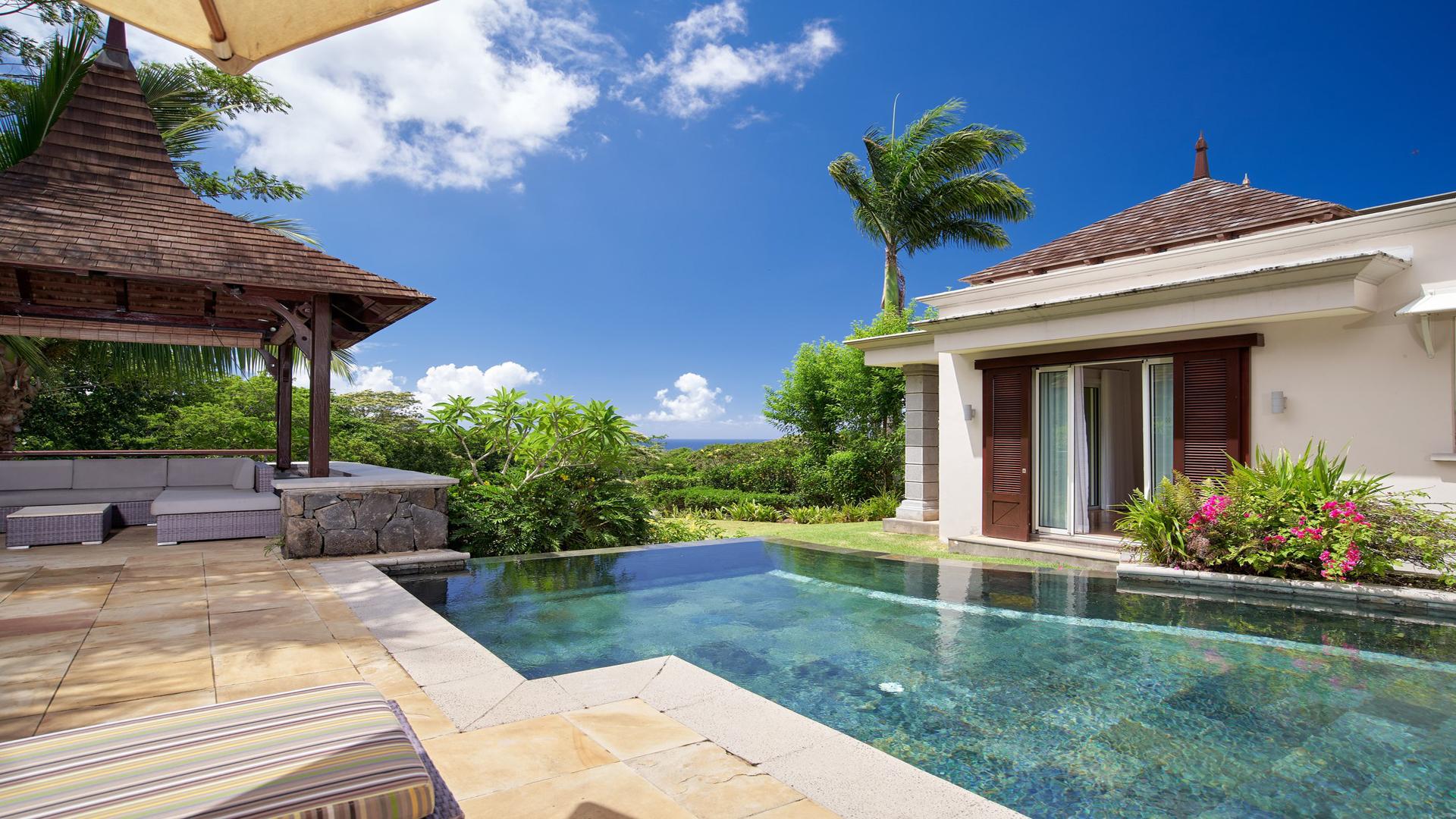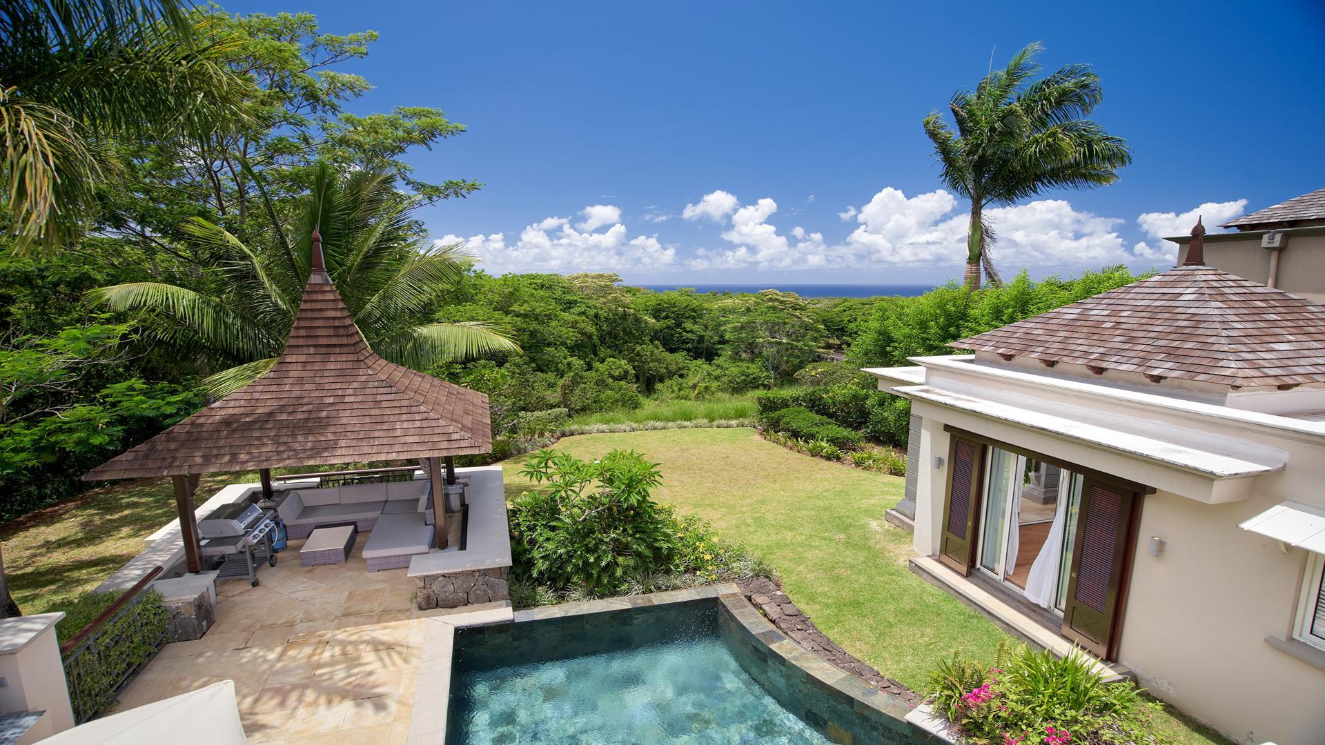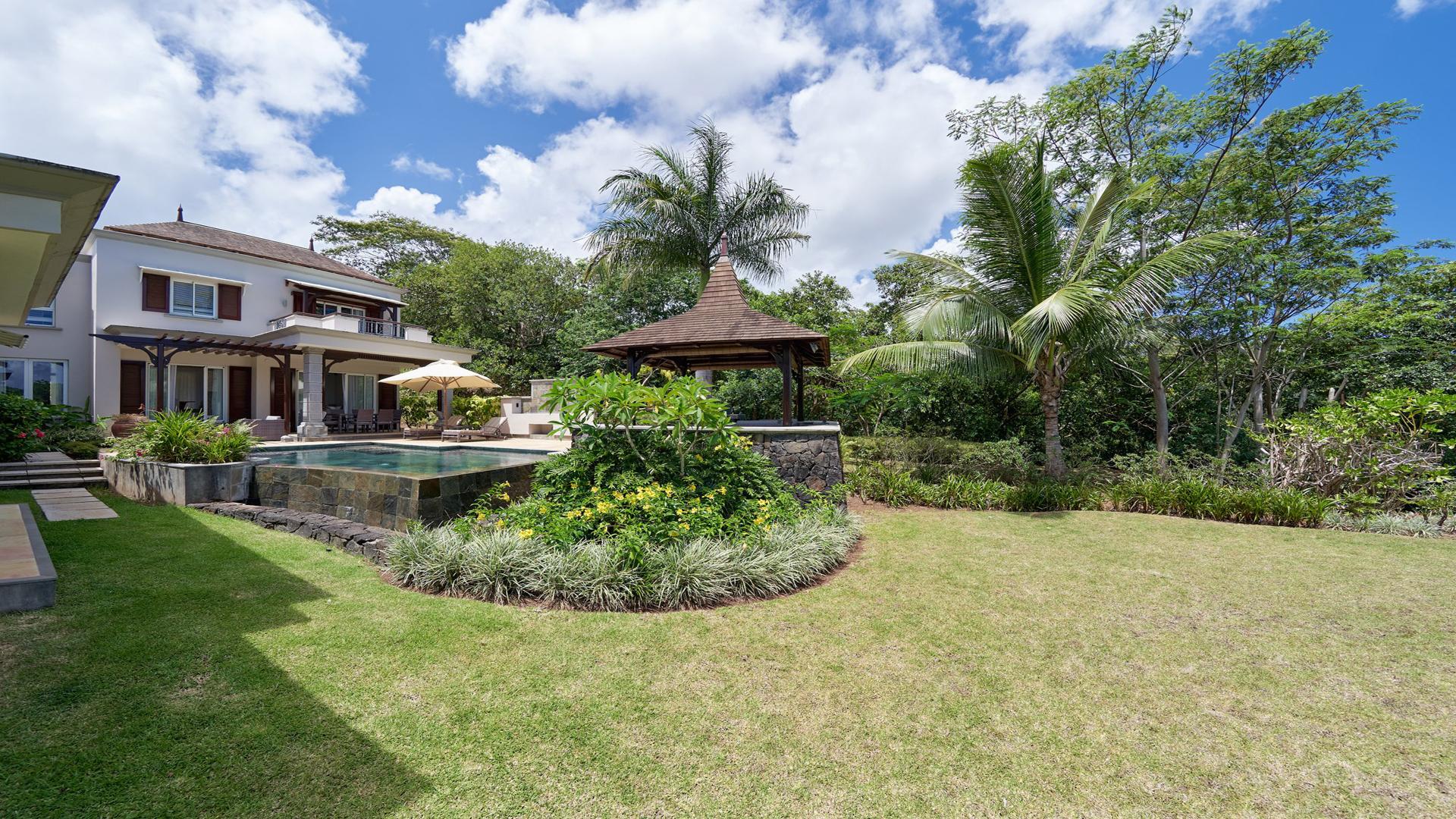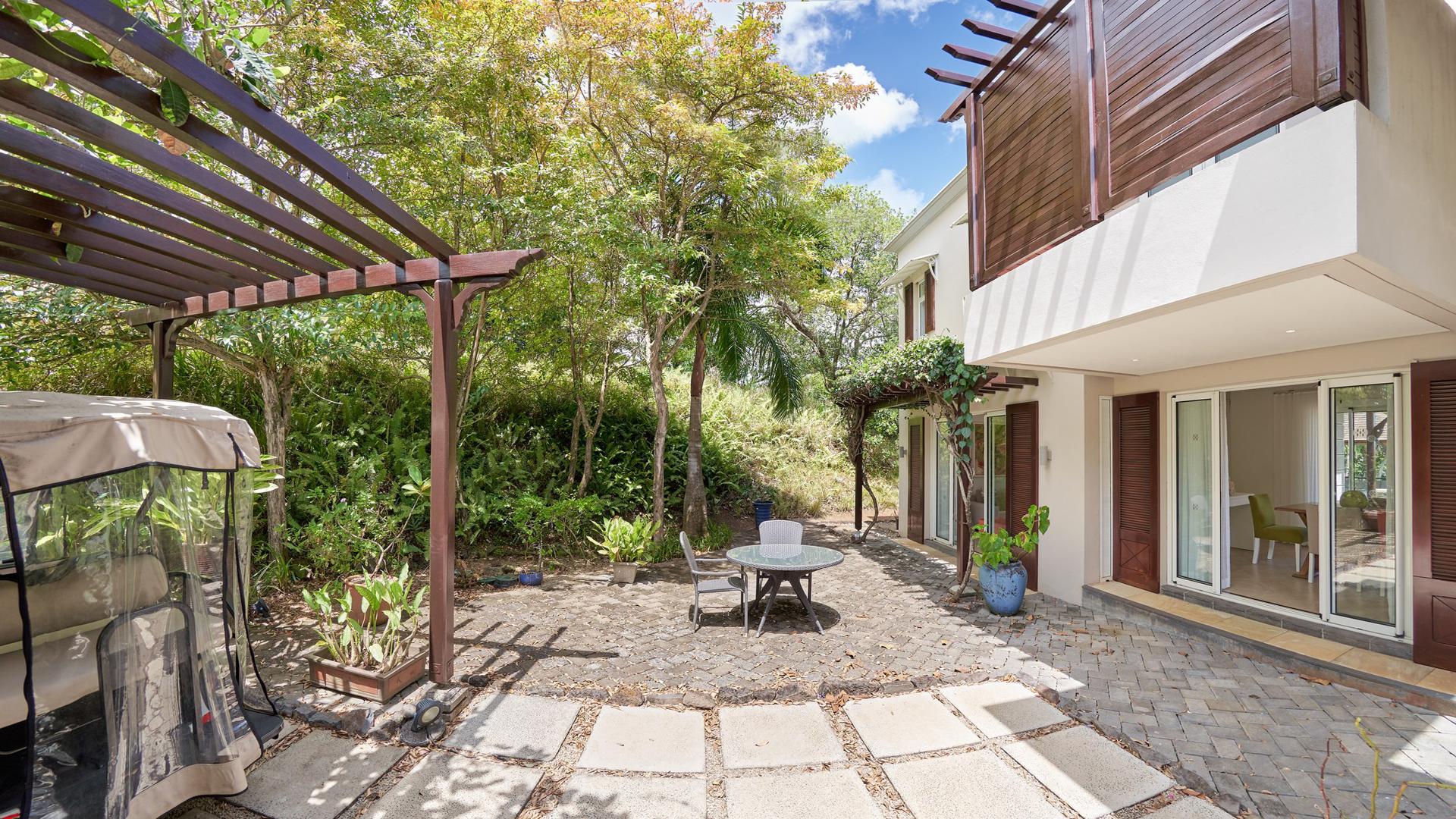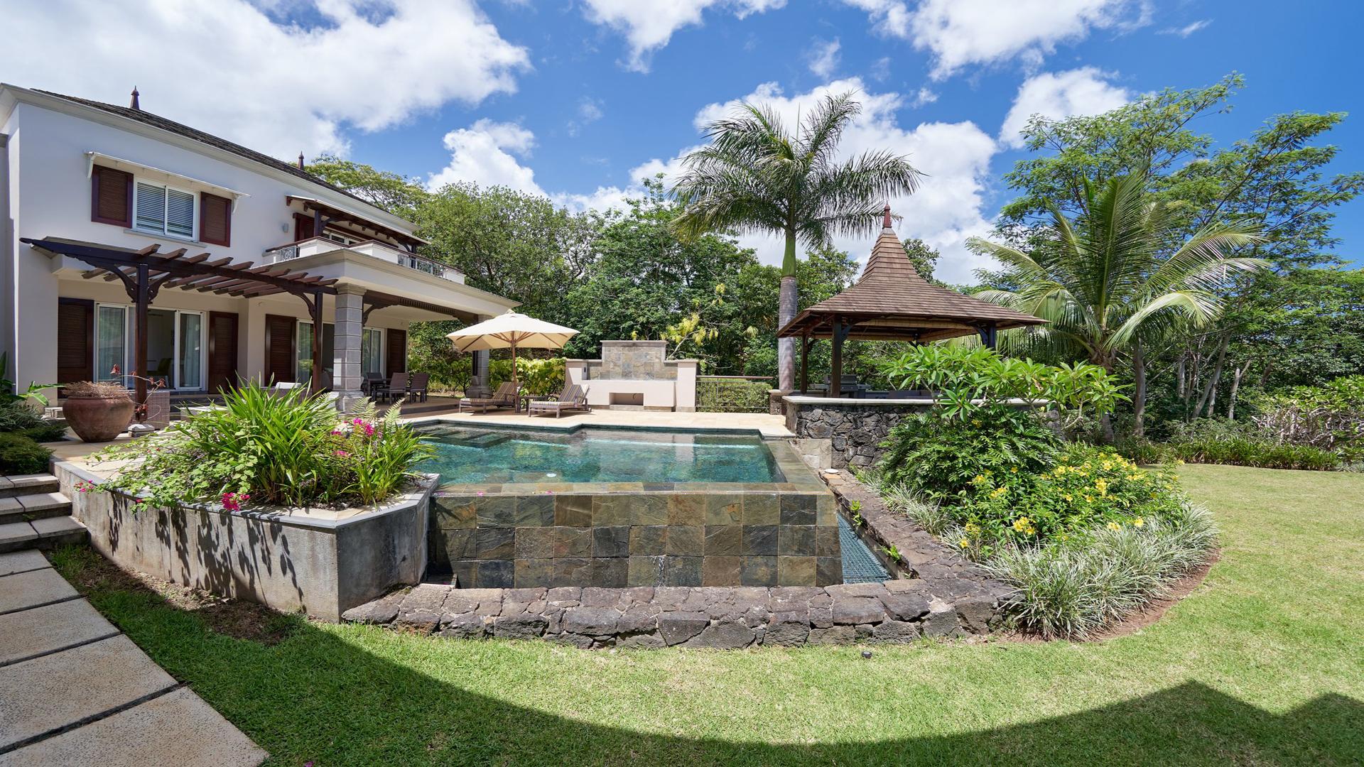 Live the lifestyle in this expansive 3-bedroom villa, and experience the quintessential ‘island paradise’ of the scenic South-West Coast of Mauritius. This luxurious 293 m² villa in the exclusive Domaine de Bel Ombre Golf & Beach Estate definitely offers an unsurpassed lifestyle. Allow us to walk you in. Inside, a grandiose open-plan living area, a fully-equipped, modern kitchen with beautiful teak finishes extends to an expansive outdoor terrace with a pool and gazebo, offering panoramic landscape and sea views. Moving to the first floor, you will have large bedrooms with balconies and well-appointed bathrooms. Practical, a separate guest suite is also on offer. For leisure, there is a 4-seater golf cart at your disposal for your round of golf on the 18-hole championship golf course, and those who enjoy outdoor activities can make use of the tennis courts, riding stables, and scenic running/cycling paths, as well as the array of hotel facilities and restaurants on your doorstep. The property is available furnished and immediately. Contact us for a visit.