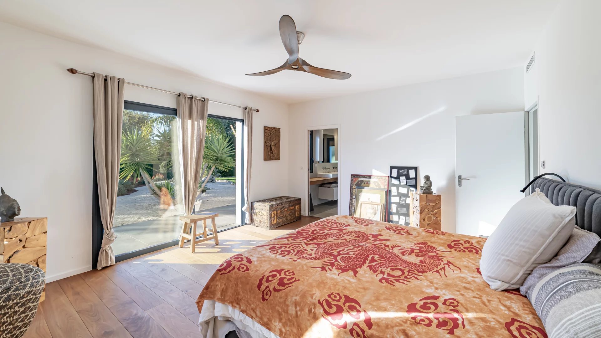 Beautiful contemporary single-storey villa, in a private gated domaine, set in a privileged location overlooking the protected Domaine des Aspres. Recently built, the property has been finished to a high standard both inside and out, creating a serene and relaxing atmosphere in complete tranquillity. Thoughtfully designed, the villa enjoys open views throughout.